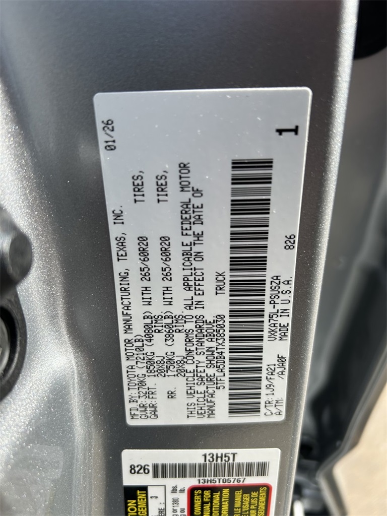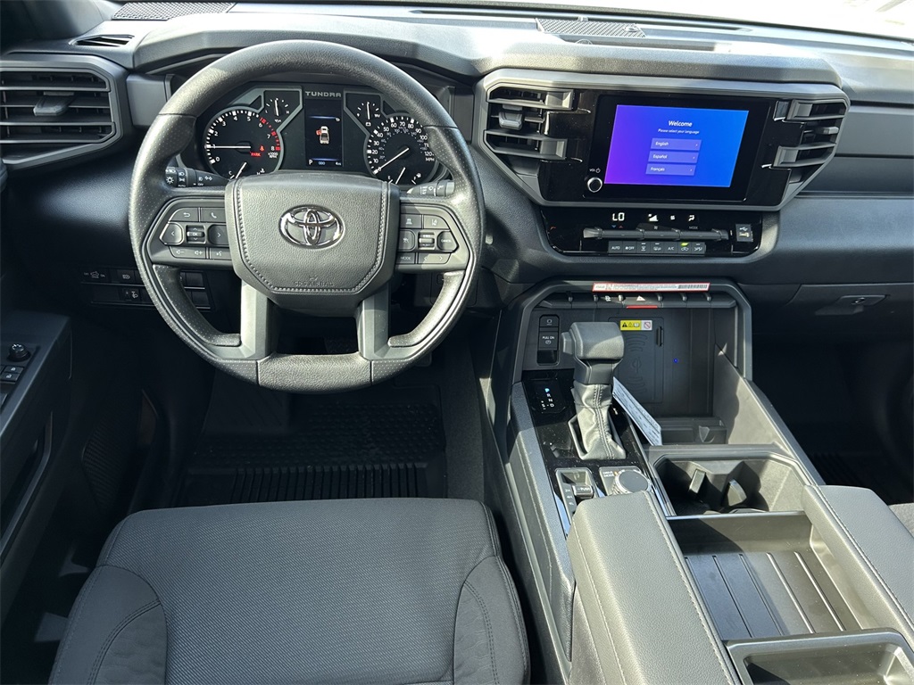 2026 Toyota Tundra SR5 4WD, Black w/Fabric Seat Trim, 18" Alloy Wheels, 20" Wheels, 3.31 Axle Ratio, 4-Way Manual Front Seats, 4-Wheel Disc Brakes, 9 Speakers, ABS brakes, Air Conditioning, Alloy wheels, AM/FM radio: SiriusXM, Apple CarPlay/Android Auto, Auto High-beam Headlights, Automatic temperature control, Bed Step, Brake assist, Bumpers: body-color, Delay-off headlights, Driver door bin, Driver vanity mirror, Dual front impact airbags, Dual front side impact airbags, Dual-Step Running Board - Black, Electronic Stability Control, Emergency communication system: Safety Connect (up to 10-year trial subscription), Exterior Parking Camera Rear, Fabric Seat Trim, Fabric Seat Trim (FB), Front anti-roll bar, Front Bucket Seats, Front Center Armrest, Front fog lights, Front reading lights, Front wheel independent suspension, Fully automatic headlights, Heated door mirrors, Illuminated entry, Knee airbag, Leather Seat Trim, Low tire pressure warning, Occupant sensing airbag, Outside temperature display, Overhead airbag, Overhead console, Panic alarm, Passenger door bin, Passenger vanity mirror, Power door mirrors, Power driver seat, Power steering, Power windows, Radio data system, Radio: Audio Multimedia System, Radio: Audio Plus, Rear reading lights, Rear step bumper, Rear window defroster, Remote keyless entry, Safety Connect, Security system, Speed control, Speed-sensing steering, Split folding rear seat, Steering wheel mounted audio controls, SX Package, Tachometer, Telescoping steering wheel, Tilt steering wheel, Traction control, Trip computer, Variably intermittent wipers, Voltmeter, Wheels: 20" TRD Sport Alloy.