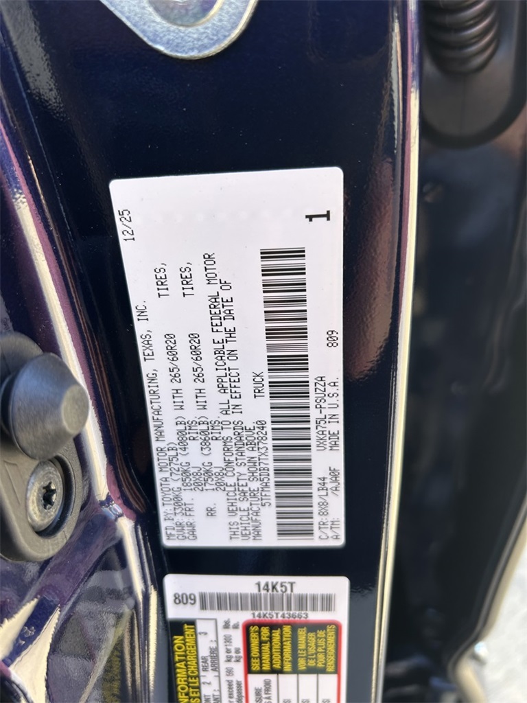 2026 Toyota Tundra 1794 4WD, Saddle Tan w/Premium Leather Seat Trim, 10-Way Power Adjustable Heated and Ventilated Front Seats, 12 Speakers, 1794 Grade Package, 3.31 Axle Ratio, 4-Wheel Disc Brakes, ABS brakes, Air Conditioning, Alloy wheels, AM/FM radio: SiriusXM, Apple CarPlay/Android Auto, Auto High-beam Headlights, Auto-dimming door mirrors, Auto-dimming Rear-View mirror, Automatic temperature control, Blind Spot Monitor, Brake assist, Bumpers: body-color, Chrome Exhaust Tail Pipe & Diffuser, Chrome Plated Power Folding Outside Mirrors, Compass, Delay-off headlights, Driver door bin, Driver vanity mirror, Dual front impact airbags, Dual front side impact airbags, Electronic Stability Control, Emergency communication system: Safety Connect (up to 10-year trial subscription), Exterior Parking Camera Rear, Front anti-roll bar, Front Bucket Seats, Front Center Armrest, Front dual zone A/C, Front fog lights, Front reading lights, Front wheel independent suspension, Fully automatic headlights, Garage door transmitter: HomeLink, Head Up Display (HUD), Heated door mirrors, Heated front seats, Heated rear seats, Heated steering wheel, Illuminated entry, Knee airbag, Leather Shift Knob, Leather steering wheel, Low tire pressure warning, Memory seat, Multi-Terrain Back Monitor, Navigation system: Drive Connect Cloud Navigation (1-year trial subscription), Occupant sensing airbag, Outside temperature display, Overhead airbag, Overhead console, Panic alarm, Panoramic View Back Monitor, Passenger door bin, Passenger vanity mirror, Power door mirrors, Power driver seat, Power moonroof, Power passenger seat, Power Running Boards, Power steering, Power windows, Premium Leather Seat Trim, Radio data system, Radio: Premium Audio, Rain sensing wipers, Rear reading lights, Rear seat center armrest, Rear step bumper, Rear window defroster, Remote keyless entry, Safety Connect, Security system, Speed control, Speed-sensing steering, Speed-Sensitive Wipers, Split folding rear seat, Steering wheel memory, Steering wheel mounted audio controls, Tachometer, Telescoping steering wheel, Tilt steering wheel, Traction control, Trip computer, Turn signal indicator mirrors, Variably intermittent wipers, Ventilated front seats, Ventilated rear seats, Voltmeter, Wheel Locks, Wheels: 20" Machined Finish Alloy.