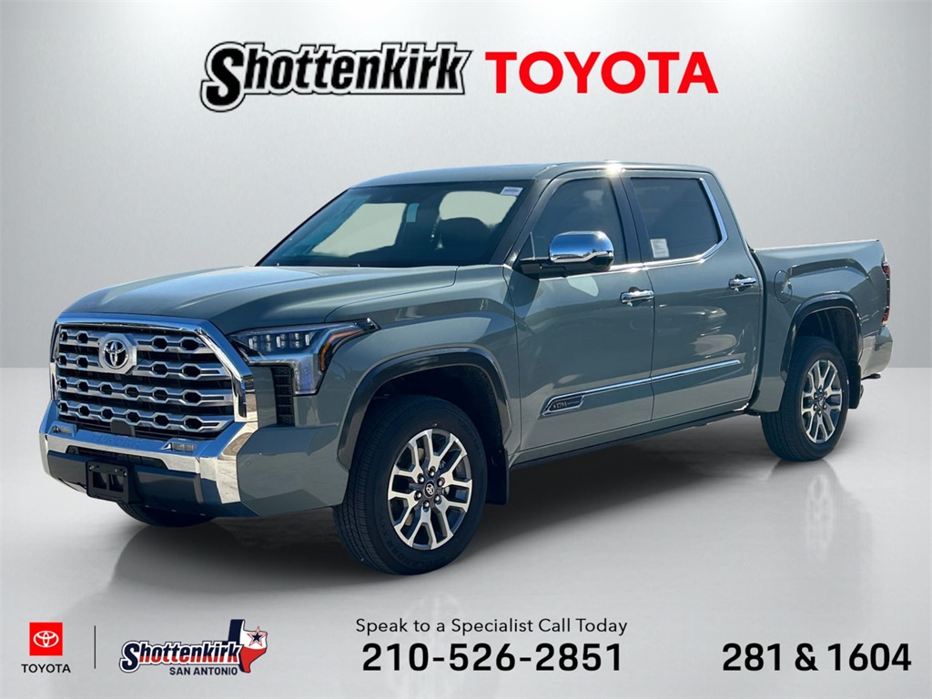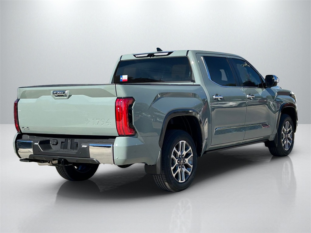 2026 Toyota Tundra 1794 4WD, Saddle Tan w/Premium Leather Seat Trim, 10-Way Power Adjustable Heated and Ventilated Front Seats, 12 Speakers, 1794 Grade Package, 3.31 Axle Ratio, 4-Wheel Disc Brakes, ABS brakes, Air Conditioning, Alloy wheels, AM/FM radio: SiriusXM, Apple CarPlay/Android Auto, Auto High-beam Headlights, Auto-dimming door mirrors, Auto-dimming Rear-View mirror, Automatic temperature control, Blind Spot Monitor, Brake assist, Bumpers: body-color, Chrome Exhaust Tail Pipe & Diffuser, Chrome Plated Power Folding Outside Mirrors, Compass, Delay-off headlights, Driver door bin, Driver vanity mirror, Dual front impact airbags, Dual front side impact airbags, Electronic Stability Control, Emergency communication system: Safety Connect (up to 10-year trial subscription), Emergency Kit, Exterior Parking Camera Rear, Front anti-roll bar, Front Bucket Seats, Front Center Armrest, Front dual zone A/C, Front fog lights, Front reading lights, Front wheel independent suspension, Fully automatic headlights, Garage door transmitter: HomeLink, Head Up Display (HUD), Heated door mirrors, Heated front seats, Heated rear seats, Heated steering wheel, Illuminated entry, Knee airbag, Leather Shift Knob, Leather steering wheel, Low tire pressure warning, Memory seat, Multi-Terrain Back Monitor, Navigation system: Drive Connect Cloud Navigation (1-year trial subscription), Occupant sensing airbag, Outside temperature display, Overhead airbag, Overhead console, Panic alarm, Panoramic View Back Monitor, Passenger door bin, Passenger vanity mirror, Power door mirrors, Power driver seat, Power moonroof, Power passenger seat, Power Running Boards, Power steering, Power windows, Premium Leather Seat Trim, Radio data system, Radio: Premium Audio, Rain sensing wipers, Rear reading lights, Rear seat center armrest, Rear step bumper, Rear window defroster, Remote keyless entry, Safety Connect, Security system, Speed control, Speed-sensing steering, Speed-Sensitive Wipers, Split folding rear seat, Steering wheel memory, Steering wheel mounted audio controls, Tachometer, Telescoping steering wheel, Tilt steering wheel, Traction control, Trip computer, Turn signal indicator mirrors, Variably intermittent wipers, Ventilated front seats, Ventilated rear seats, Voltmeter, Wheel Locks, Wheels: 20" Machined Finish Alloy.