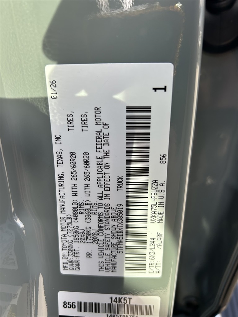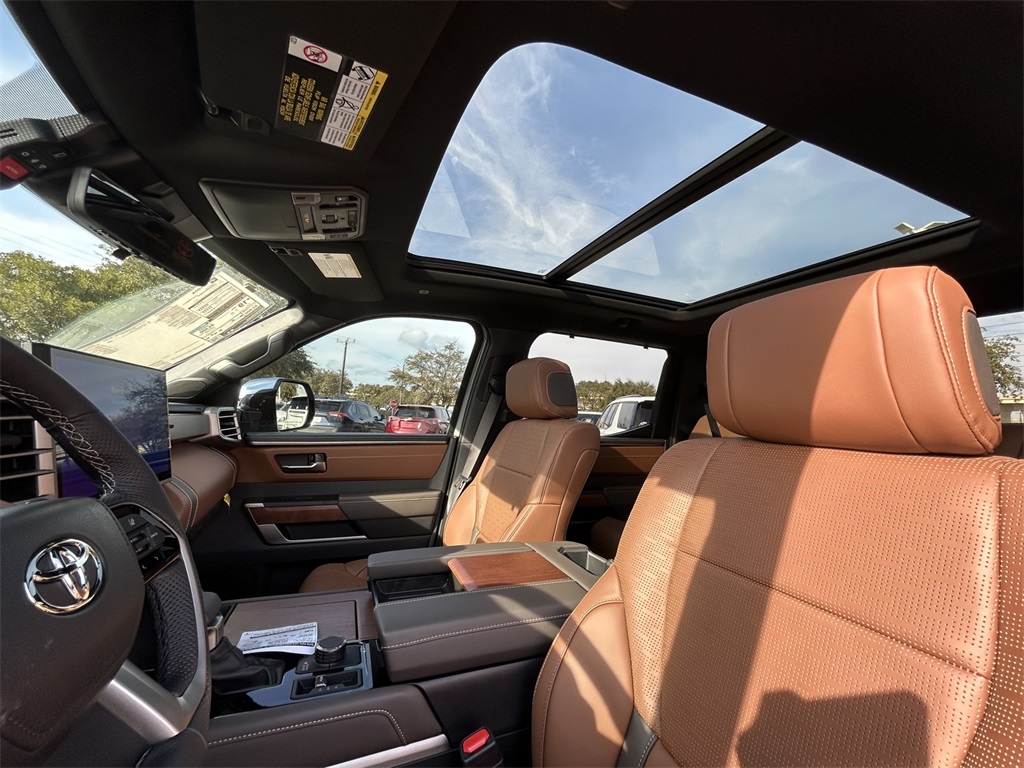 2026 Toyota Tundra 1794 4WD, Saddle Tan w/Premium Leather Seat Trim, 10-Way Power Adjustable Heated and Ventilated Front Seats, 12 Speakers, 1794 Grade Package, 3.31 Axle Ratio, 4-Wheel Disc Brakes, ABS brakes, Air Conditioning, Alloy wheels, AM/FM radio: SiriusXM, Apple CarPlay/Android Auto, Auto High-beam Headlights, Auto-dimming door mirrors, Auto-dimming Rear-View mirror, Automatic temperature control, Blind Spot Monitor, Brake assist, Bumpers: body-color, Chrome Exhaust Tail Pipe & Diffuser, Chrome Plated Power Folding Outside Mirrors, Compass, Delay-off headlights, Driver door bin, Driver vanity mirror, Dual front impact airbags, Dual front side impact airbags, Electronic Stability Control, Emergency communication system: Safety Connect (up to 10-year trial subscription), Exterior Parking Camera Rear, Front anti-roll bar, Front Bucket Seats, Front Center Armrest, Front dual zone A/C, Front fog lights, Front reading lights, Front wheel independent suspension, Fully automatic headlights, Garage door transmitter: HomeLink, Head Up Display (HUD), Heated door mirrors, Heated front seats, Heated rear seats, Heated steering wheel, Illuminated entry, Knee airbag, Leather Shift Knob, Leather steering wheel, Low tire pressure warning, Memory seat, Multi-Terrain Back Monitor, Navigation system: Drive Connect Cloud Navigation (1-year trial subscription), Occupant sensing airbag, Outside temperature display, Overhead airbag, Overhead console, Panic alarm, Panoramic View Back Monitor, Passenger door bin, Passenger vanity mirror, Power door mirrors, Power driver seat, Power moonroof, Power passenger seat, Power Running Boards, Power steering, Power windows, Premium Leather Seat Trim, Radio data system, Radio: Premium Audio, Rain sensing wipers, Rear reading lights, Rear seat center armrest, Rear step bumper, Rear window defroster, Remote keyless entry, Safety Connect, Security system, Speed control, Speed-sensing steering, Speed-Sensitive Wipers, Split folding rear seat, Steering wheel memory, Steering wheel mounted audio controls, Tachometer, Telescoping steering wheel, Tilt steering wheel, Traction control, Trip computer, Turn signal indicator mirrors, Variably intermittent wipers, Ventilated front seats, Ventilated rear seats, Voltmeter, Wheel Locks, Wheels: 20" Machined Finish Alloy.