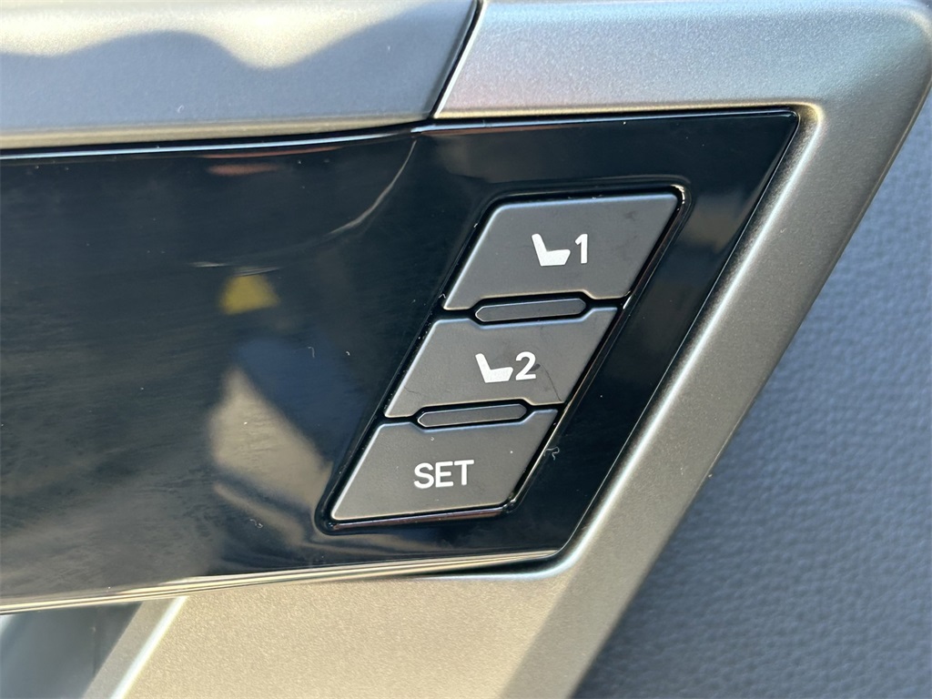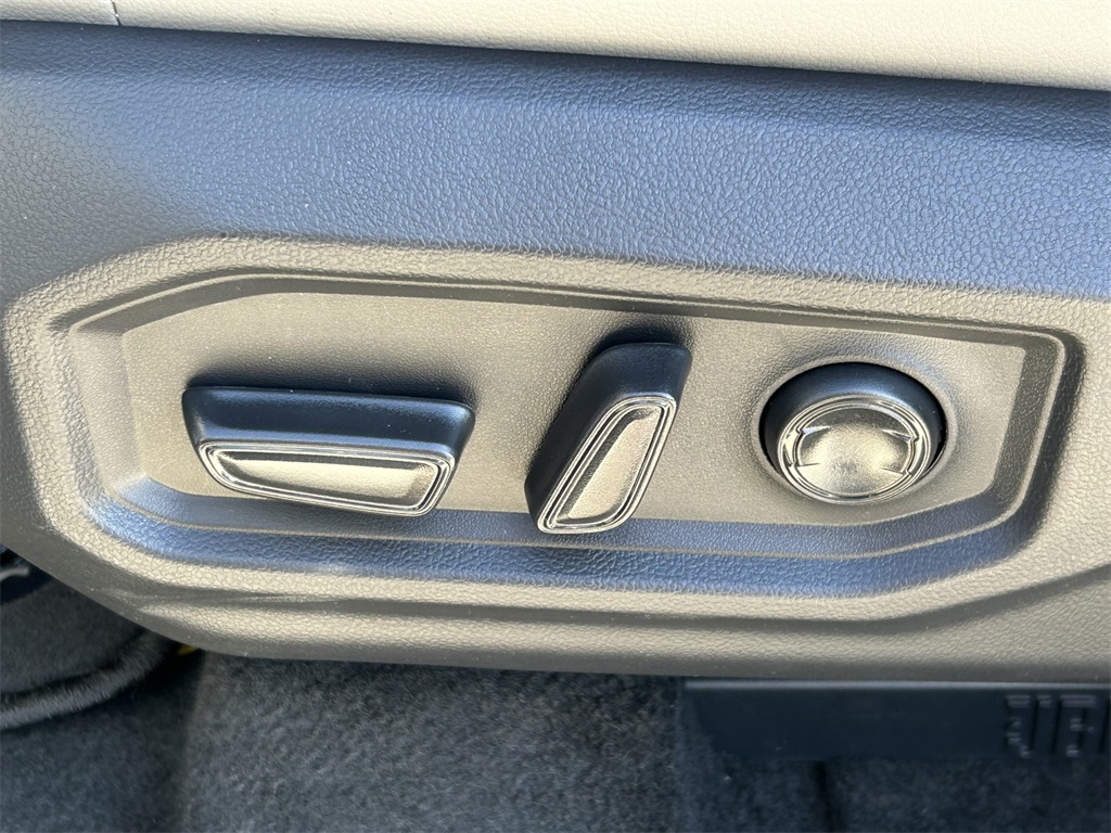 - Leather-trimmed seats with contrast stitching; 8-way power-adjustable driver and front passenger seats with power-adjustable lumbar support