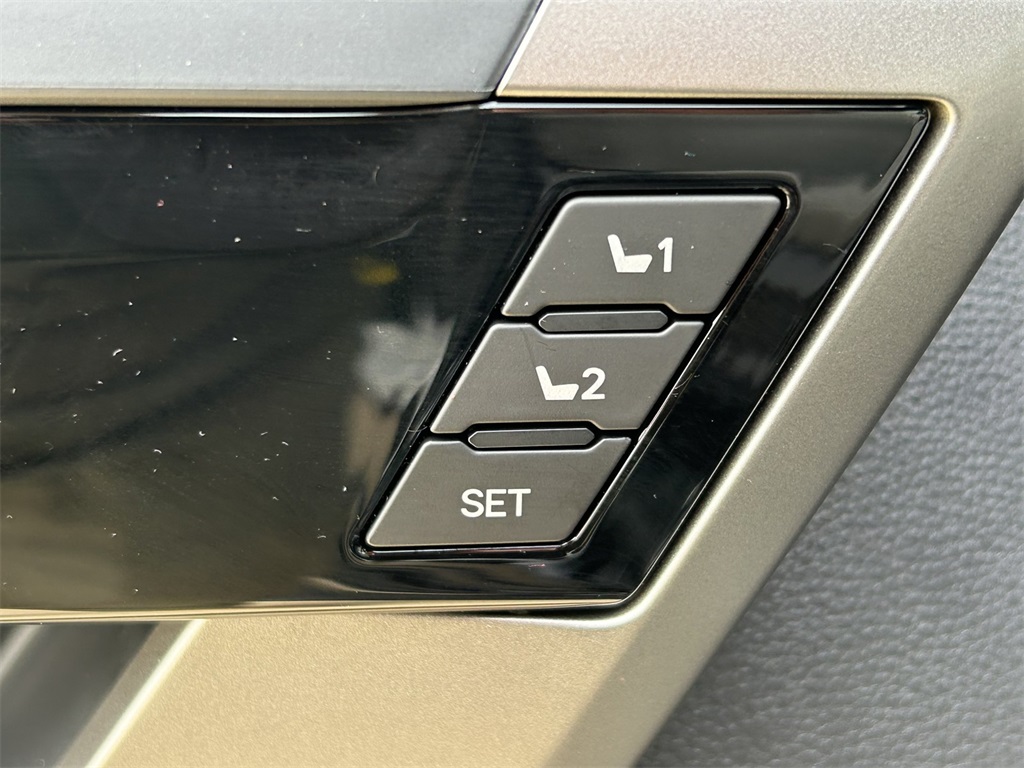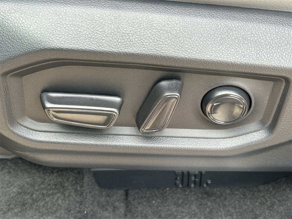 - Leather-trimmed seats with contrast stitching; 8-way power-adjustable driver and front passenger seats with power-adjustable lumbar support