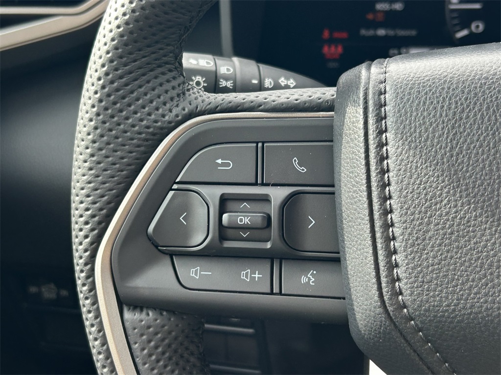- Leather-wrapped manual tilt/telescopic steering wheel with phone, audio, display/infotainment, and Driver Assist controls