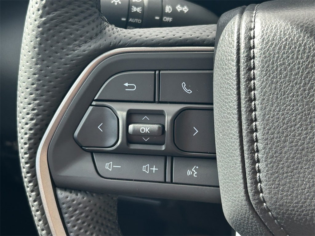 - Leather-wrapped manual tilt/telescopic steering wheel with phone, audio, display/infotainment, and Driver Assist controls
