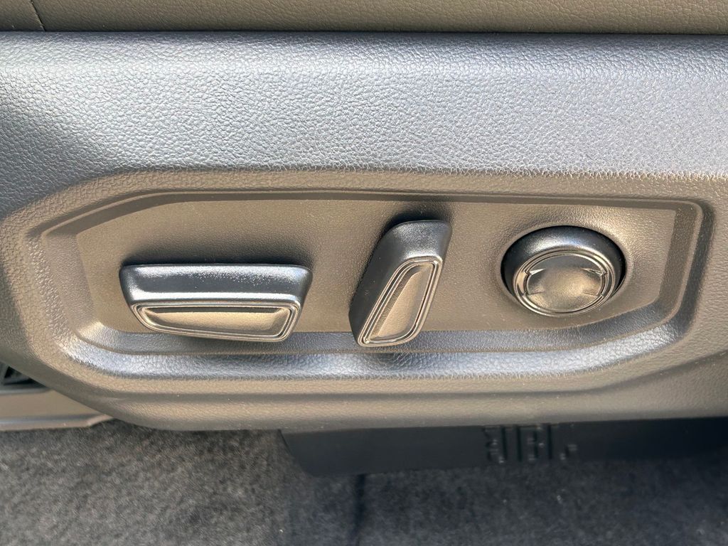 - Leather-trimmed seats with contrast stitching; 8-way power-adjustable driver and front passenger seats with power-adjustable lumbar support