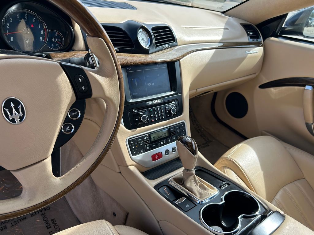 Clean CARFAX. 4.2L V8 SMPI DOHC, 11 Speakers, 4-Wheel Disc Brakes, ABS brakes, Adaptive suspension, Air Conditioning, Alloy wheels, AM/FM radio, Auto tilt-away steering wheel, Auto-dimming door mirrors, Auto-dimming Rear-View mirror, Auto-leveling suspension, Automatic temperature control, Bumpers: body-color, CD player, Compass, Driver door bin, Driver vanity mirror, Dual front impact airbags, Dual front side impact airbags, Electronic Stability Control, Four wheel independent suspension, Front 19" x 8.5"/Rear 19" x 10.5" 7-Spoke V-Style Alloy Wheels, Front anti-roll bar, Front Bucket Seats, Front Center Armrest, Front dual zone A/C, Front fog lights, Front reading lights, Fully automatic headlights, Garage door transmitter, Genuine wood dashboard insert, Genuine wood door panel insert, Headlight cleaning, Heated door mirrors, Heated front seats, Heated Sport Bucket Seats, High intensity discharge headlights: Bi-Xenon, Illuminated entry, Leather Shift Knob, Leather steering wheel, Low tire pressure warning, Maserati Multimedia System, Memory seat, Navigation System, Occupant sensing airbag, Outside temperature display, Overhead console, Passenger door bin, Passenger vanity mirror, Poltrona Frau Leather Seat Trim, Power door mirrors, Power driver seat, Power passenger seat, Power steering, Power windows, Radio data system, Rain sensing wipers, Rear anti-roll bar, Rear Parking Sensors, Rear reading lights, Rear seat center armrest, Rear window defroster, Remote keyless entry, Security system, Speed control, Speed-sensing steering, Sport steering wheel, Steering wheel memory, Steering wheel mounted audio controls, Tachometer, Telescoping steering wheel, Tilt steering wheel, Traction control, Trip computer, Variably intermittent wipers.