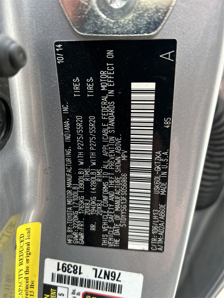 Clean CARFAX. 6-Speed Automatic Electronic, 14 Speakers, 20" x 8" Alloy Wheels, 3rd row seats: split-bench, 4-Wheel Disc Brakes, 4.30 Axle Ratio, A/V remote, ABS brakes, Adaptive suspension, Air Conditioning, Alloy wheels, AM/FM radio: SiriusXM, Auto tilt-away steering wheel, Auto-dimming door mirrors, Auto-dimming Rear-View mirror, Auto-leveling suspension, Automatic temperature control, Brake assist, Bumpers: body-color, CD player, Compass, Delay-off headlights, Driver door bin, Driver vanity mirror, Dual front impact airbags, Dual front side impact airbags, Electronic Stability Control, Exterior Parking Camera Rear, Four wheel independent suspension, Front anti-roll bar, Front Bucket Seats, Front Center Armrest, Front dual zone A/C, Front fog lights, Front Heated & Ventilated Bucket Seats, Front reading lights, Fully automatic headlights, Garage door transmitter: HomeLink, Headlight cleaning, Headphones, Heated door mirrors, Heated front seats, Heated rear seats, Illuminated entry, Knee airbag, Leather steering wheel, Low tire pressure warning, Memory seat, Navigation System, Occupant sensing airbag, Outside temperature display, Overhead airbag, Overhead console, Panic alarm, Passenger door bin, Passenger vanity mirror, Perforated Leather Seat Trim, Power door mirrors, Power driver seat, Power Liftgate, Power moonroof, Power passenger seat, Power steering, Power windows, Radio: Entune Premium JBL Audio with Navigation, Rear air conditioning, Rear anti-roll bar, Rear reading lights, Rear seat center armrest, Rear window defroster, Rear window wiper, Reclining 3rd row seat, Remote keyless entry, Roof rack, Security system, Speed control, Speed-sensing steering, Split folding rear seat, Spoiler, Steering wheel memory, Steering wheel mounted audio controls, Tachometer, Telescoping steering wheel, Tilt steering wheel, Traction control, Trip computer, Turn signal indicator mirrors, Variably intermittent wipers, Ventilated front seats, Voltmeter.
