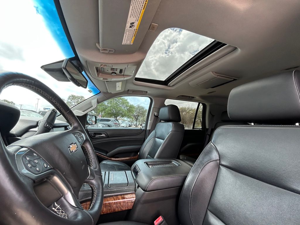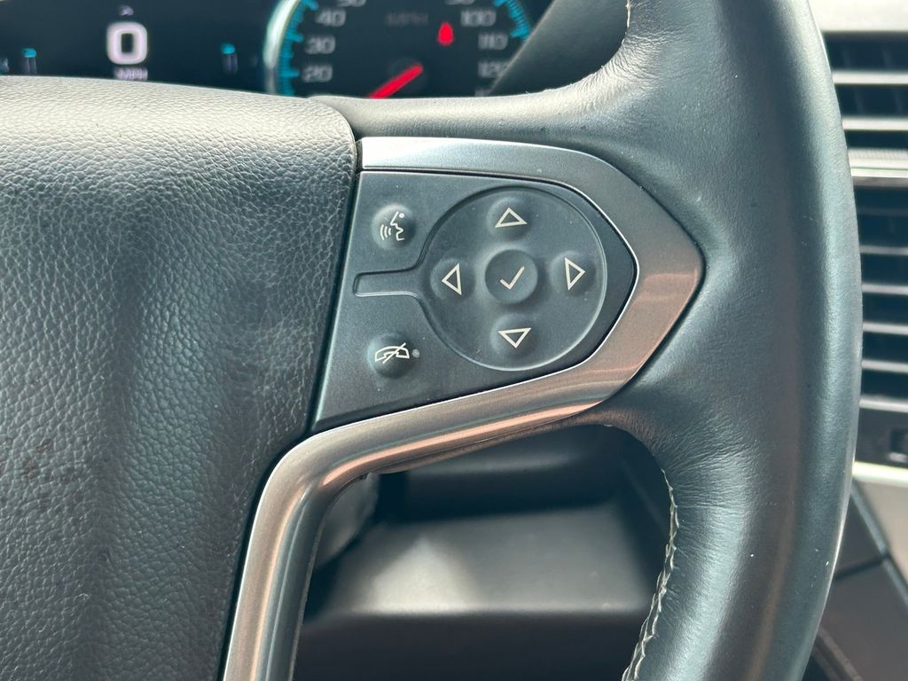 CARFAX One-Owner. Jet Black Leather, 10 Speakers, 1st & 2nd Row Color-Keyed Carpeted Floor Mats, 3.08 Rear Axle Ratio, 3rd Row 60/40 Power Fold Split-Bench, 3rd row seats: split-bench, 4-Wheel Antilock Disc Brakes w/Brake Assist, 4-Wheel Disc Brakes, 5 12-Volt Auxiliary Power Outlets, 6-Way Power Front Passenger Seat Adjuster, ABS brakes, Adaptive suspension, Adjustable pedals, Air Conditioning, Alloy wheels, AM/FM radio: SiriusXM, Apple CarPlay/Android Auto, Auto High-beam Headlights, Auto-dimming door mirrors, Auto-Dimming Inside Rear-View Mirror, Auto-dimming Rear-View mirror, Automatic temperature control, Black Assist Steps w/Chrome Accent Strip, Bodyside moldings, Bose Centerpoint Premium 10-Speaker Surround Sound, Brake assist, Bumpers: body-color, Cargo Net, CD player, Color-Keyed Carpeting Floor Covering, Compass, Delay-off headlights, Driver door bin, Driver Inboard & Front Passenger Airbags, Driver vanity mirror, Dual front impact airbags, Dual front side impact airbags, Electronic Cruise Control w/Set & Resume Speed, Electronic Stability Control, Emergency communication system: OnStar Guidance, Enhanced Driver Alert Package (Y86), Enhanced Driver Information Center, Exterior Parking Camera Rear, Floor Console, Fog Lamps, Forward Collision Alert Sensor Indicator, Front & Rear Parking Assist, Front anti-roll bar, Front Bucket Seats, Front Center Armrest, Front dual zone A/C, Front fog lights, Front Heated Reclining Bucket Seats, Front reading lights, Front wheel independent suspension, Fully automatic headlights, Garage door transmitter, Hands Free Power Liftgate, Head-Up Display, Heated & Vented Driver & Front Passenger Seats, Heated 2nd Row Seats, Heated door mirrors, Heated front seats, Heated Leather Wrapped Steering Wheel, Heated rear seats, Heated steering wheel, High-Intensity Discharge Headlights, Illuminated entry, IntelliBeam Headlamps, Lane Keep Assist, License Plate Front Mounting Package, Low Speed Forward Automatic Braking, Low tire pressure warning, Magnetic Ride Control Suspension Package, Memory seat, Memory Settings, Navigation System, NavTraffic, Occupant sensing airbag, OnStar Basic Plan For 5 Years, Outside temperature display, Overhead airbag, Overhead console, Panic alarm, Passenger door bin, Passenger vanity mirror, Passive Entry System, Pedal memory, Perforated Leather-Appointed Seat Trim, Power door mirrors, Power driver seat, Power Liftgate, Power passenger seat, Power Release 2nd Row Bucket Seats, Power steering, Power Sunroof, Power Tilt & Telescopic Steering Column, Power windows, Power-Adjustable Accelerator & Brake Pedals, Power-Folding Heated Outside Mirrors, Preferred Equipment Group 1LZ, Premium audio system: Chevrolet MyLink, Push Button Keyless Start, Radio: Chevrolet MyLink w/Nav/AM/FM Stereo, Rain sensing wipers, Rear air conditioning, Rear anti-roll bar, Rear Cross-Traffic Alert, Rear reading lights, Rear Seat Blu-Ray/DVD Entertainment System, Rear window defroster, Rear window wiper, Remote Keyless Entry, Remote keyless entry, Remote Vehicle Start, Roof rack: rails only, Roof-Mounted Luggage Rack Side Rails, Security system, Side Blind Zone Alert w/Lane Change Alert, Single-Slot CD/MP3 Player, SiriusXM Satellite Radio, Speed control, Speed-sensing steering, Split folding rear seat, Spoiler, Steering wheel memory, Steering wheel mounted audio controls, Sun, Entertainment & Destinations Package, Tachometer, Telescoping steering wheel, Tilt steering wheel, Traction control, Trip computer, Turn signal indicator mirrors, Universal Home Remote, Variably intermittent wipers, Ventilated front seats, Voltmeter, Wheels: 20" x 9" Polished-Aluminum, Wireless Charging.