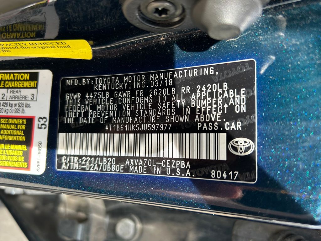 2018 Aqua Toyota Camry 2.5L I4 DOHC 16V FWD XSE