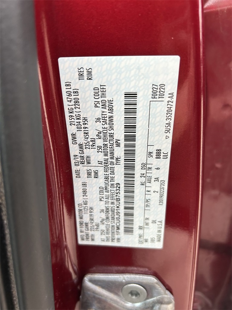 VIN 1FMCU0J91KUB75329