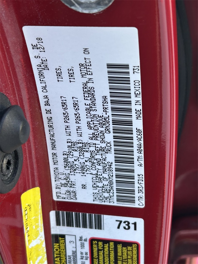 2019 Barcelona Red Metallic Toyota Tacoma 3.5L V6 PDI DOHC 24V LEV3-ULEV70 278hp 4WD Limited