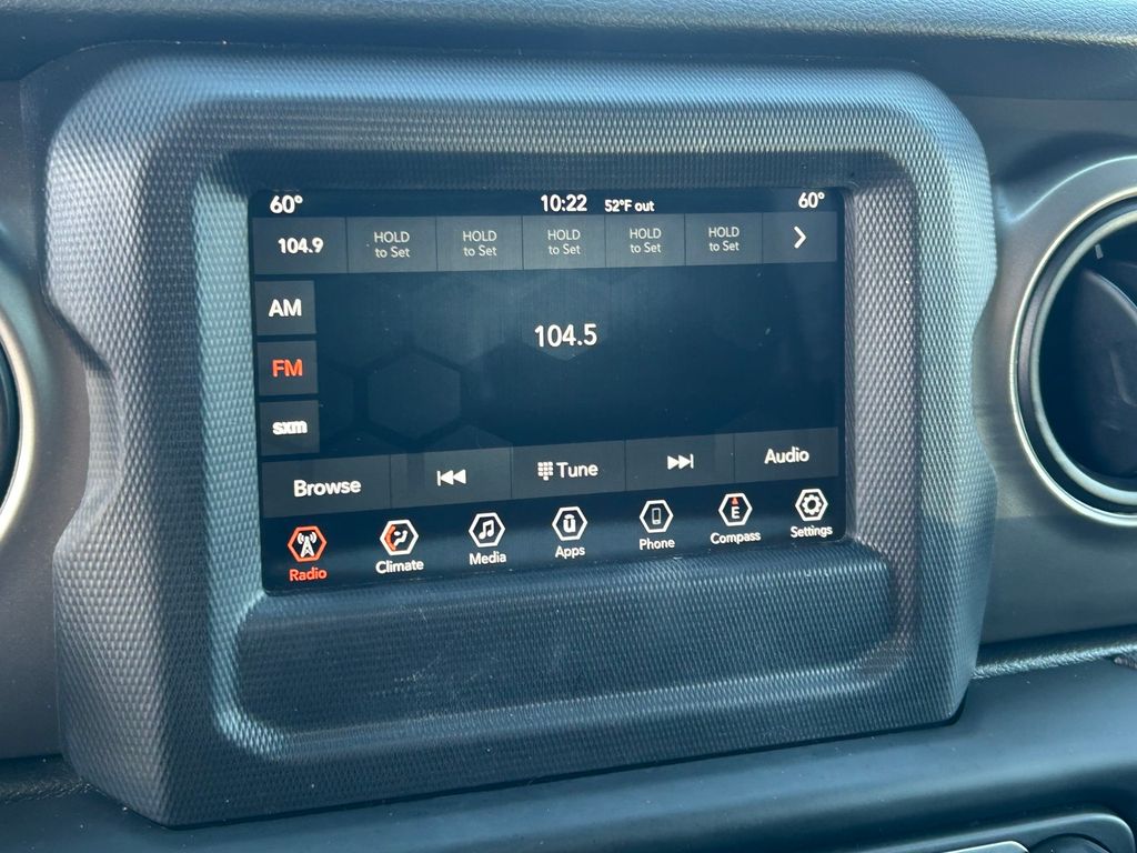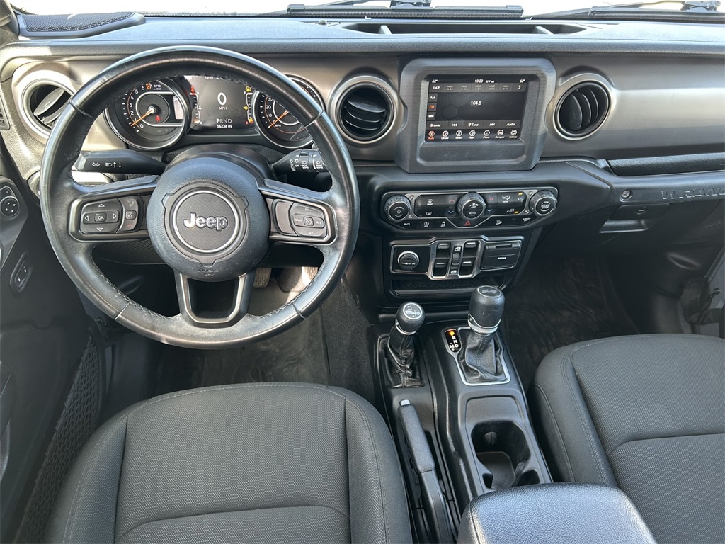 1-Year SiriusXM Radio Service, 3.45 Rear Axle Ratio, 4-Wheel Disc Brakes, 7.0" Touchscreen Display, 8 Speakers, ABS brakes, Air Conditioning, Air Conditioning w/Auto Temperature Control, Air Filtering, AM/FM radio, Apple CarPlay, Apple CarPlay (DISC), Automatic Headlamps, Aux Battery, Black 3-Piece Hard Top, Brake assist, Cloth Low-Back Bucket Seats, Cluster 7.0" TFT Color Display, Compass, Deep Tint Sunscreen Windows, Delay-off headlights, Driver door bin, Driver vanity mirror, Dual front impact airbags, Dual front side impact airbags, Electronic Stability Control, Freedom Panel Storage Bag, Front 1-Touch Down Power Windows, Front anti-roll bar, Front Bucket Seats, Front Center Armrest w/Storage, Front fog lights, Front reading lights, Google Android Auto, Google Android Auto (DISC), GPS Antenna Input, Integrated Center Stack Radio, Integrated roll-over protection, Integrated Voice Command w/Bluetooth, Leather Wrapped Steering Wheel, Low tire pressure warning, MOPAR All-Weather Floor Mats (DISC), No Soft Top, Non-Lock Fuel Cap w/o Discriminator, Normal Duty Suspension, Occupant sensing airbag, Outside temperature display, ParkView Rear Back-Up Camera, Passenger door bin, Passenger vanity mirror, Power Heated Mirrors, Power steering, Quick Order Package 23S Sport S, Quick Order Package 24S Sport S, Radio data system, Radio: Uconnect 3 w/5" Display, Radio: Uconnect 4 w/7" Display, Rear anti-roll bar, Rear reading lights, Rear Window Defroster, Rear Window Wiper/Washer, Remote Keyless Entry, Security Alarm, SiriusXM Satellite Radio, Speed control, Speed Sensitive Power Locks, Split folding rear seat, Steering wheel mounted audio controls, Stop-Start Dual Battery System, Sun Visors w/Illuminated Vanity Mirrors, Tachometer, Technology Group, Telescoping steering wheel, Tilt steering wheel, Traction control, Trip computer, USB Host Flip, Variably intermittent wipers, Wheels: 17" x 7.5" Black Steel Styled, Wheels: 17" x 7.5" Tech Silver Aluminum.