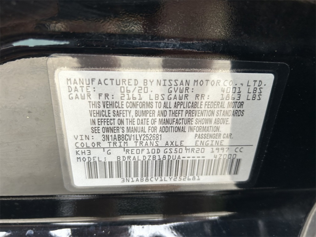 2020 Super Black Nissan Sentra 2.0L DOHC FWD SV