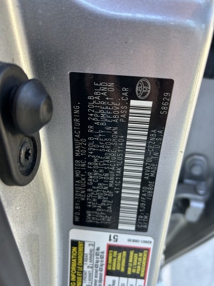 2020 Silver Toyota Camry 2.5L I4 DOHC 16V FWD LE