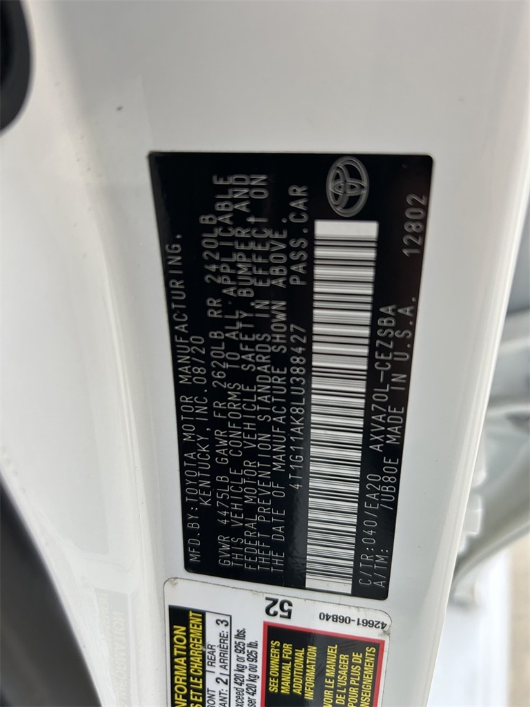 2020 Super White Toyota Camry 2.5L I4 DOHC 16V FWD SE