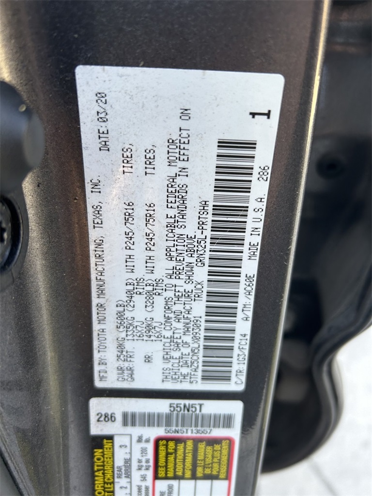 2020 Magnetic Gray Toyota Tacoma 3.5L V6 PDI DOHC 24V LEV3-ULEV70 278hp RWD SR5