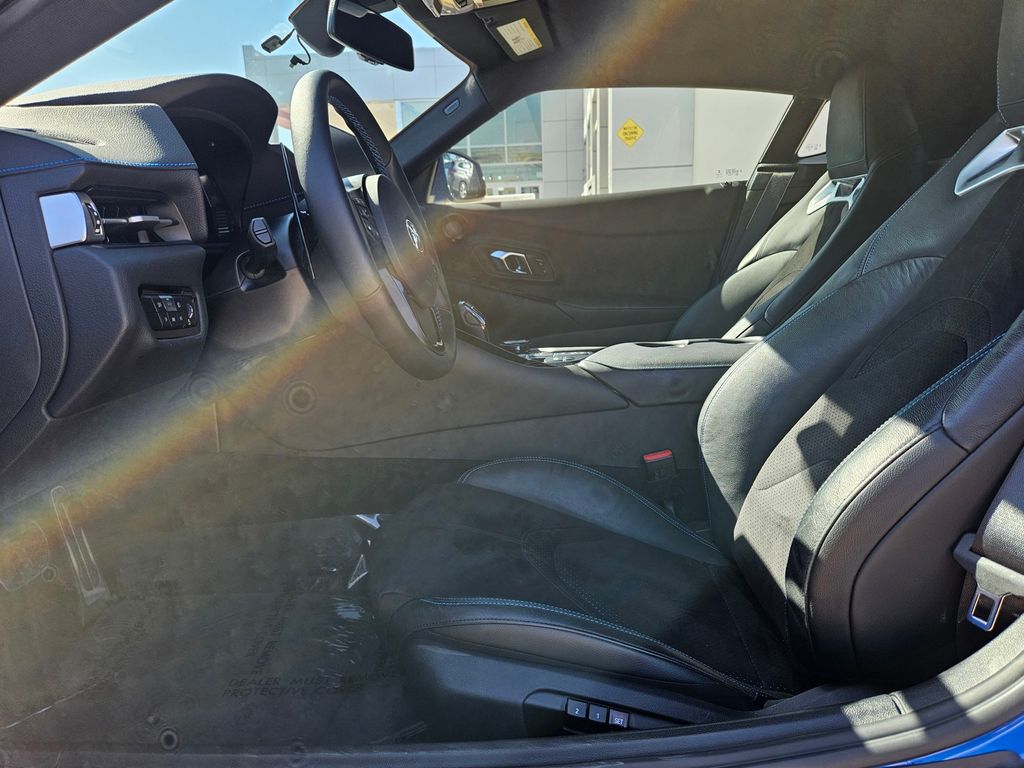 12 Speakers, 4-Wheel Disc Brakes, ABS brakes, Adaptive Cruise Control w/Stop & Go, Adaptive suspension, Air Conditioning, Alcantara/Leather Seat Trim w/ Blue Stitching, Alloy wheels, AM/FM radio: SiriusXM, Apple CarPlay, Auto High-beam Headlights, Auto-dimming door mirrors, Auto-dimming Rear-View mirror, Automatic temperature control, Blind Spot Monitor, Brake assist, Bumpers: body-color, Child-Seat-Sensing Airbag, Clearance & Back Up Sonar, Delay-off headlights, Driver Assist Package, Driver door bin, Driver vanity mirror, Dual front impact airbags, Dual front side impact airbags, Electronic Stability Control, Emergency communication system: Supra Connect w/4-year trial, Exterior Parking Camera Rear, Four wheel independent suspension, Front anti-roll bar, Front Bucket Seats, Front Center Armrest, Front dual zone A/C, Front fog lights, Front reading lights, Fully automatic headlights, Garage door transmitter: HomeLink, Heated door mirrors, Heated front seats, Heated Front Sport Seats, Illuminated entry, Knee airbag, Leather Shift Knob, Leather steering wheel, Low tire pressure warning, Memory seat, Navigation System, Occupant sensing airbag, Outside temperature display, Overhead airbag, Panic alarm, Passenger door bin, Passenger vanity mirror, Power door mirrors, Power driver seat, Power passenger seat, Power steering, Power windows, Radio data system, Radio: 500-Watt AM/FM JBL Audio w/12 Speakers, Rain sensing wipers, Rear anti-roll bar, Rear Cross Traffic Alert, Rear window defroster, Red Brake Calipers, Remote keyless entry, Security system, Speed control, Speed-sensing steering, Speed-Sensitive Wipers, Spoiler, Steering wheel mounted audio controls, Tachometer, Telescoping steering wheel, Tilt steering wheel, Traction control, Trip computer, Turn signal indicator mirrors, Variably intermittent wipers, Wheels: 19" Forged Aluminum w/Matte-Black Finish.