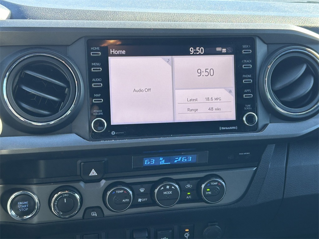 Clean CARFAX. 4WD, 120V/400W Deck Mounted AC Power, 6 Speakers, ABS brakes, Air Conditioning, All Weather Floor Liner & Door Sill Protector (TMS), Alloy wheels, AM/FM radio: SiriusXM, Anti-whiplash front head restraints, Apple CarPlay/Android Auto, Auto High-beam Headlights, Auto-dimming Rear-View mirror, Automatic temperature control, Axle Ratio: 3.91, Bed Lighting Kit (TMS), Black Overfenders, Blackout Emblem Overlays (TMS), Brake assist, Bumpers: body-color, Chrome Rear Bumper, Driver door bin, Dual front impact airbags, Dual front side impact airbags, Electronic Stability Control, Emergency communication system: Safety Connect with 1-year trial, Engine Immobilizer, Exterior Parking Camera Rear, Fabric Seat Trim (FD), Front anti-roll bar, Front Bucket Seats, Front Center Armrest, Front dual zone A/C, Front fog lights, Front reading lights, Front Seats, Front wheel independent suspension, Heated door mirrors, Illuminated entry, Knee airbag, Leather Shift Knob, LED Fog Lamp w/Black Bezel, Low tire pressure warning, Occupant sensing airbag, Outside temperature display, Overhead airbag, Overhead console, Panic alarm, Passenger door bin, Power Color Turn Mirror, Power door mirrors, Power driver seat, Power Sliding Rear Window w/Privacy Glass, Power steering, Power windows, Preferred Owners Portfolio (TMS), Radio: AM/FM Radio, Rear step bumper, Remote keyless entry, Security system, Smart Key w/Push Button Start, Speed control, Speed-sensing steering, Split folding rear seat, Steering wheel mounted audio controls, Tachometer, Telescoping steering wheel, Tilt steering wheel, Traction control, TRD Off Road Package, Trip computer, Turn signal indicator mirrors, Variably intermittent wipers, Wheels: 16" x 7J Machined Contrast Alloy.