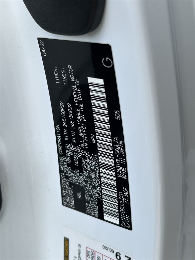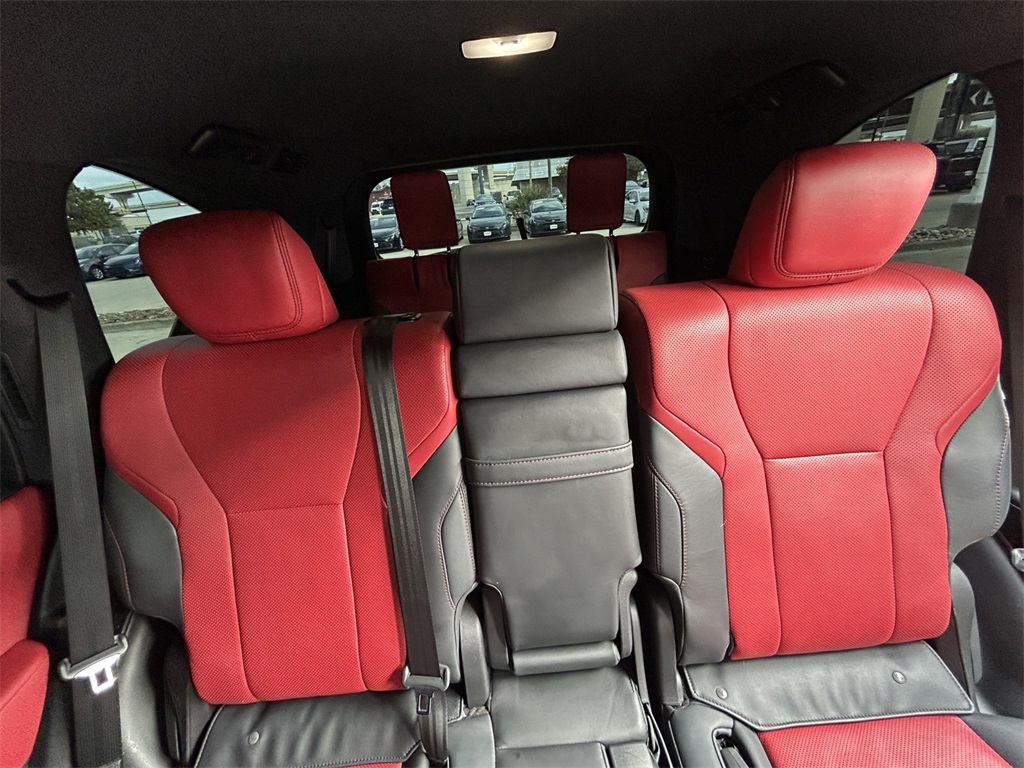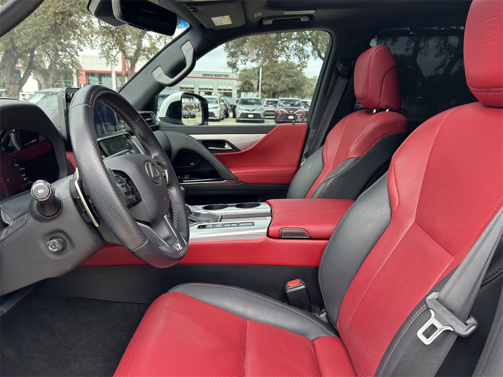 Circuit Red Leather, 10 Speakers, 3.307 Axle Ratio, 3rd row seats: split-bench, 4-Wheel Disc Brakes, ABS brakes, Accessory Package (P3), Accessory Package (Z1), Adaptive suspension, Air Conditioning, Alloy Wheel Locks, Alloy wheels, Aluminum F SPORT Door Trim, AM/FM Radio, AM/FM radio: SiriusXM, Apple CarPlay/Android Auto, Auto High-beam Headlights, Auto tilt-away steering wheel, Auto-dimming door mirrors, Auto-dimming Rear-View mirror, Automatic temperature control, Brake assist, Bumpers: body-color, Cargo Net, Carpet Cargo Mat, Compass, Cool Box/Hot Box w/o Light, Delay-off headlights, Dimple Leather Heated Steering Wheel, Door auto-latch, Door Edge Film by 3M, Driver door bin, Driver vanity mirror, Dual front impact airbags, Dual front side impact airbags, Electronic Stability Control, Emergency communication system: Safety Connect, Exterior Parking Camera Rear, F SPORT Package, F SPORT Package Option 1, F SPORT Price Adjustment for USA Grade Package, F SPORT Rear Towing Bumper, Fr & Rr Suspension w/Illuminated Door Scuff Plate, Front & Rear Seat Ventilation Air Conditioner, Front anti-roll bar, Front Bucket Seats, Front Center Armrest, Front dual zone A/C, Front fog lights, Front reading lights, Front wheel independent suspension, Fully automatic headlights, Garage door transmitter: HomeLink, Headlight cleaning, Heads-Up Display, Heated door mirrors, Heated front seats, Heated rear seats, Heated steering wheel, Ignition Switch, Room Lamp, Ambient & Shift, Illuminated entry, Key Gloves, Knee airbag, Leather Shift Knob, Leather steering wheel, Low tire pressure warning, Mark Levinson Surround Sound Audio System, Memory seat, Navigation System, Occupant sensing airbag, Outside temperature display, Overhead airbag, Overhead console, Paint Protection Film by 3M - Hood & Fender, Panic alarm, Passenger door bin, Passenger vanity mirror, Power door mirrors, Power driver seat, Power Liftgate, Power moonroof, Power passenger seat, Power steering, Power windows, Radio data system, Rain sensing wipers, Rear air conditioning, Rear anti-roll bar, Rear dual zone A/C, Rear reading lights, Rear seat center armrest, Rear side impact airbag, Rear Torque Sensing LSD Differential Lock, Rear window defroster, Rear window wiper, Reclining 3rd row seat, Remote keyless entry, Security system, Semi-Aniline Leather Seat Trim, Speed control, Speed-sensing steering, Split folding rear seat, Spoiler, Steering wheel memory, Steering wheel mounted audio controls, Tachometer, Telescoping steering wheel, Tilt steering wheel, Traction control, Trip computer, Turn signal indicator mirrors, Variably intermittent wipers, Ventilated front seats, Voltmeter, Wheels: 22" Exclusive Forged Aluminum.