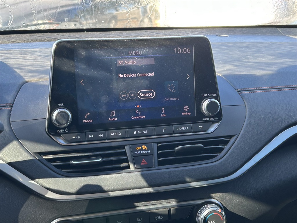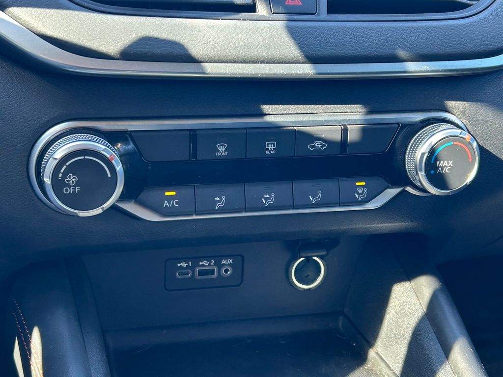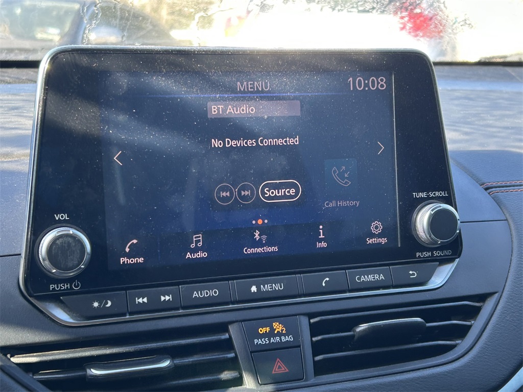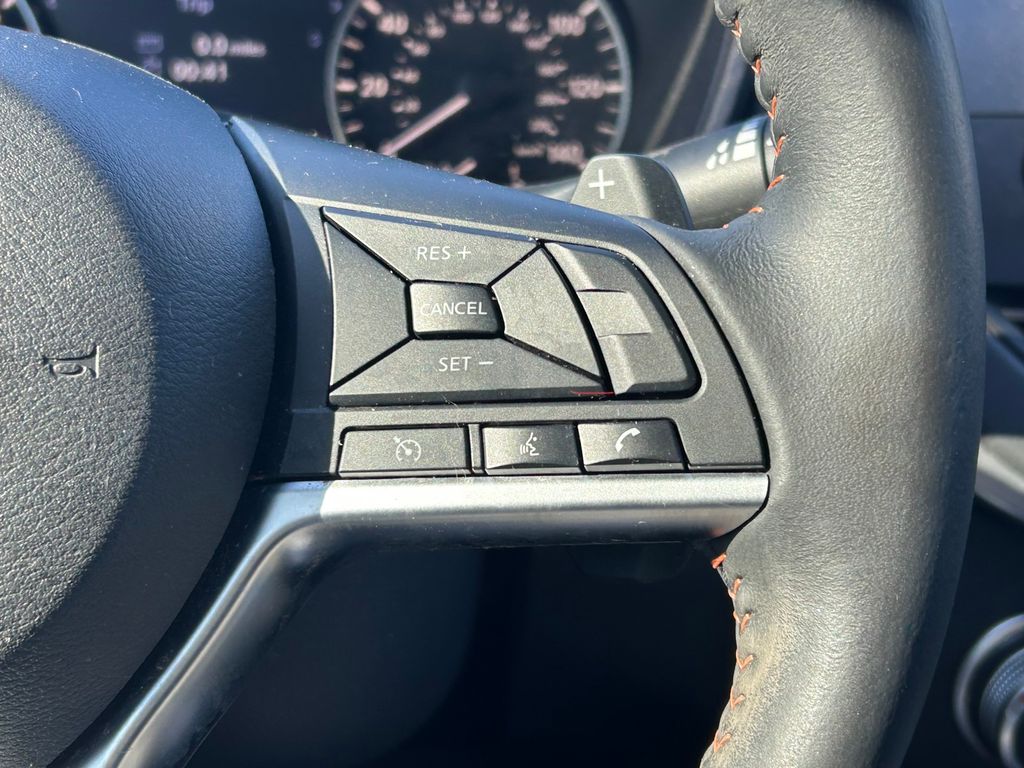 CARFAX One-Owner. Clean CARFAX. CVT with Xtronic, 4-Wheel Disc Brakes, 6 Speakers, ABS brakes, Air Conditioning, Alloy wheels, AM/FM radio: SiriusXM, Auto High-beam Headlights, Blind Spot Warning, Body-Colored Splash Guards, Brake assist, Bumpers: body-color, Chrome Bumper Protector, Delay-off headlights, Driver door bin, Driver vanity mirror, Dual front impact airbags, Dual front side impact airbags, Electronic Stability Control, Four wheel independent suspension, Front anti-roll bar, Front Bucket Seats, Front Center Armrest, Front reading lights, Front Sport Bucket Seats, Fully automatic headlights, Illuminated entry, Knee airbag, Leather Shift Knob, Low tire pressure warning, NissanConnect featuring Apple CarPlay and Android Auto, Occupant sensing airbag, Outside temperature display, Overhead airbag, Overhead console, Panic alarm, Passenger door bin, Passenger vanity mirror, Power door mirrors, Power driver seat, Power steering, Power windows, Radio data system, Radio: AM/FM Audio System, Rear anti-roll bar, Rear Parking Sensors, Rear reading lights, Rear seat center armrest, Rear side impact airbag, Rear window defroster, Remote keyless entry, Security system, Speed control, Speed-sensing steering, Speed-Sensitive Wipers, Split folding rear seat, Sport Seat Trim, Sport steering wheel, SR Floor Mats/Trunk Mat/Hideaway Nets, Steering wheel mounted audio controls, Tachometer, Telescoping steering wheel, Tilt steering wheel, Traction control, Trip computer, Trunk Organizer Tray, Variably intermittent wipers, Wheels: 19" Machined Alloy.