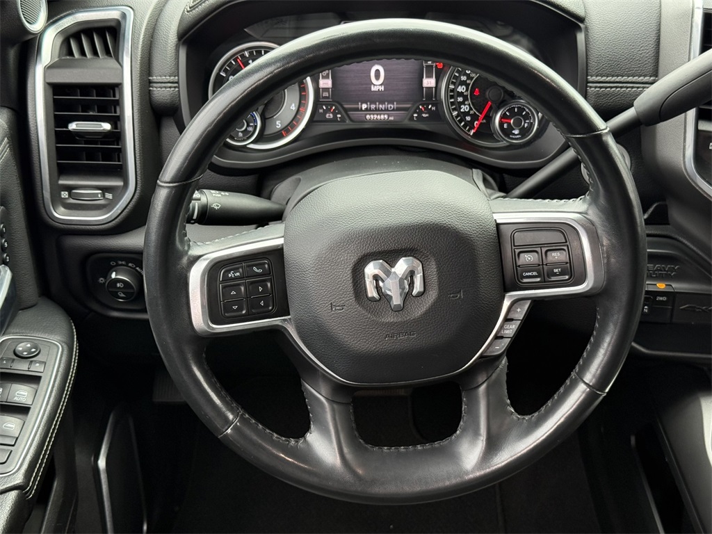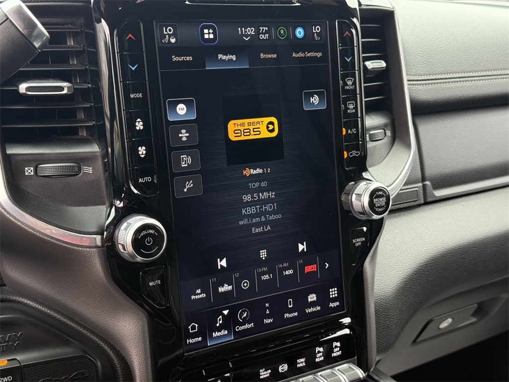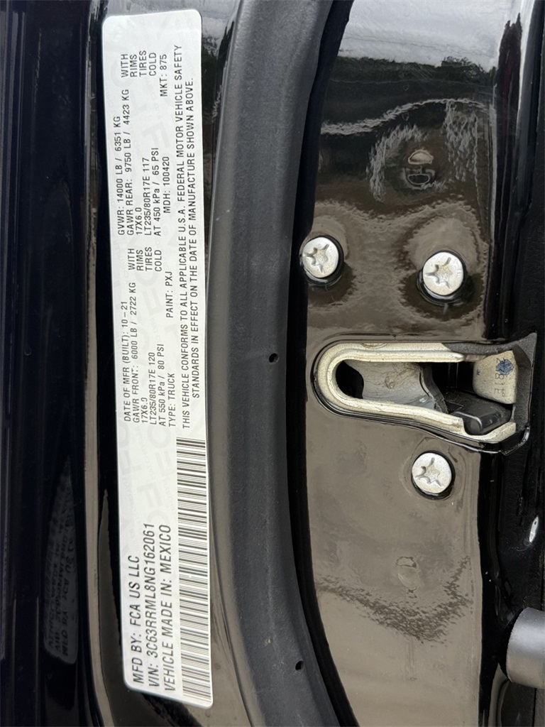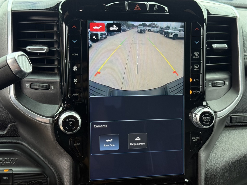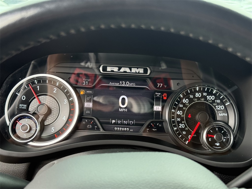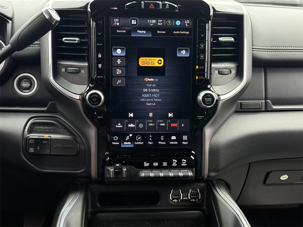#1 Seat Foam Cushion, 10 Speakers, 115V Auxiliary Rear Power Outlet, 12" Touchscreen Display, 17 Speaker harman kardon Premium Sound, 2 Red Vinyl Flags, 2 Way Rear Headrest Seat, 220 Amp Alternator, 3 Reflecting Triangles, 4 Way Front Headrests, 4-Wheel Disc Brakes, 4.10 Axle Ratio, 4G LTE Wi-Fi Hot Spot, 5th Wheel/Gooseneck Towing Prep Group, 6000# Front Axle w/Hub Ext, 8.4" Touchscreen Display, ABS brakes, Active Noise Control System, Adjustable pedals, Air Conditioning, Air Suspension Decal, Alexa Built-In, All R1 High Radios, All Radio Equipped Vehicles, Alloy wheels, AM/FM radio: SiriusXM, Apple CarPlay, Apple CarPlay/Android Auto, Auto High Beam Headlamp Control, Auto Level Rear Air Suspension, Auto-dimming Rear-View mirror, Automatic temperature control, Black Interior Accents, Body Color Door Handles, Body Color Grille Surround, Box & Rear Fender Clearance Lamps, Brake assist, Bumpers: chrome, Center Hub, Clearance Lamps, Compass, Connected Travel & Traffic Services, Connectivity - US/Canada, CTR Stop Lamp w/Cargo View Camera, Delay-off headlights, Disassociated Touchscreen Display, DOT Certified Roadside Safety Kit, DOT Fire Extinguisher, Driver door bin, Driver vanity mirror, Dual Alternators Rated At 440 Amps, Dual front impact airbags, Dual front side impact airbags, Dual Rear Wheels, Electronic Stability Control, Electronically Controlled Throttle, Foam Bottle Insert (Door Trim Panel), For Details Visit DriveUconnect.com, For More Info, Call 800-643-2112, Front anti-roll bar, Front Bumper Sight Shields, Front Center Armrest w/Storage, Front dual zone A/C, Front fog lights, Front reading lights, Front Seat Back Map Pockets, Fully automatic headlights, Garage door transmitter, Global Telematics Box Module (TBM), Google Android Auto, GPS Antenna Input, GPS Navigation, HD Radio, Heated door mirrors, Heated Front Seats, Heated front seats, Heated Second Row Seats, Heated Steering Wheel, Heated steering wheel, Heavy Duty Snow Plow Prep Group, High Back Seats, Illuminated entry, Integrated Center Stack Radio, Integrated Voice Command w/Bluetooth, Laramie Level D Equipment Group (DISC), Leather steering wheel, Leather Trim 40/20/40 Bench Seat, Low tire pressure warning, Max Tow Package, MOPAR 30K Direct Mount 5th Wheel Hitch, Occupant sensing airbag, Off-Road Information Pages, Outside temperature display, Overhead airbag, Overhead console, Painted Front Bumper, Painted Rear Bumper, Panic alarm, ParkView Rear Back-Up Camera, Passenger door bin, Passenger vanity mirror, Power 8-Way Adjustable Passenger Seat, Power Adjust 8-Way Driver Seat, Power Adjustable Pedals w/Memory, Power door mirrors, Power driver seat, Power Multi-Function Manual Folding Mirrors, Power passenger seat, Power steering, Power windows, Quick Order Package 21H Laramie, Radio data system, Radio: Uconnect 5 Nav w/12.0" Display, Radio: Uconnect 5 Nav w/8.4" Display, Radio: Uconnect 5 w/8.4" Display, Radio/Driver Seat/Mirrors/Pedals Memory, Rain Sensitive Windshield Wipers, Rear 60/40 Folding Seat, Rear reading lights, Rear seat center armrest, Rear step bumper, Rear window defroster, Remote keyless entry, Remote Tailgate Release, Security system, Selectable Tire Fill Alert, SiriusXM Radio Service, SiriusXM Satellite Radio, SiriusXM w/360L, Spare Fuses, Speed control, Split folding rear seat, Sport Appearance Package, Sport Decal, Steering wheel mounted audio controls, Tachometer, Tilt steering wheel, Tip Start, Traction control, Trip computer, Turn signal indicator mirrors, Variably intermittent wipers, Vendor Painted Cargo Box, Vendor Painted Cargo Box Tracking, Ventilated Front Seats, Voltmeter, Wheels: 17" x 6.0" Polished Aluminum, Wheels: 18" x 8.0" Polished Aluminum.