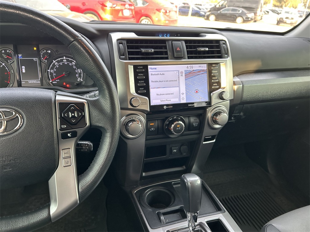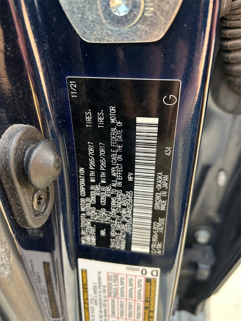 CARFAX One-Owner. Clean CARFAX. Graphite Artificial Leather, 17" 6-Spoke Alloy Wheels, 3.727 Axle Ratio, 4-Wheel Disc Brakes, 8 Speakers, ABS brakes, Air Conditioning, Alloy wheels, AM/FM radio: SiriusXM, Anti-whiplash front head restraints, Apple CarPlay/Android Auto, Auto High-beam Headlights, Auto-dimming Rear-View mirror, Blind Spot Monitor (BSM), Brake assist, Bumpers: body-color, Compass, Driver door bin, Driver vanity mirror, Dual front impact airbags, Dual front side impact airbags, Electronic Stability Control, Emergency communication system: Safety Connect with 1-year trial, Exterior Parking Camera Rear, Front anti-roll bar, Front Bucket Seats, Front Center Armrest, Front fog lights, Front reading lights, Front wheel independent suspension, Garage Door Opener, Garage door transmitter: HomeLink, Heated door mirrors, Heated Front Bucket Seats, Heated front seats, Illuminated entry, Knee airbag, Leather Shift Knob, Leather steering wheel, Low tire pressure warning, Moonroof Package, Moonroof w/Tilt Up & Slide, Navigation System, Occupant sensing airbag, Outside Rear View Mirror, Outside temperature display, Overhead airbag, Overhead console, Panic alarm, Panoramic Back Monitor, Passenger door bin, Passenger vanity mirror, Power door mirrors, Power driver seat, Power passenger seat, Power steering, Power windows, Radio: Premium Audio w/Dynamic Navigation, Rear anti-roll bar, Rear seat center armrest, Rear window defroster, Rear window wiper, Remote keyless entry, Roof rack: rails only, Security system, SofTex Seat Trim, SofTex-Trimmed 50/50 Split Fold-Flat 3rd Row, Speed control, Speed-sensing steering, Split folding rear seat, Spoiler, SR5 Premium Plus Package w/SofTex, Steering wheel mounted audio controls, Tachometer, Telescoping steering wheel, Tilt steering wheel, Traction control, Trip computer, Trunk Carpet, Turn signal indicator mirrors, Variably intermittent wipers.