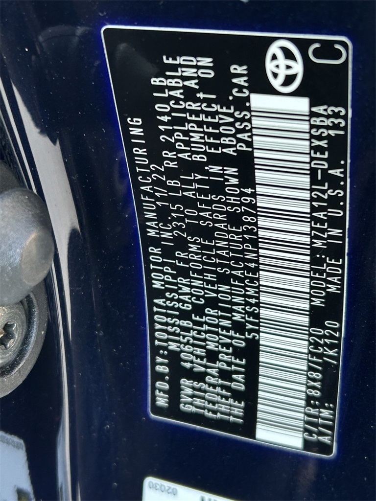 CARFAX One-Owner. Clean CARFAX. ABS brakes, Active Cruise Control, Alloy wheels, Electronic Stability Control, Heated door mirrors, Illuminated entry, Low tire pressure warning, Remote keyless entry, Traction control.31/38 City/Highway MPG2022 Blueprint Toyota Corolla 2.0L I4 DOHC 16V FWD SE---------------------------------------------------------------------------------------------------------------------------------------------------------------------------------------------------------------------------------------------------------------------The all new Shottenkirk Toyota of San Antonio. We are part of the Family owned Shottenkirk Auto Group that has been exceeding our customer's expectations in sales and service for over 60 years. All Pre Owned vehicles go through a complete 120 point inspection and complete detail. We look forward to earning your business. Previously Alamo Toyota---call 210-494-1604 for details.Plus Tax, title, license, document fee extra. New/Pre-owned vehicles come with $3696 tint, nitrogen, and VIP Customer Care: Dent/Ding repair. Tire/Wheel Protection. Windshield Repair. Key Replacement (new vehicles) and Paint enhancement. Complimentary 6 Month / 6,000 mile Powertrain Coverage and AC Warranty for pre-owned. AC Warranty and Powertrain excludes some vehicles – see dealer for details. **Under 97,000 miles will receive a 6 month/6,000 miles powertrain warranty. Vehicles over 97,001-119,999 will receive a 3-month/3000 miles powertrain warranty. No coverage on vehicles over 120,000 miles. Some restrictions apply; please call us for a copy of the contract for specific information. Certain restrictions may apply. See dealer for details. ** Due to current market volatility, we are pricing our vehicles immediately following acquisition. All vehicles will be reconditioned and made ready for sale. Price will be the advertised price plus, TT&L, Registration, and $225.00 dealer documentation fee, any other fees or charges that are allowed or prescribed by law. Any quoted financing terms are subject to final lender approval and are only estimates.