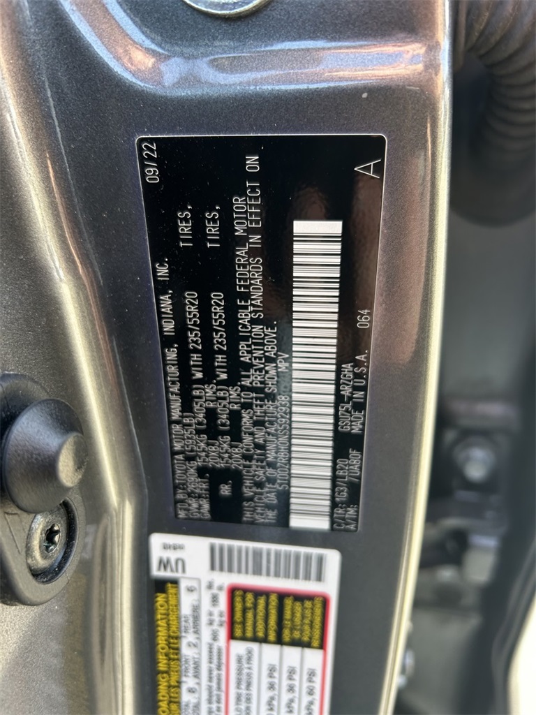 CARFAX One-Owner. Clean CARFAX. AWD, 11 Speakers, 12.3" Screen & Birds Eye View, 2nd Row Bench Seat, 3.003 Axle Ratio, 3rd row seats: split-bench, 4-Wheel Disc Brakes, ABS brakes, Air Conditioning, All Weather Floor & Cargo Liner (TMS), Alloy wheels, AM/FM radio: SiriusXM, Apple CarPlay/Android Auto, Auto High-beam Headlights, Auto-dimming Rear-View mirror, Automatic temperature control, Black Emblem Overlays (TMS), Brake assist, Bumpers: body-color, Chrome wheels, Clear Rear Bumper Applique (TMS), Dashcam (TMS), Delay-off headlights, Door Edge Guards (TMS), Driver door bin, Driver vanity mirror, Dual front impact airbags, Dual front side impact airbags, Electronic Stability Control, Emergency communication system: Safety Connect with 1-year trial, Exterior Parking Camera Rear, Four wheel independent suspension, Front anti-roll bar, Front Bucket Seats, Front Center Armrest, Front dual zone A/C, Front fog lights, Front reading lights, Fully automatic headlights, Garage door transmitter: HomeLink, Heated door mirrors, Heated front seats, Heated steering wheel, Heated/Ventilated Front Bucket Seats, Illuminated Door Sills (TMS), Illuminated entry, Knee airbag, Leather Seat Trim, Leather Shift Knob, Low tire pressure warning, Memory seat, Navigation system: Dynamic Navigation (3-year trial), Occupant sensing airbag, Outside temperature display, Overhead airbag, Overhead console, Paint Protection Film (TMS), Panic alarm, Panoramic View Monitor, Passenger door bin, Passenger vanity mirror, Power door mirrors, Power driver seat, Power Liftgate, Power moonroof, Power passenger seat, Power steering, Power windows, Quick Charge Cable (TMS), Radio: Premium Audio w/JBL Clari-Fi, Radio: Premium Audio w/JBL Clari-Fi & 12.3" Screen, Rear air conditioning, Rear anti-roll bar, Rear reading lights, Rear window defroster, Rear window wiper, Reclining 3rd row seat, Remote keyless entry, Roof rack: rails only, Security system, Speed control, Speed-sensing steering, Split folding rear seat, Spoiler, Steering wheel mounted audio controls, Tachometer, Telescoping steering wheel, Tilt steering wheel, Traction control, Trip computer, Turn signal indicator mirrors, Variably intermittent wipers, Ventilated front seats, Wheels: 20" Chrome Alloy.
