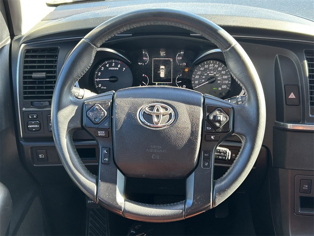 6-Speed Automatic, 3rd row seats: split-bench, 4-Wheel Disc Brakes, 4.30 Axle Ratio, 7-Passenger Seating w/2nd Row Captains Chairs, 8 Speakers, ABS brakes, Air Conditioning, Alloy wheels, AM/FM radio: SiriusXM, Apple CarPlay/Android Auto, Auto High-beam Headlights, Automatic temperature control, Brake assist, Bumpers: body-color, Delay-off headlights, Driver door bin, Driver vanity mirror, Dual front impact airbags, Dual front side impact airbags, Easy Clean Fabric Seat Trim, Electronic Stability Control, Emergency communication system: Safety Connect with 1-year trial, Exterior Parking Camera Rear, Four wheel independent suspension, Front anti-roll bar, Front Bucket Seats, Front Center Armrest, Front dual zone A/C, Front fog lights, Front reading lights, Fully automatic headlights, Headlight cleaning, Heated door mirrors, Illuminated entry, Knee airbag, Leather Shift Knob, Low tire pressure warning, Occupant sensing airbag, Outside temperature display, Overhead airbag, Overhead console, Panic alarm, Passenger door bin, Passenger vanity mirror, Power door mirrors, Power driver seat, Power moonroof, Power steering, Power windows, Radio: Audio Plus, Rear air conditioning, Rear anti-roll bar, Rear reading lights, Rear seat center armrest, Rear window defroster, Rear window wiper, Reclining 3rd row seat, Remote keyless entry, Roof rack, Security system, Speed control, Speed-sensing steering, Split folding rear seat, Spoiler, Steering wheel mounted audio controls, Tachometer, Telescoping steering wheel, Tilt steering wheel, Traction control, TRD Shift Knob, TRD Sport Badge, TRD Sport Door Sill, TRD Sport Floor Mats, TRD Sport Package, TRD Sport Shocks, TRD Sport Sway Bars, Trip computer, Variably intermittent wipers, Voltmeter, Wheels: 20" x 8" TRD Sport Black Alloy.