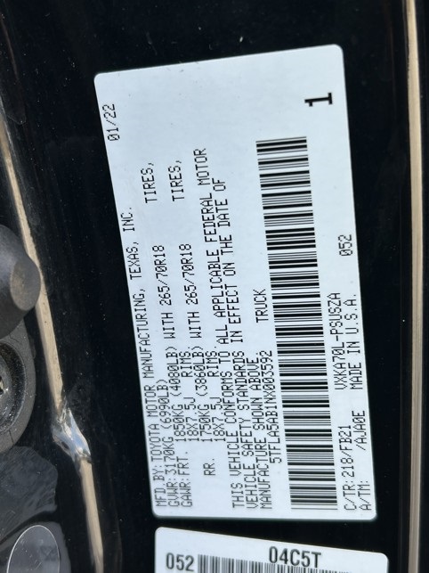 2022 Midnight Black Toyota Tundra 3.4L V6 RWD SR5