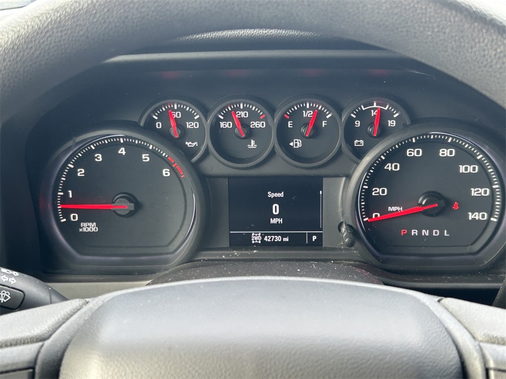CARFAX One-Owner. 6-Speed Automatic, 4WD, Black Cloth, 170 Amp Alternator, 2-Speed Electronic Shift Transfer Case, 3.5" Diagonal Monochromatic Display DIC, 3.73 Rear Axle Ratio, 4-Wheel Disc Brakes, 6 Speakers, 6-Speaker Audio System, 720 Cold-Cranking Amps Heavy-Duty Battery, ABS brakes, Air Conditioning, Alloy wheels, AM/FM radio, Apple CarPlay/Android Auto, Black Chevytec Spray-On Bedliner, Black Mirror Caps, Black Work Step (LPO), Bluetooth® For Phone, Body Color Front Grille, Brake assist, Cloth Seat Trim, Color-Keyed Carpeting Floor Covering, Custom Convenience Package, Deep-Tinted Glass, Delay-off headlights, Driver door bin, Dual front impact airbags, Dual front side impact airbags, Electric Rear-Window Defogger, Electronic Cruise Control w/Set & Resume Speed, Electronic Stability Control, EZ Lift Power Lock & Release Tailgate, Front 40/20/40 Split-Bench Seats, Front anti-roll bar, Front Center Armrest w/Storage, Front License Plate Kit, Front reading lights, Front Rubberized Vinyl Floor Mats, Front wheel independent suspension, Fully automatic headlights, Heated door mirrors, Heated Vertical Trailering Mirrors, Illuminated entry, Integrated Trailer Brake Controller, LED Cargo Area Lighting, Locking Tailgate, Low tire pressure warning, Manual Tailgate Function w/No EZ Lift, Manual Tilt-Wheel Steering Column, Occupant sensing airbag, Outside temperature display, Overhead airbag, Overhead console, Panic alarm, Passenger door bin, Passenger vanity mirror, Power Door Locks, Power door mirrors, Power Front Windows w/Driver Express Up/Down, Power Front Windows w/Passenger Express Down, Power Rear Windows w/Express Down, Power steering, Power windows, Preferred Equipment Group 1CX, Premium audio system: Chevrolet Infotainment 3, Radio: Chevrolet Infotainment 3 System, Rear 60/40 Folding Bench Seat (Folds Up), Rear reading lights, Rear Rubberized Vinyl Floor Mats, Rear step bumper, Remote Keyless Entry, Remote keyless entry, Remote Vehicle Starter System, Speed control, Split folding rear seat, Standard Tailgate, Suspension Package, Tachometer, Tilt steering wheel, Traction control, Trip computer, Turn signal indicator mirrors, Variably intermittent wipers, Voltmeter, Wheels: 20" 10-Spoke Machined Aluminum.