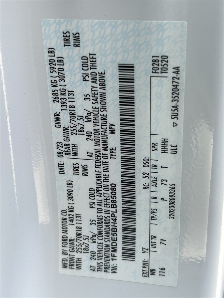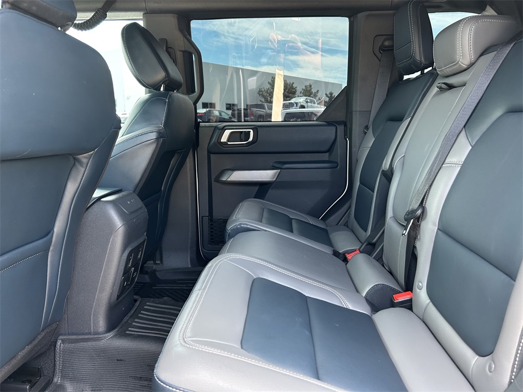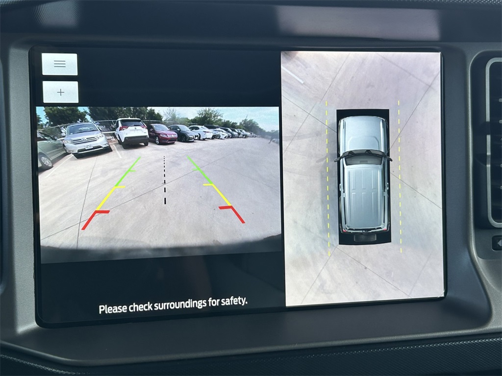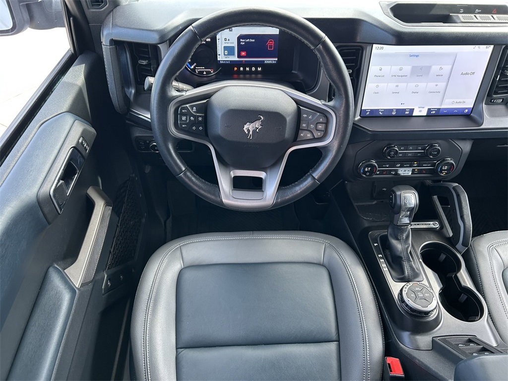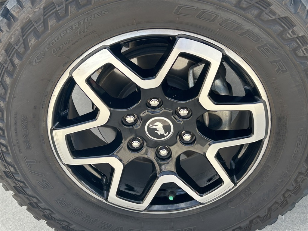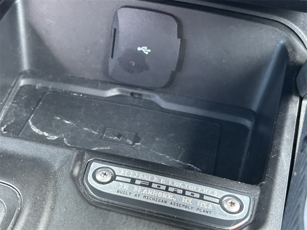 10 Speakers w/Subwoofer, 12" LCD Capacitive Touchscreen w/Swipe Capability, 18" Bright Machined Aluminum Wheels, 2 Smart Charging USB Ports In Dashboard, 3.73 Axle Ratio, 360-Degree Camera, 4-Wheel Disc Brakes, 7 Speakers, ABS brakes, Adaptive Cruise Control, Additional Sound Deadening, Air Conditioning, Alloy wheels, AM/FM radio: SiriusXM with 360L, AM/FM Stereo, Auto High-beam Headlights, Auto-dimming Rear-View mirror, Automatic temperature control, Brake assist, Carbonized Gray Molded-In-Color Hard Top, Compass, Connected Built-In Navigation, Connected Navigation, Delay-off headlights, Driver door bin, Driver vanity mirror, Dual front impact airbags, Dual front side impact airbags, Electronic Stability Control, Emergency communication system: 911 Assist, Equipment Group 314A Lux Package, Evasive Steering Assist, Exterior Parking Camera Rear, Front anti-roll bar, Front Bucket Seats, Front Center Armrest, Front dual zone A/C, Front fog lights, Front License Plate Bracket, Front Parking Sensors, Front reading lights, Front Row Top Panels Storage Bag, Front wheel independent suspension, Fully automatic headlights, Hard Top Sound Deadening Headliner, Heated door mirrors, Heated front seats, Heated Leather-Trimmed/Vinyl Bucket Seats, Heated Steering Wheel, Illuminated entry, Information on Demand Panel, Integrated roll-over protection, Leather Shift Knob, Low tire pressure warning, Navigation system: Connected Navigation, Occupant sensing airbag, Outside temperature display, Overhead airbag, Overhead console, Panic alarm, Passenger door bin, Passenger vanity mirror, Power door mirrors, Power steering, Power windows, Radio data system, Radio: B&O Sound System by Bang & Olufsen, Rear-Window Defroster & Washer, Remote keyless entry, Security system, Sideview Mirrors, SiriusXM Radio w/360L, Speed control, Split folding rear seat, Steering wheel mounted audio controls, SYNC 4, Tachometer, Telescoping steering wheel, Tilt steering wheel, Traction control, Trip computer, Universal Garage Door Opener, Variably intermittent wipers, Voltmeter, Wireless Charging Pad.