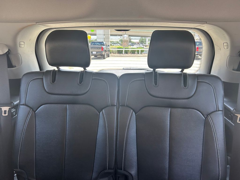 CARFAX One-Owner. Clean CARFAX. 2nd Row 60/40 Bench w/Manual Tip/Slide, 2nd Row Seat Center Armrest/Cupholders, 3 Rear Seat Head Restraints, 3.45 Rear Axle Ratio, 3rd row seats: split-bench, 4-Wheel Disc Brakes, 6 Speakers, 7-Passenger Seating, ABS brakes, Air Conditioning, Alloy wheels, AM/FM radio: SiriusXM with 360L, Anti-whiplash front head restraints, Audio memory, Auto High-beam Headlights, Automatic temperature control, Brake assist, Bumpers: body-color, Capri Leatherette Seats, Center Rear 3-Point Seat Belt, Compass, Delay-off headlights, Driver door bin, Driver vanity mirror, Dual front impact airbags, Dual front side impact airbags, Electronic Stability Control, Emergency communication system, Four wheel independent suspension, Front anti-roll bar, Front Bucket Seats, Front Center Armrest w/Storage, Front dual zone A/C, Front fog lights, Front License Plate Bracket, Front reading lights, Fully automatic headlights, Garage door transmitter, Heated door mirrors, Heated front seats, Heated rear seats, Heated steering wheel, Illuminated entry, Knee airbag, Low tire pressure warning, Manual Fold Seatbacks, Memory seat, Molded In Color Black/Gloss Black Roof Rails, Navigation System, Normal Duty Suspension, Occupant sensing airbag, Outside temperature display, Overhead airbag, Overhead console, Panic alarm, ParkView Rear Back-Up Camera, Passenger door bin, Passenger vanity mirror, Power door mirrors, Power driver seat, Power Liftgate, Power passenger seat, Power steering, Power windows, Quick Order Package 23E, Radio data system, Radio: Uconnect 5 Nav w/10.1" Display, Rear air conditioning, Rear anti-roll bar, Rear reading lights, Rear window defroster, Rear window wiper, Reclining 3rd row seat, Remote keyless entry, Security system, Speed control, Speed-Sensitive Wipers, Split folding rear seat, Spoiler, Steering wheel mounted audio controls, Tachometer, Telescoping steering wheel, Tilt steering wheel, Traction control, Trip computer, Turn signal indicator mirrors, Variably intermittent wipers, Voltmeter, Wheels: 18" x 8.0" Fully Painted Aluminum.