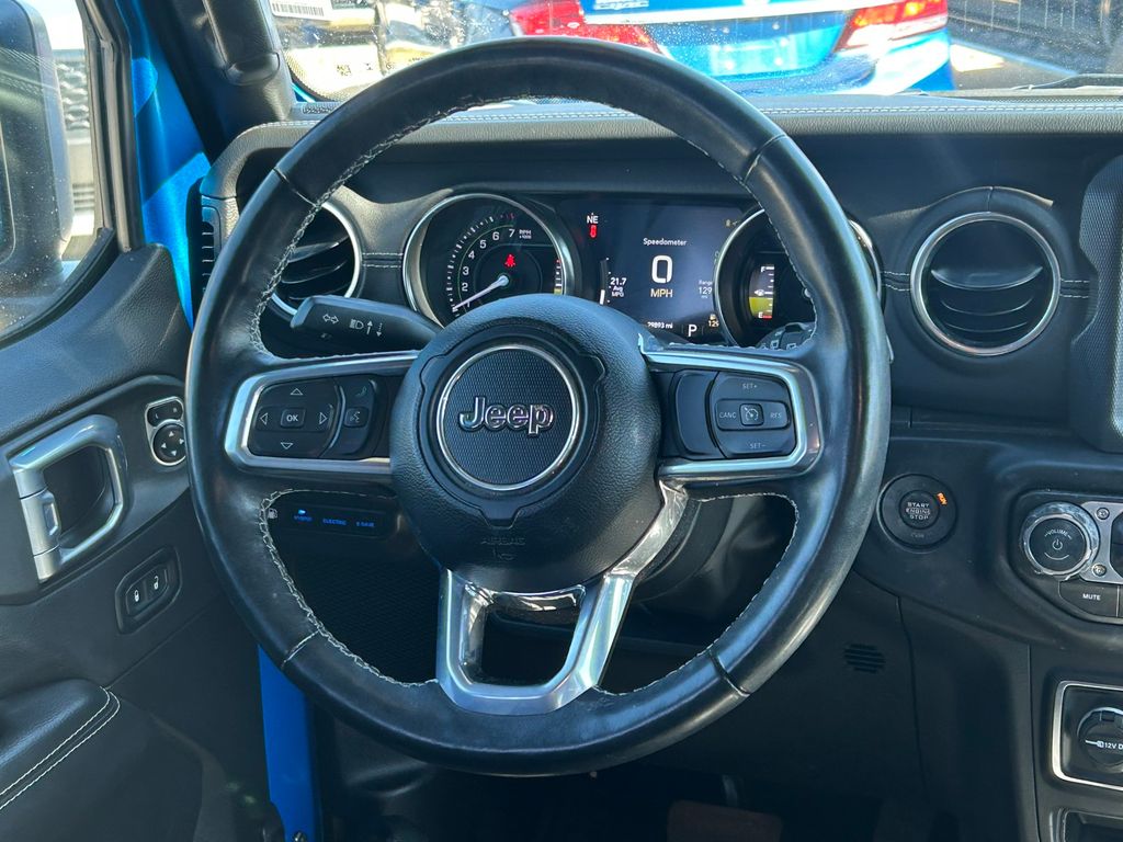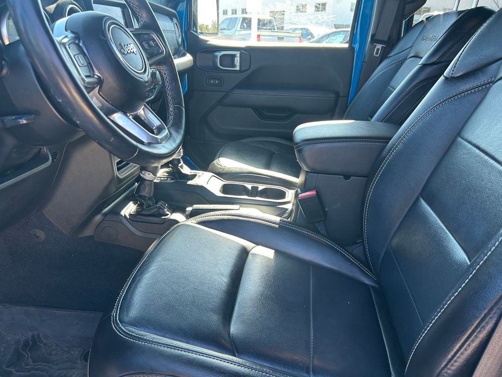 2.0L I4 DOHC, 3.73 Rear Axle Ratio, 4-Wheel Disc Brakes, 7 & 4 Pin Wiring Harness, 700 Amp Maintenance Free Battery, 9 Speakers, ABS brakes, Air Conditioning, Alloy wheels, AM/FM radio: SiriusXM, Apple CarPlay/Android Auto, Auto-dimming Rear-View mirror, Automatic temperature control, Auxiliary Switches, Blind Spot & Cross Path Detection, Brake assist, Class II Receiver Hitch, Cold Weather Group, Compass, Delay-off headlights, Driver door bin, Driver vanity mirror, Dual front impact airbags, Dual front side impact airbags, Electronic Stability Control, Emergency communication system: SiriusXM Guardian, Front anti-roll bar, Front Bucket Seats, Front Center Armrest w/Storage, Front dual zone A/C, Front fog lights, Front License Plate Bracket, Front reading lights, Fully automatic headlights, Garage door transmitter, Heated door mirrors, Heated Front Seats, Heated Steering Wheel, Illuminated entry, Integrated roll-over protection, Leather Shift Knob, Low tire pressure warning, MOPAR All-Weather Floor Mats, Navigation System, Occupant sensing airbag, Outside temperature display, Panic alarm, ParkSense Rear Park Assist System, ParkView Rear Back-Up Camera, Passenger door bin, Passenger vanity mirror, Power door mirrors, Power steering, Power windows, Premium McKinley Trimmed Seats, Quick Order Package 29P Sahara, Radio data system, Rear anti-roll bar, Rear reading lights, Rear seat center armrest, Remote keyless entry, Remote Start System, Safety Group, Security system, Side Steps, Speed control, Split folding rear seat, Sport Suspension, Steering wheel mounted audio controls, Tachometer, Telescoping steering wheel, Tilt steering wheel, Traction control, Trailer Tow & Aux Switch Group, Trip computer, Variably intermittent wipers, Voltmeter, Wheels: 20" x 8" Fully Painted Aluminum.