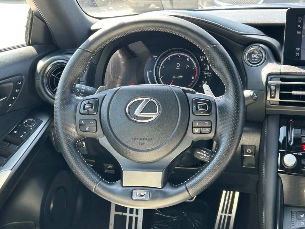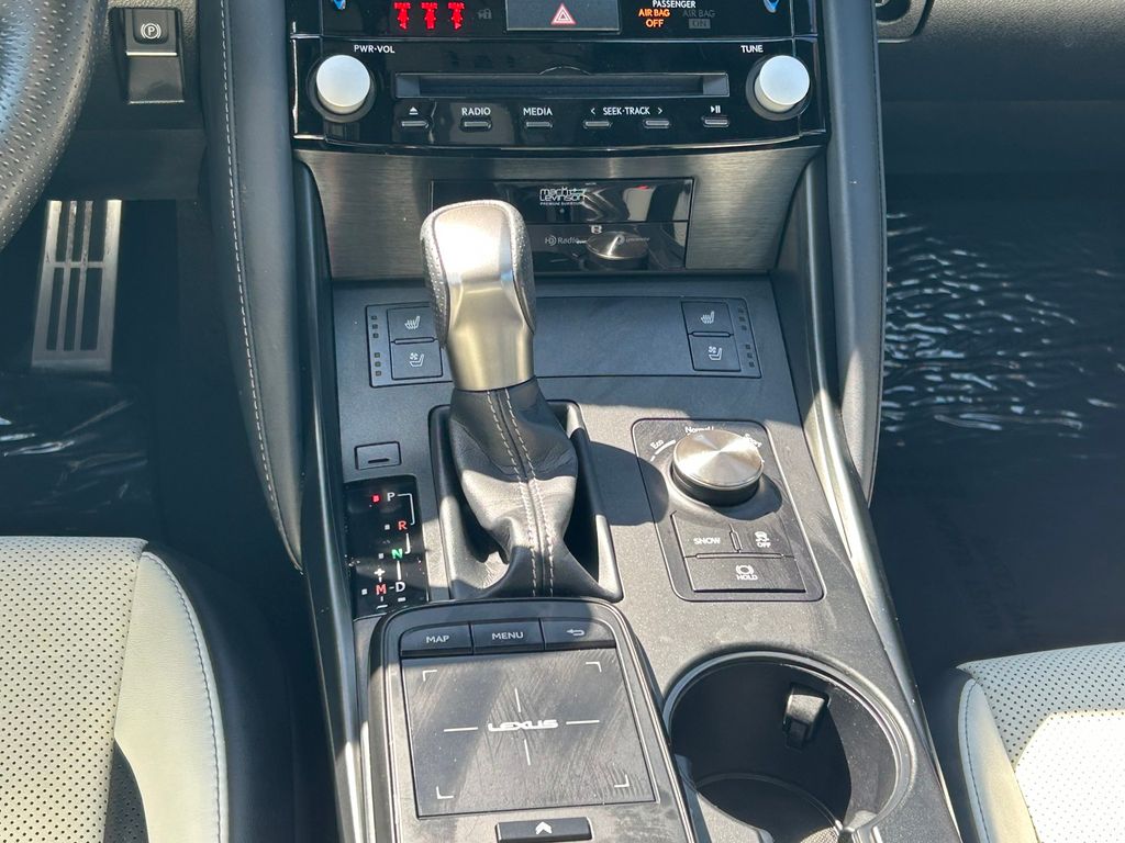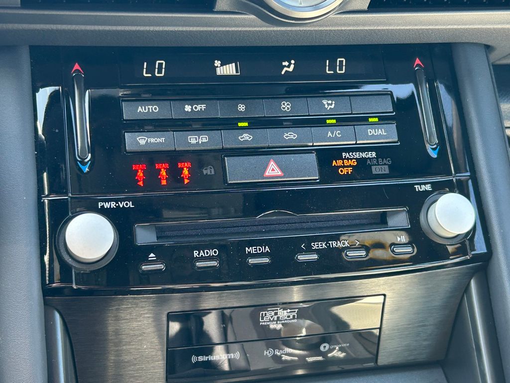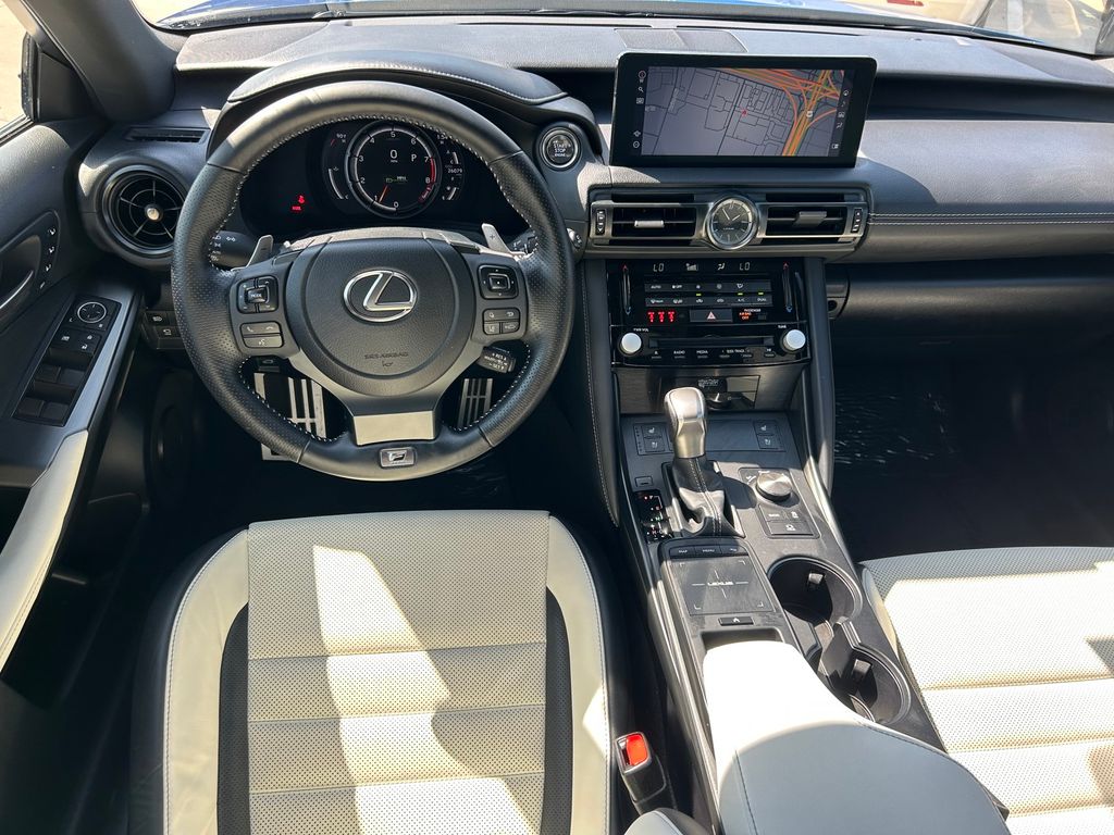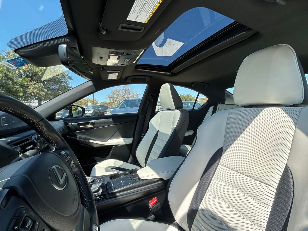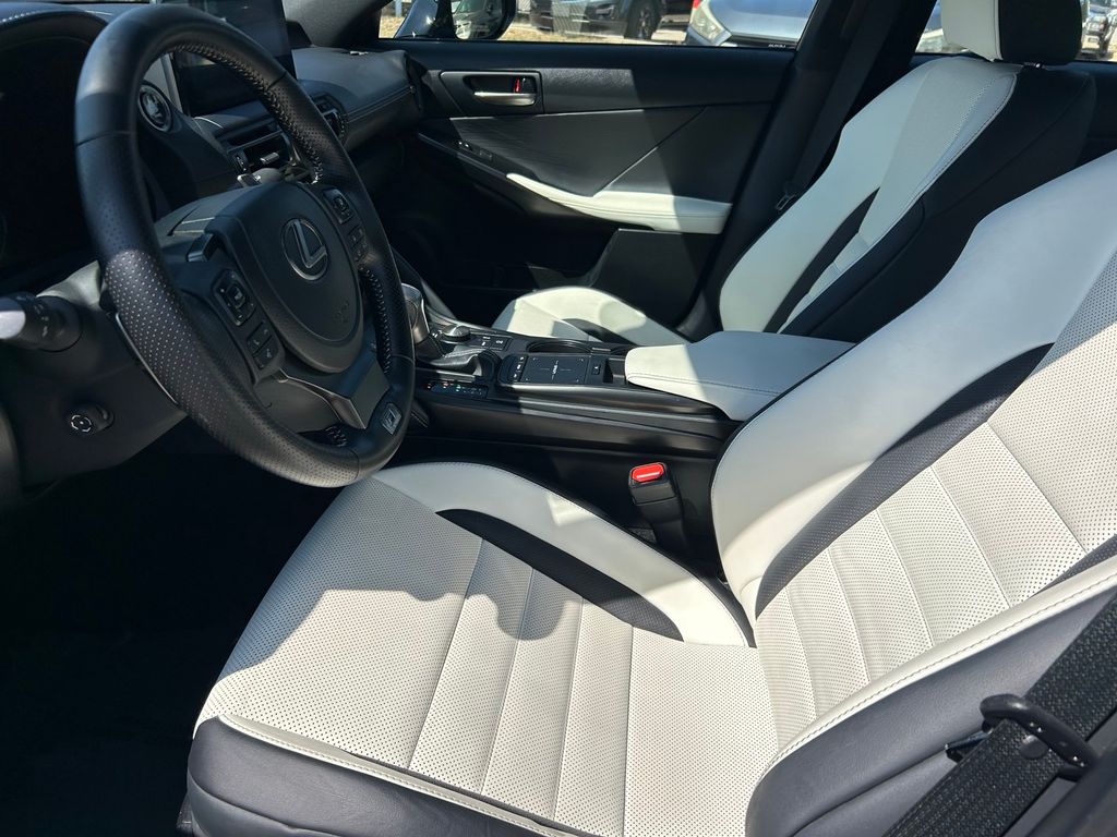 CARFAX One-Owner. Clean CARFAX. White W/Satin Chrome Trim Artificial Leather, 10.3" Monitor & Navigation System, 17 Speaker/DVD Audio, 17 Speakers, 4-Wheel Disc Brakes, ABS brakes, Adaptive suspension, Air Conditioning, Alloy wheels, AM/FM radio: SiriusXM, Apple CarPlay/Android Auto, Auto High-beam Headlights, Auto-dimming door mirrors, Auto-dimming Rear-View mirror, Automatic temperature control, Brake assist, Bumpers: body-color, Carpet Trunk Mat, CD player, Compass, Delay-off headlights, Driver door bin, Driver vanity mirror, Dual front impact airbags, Dual front side impact airbags, Electronic Stability Control, Emergency communication system: Safety Connect (3-year trial), Exterior Parking Camera Rear, F SPORT NuLuxe Seat Trim, Four wheel independent suspension, Front anti-roll bar, Front Bucket Seats, Front Center Armrest, Front dual zone A/C, Front fog lights, Front reading lights, Fully automatic headlights, Garage door transmitter: HomeLink, Heated & Ventilated F Sport Sport Seats, Heated door mirrors, Heated front seats, Heated steering wheel, Illuminated entry, IS500 Premium Package, Knee airbag, Leather Shift Knob, LED HI w/AHB Headlamp, Low tire pressure warning, Memory seat, Navigation system: Lexus Enform Dynamic Navigation, Occupant sensing airbag, Outside temperature display, Overhead airbag, Overhead console, Panic alarm, Passenger door bin, Passenger vanity mirror, Power door mirrors, Power driver seat, Power moonroof, Power passenger seat, Power Rear Sunshade, Power steering, Power windows, PVM Back Monitor, Radio data system, Radio: Mark Levinson Audio System, Rain sensing wipers, Rear anti-roll bar, Rear reading lights, Rear seat center armrest, Rear side impact airbag, Rear Window Blind, Rear window defroster, Remote keyless entry, Security system, Speed control, Speed-sensing steering, Speed-Sensitive Wipers, Split folding rear seat, Spoiler, Sport steering wheel, Steering wheel memory, Steering wheel mounted audio controls, Tachometer, Telescoping steering wheel, Tilt steering wheel, Traction control, Trip computer, Turn signal indicator mirrors, Variably intermittent wipers, Ventilated front seats, Wheel Bolt Locks, Wheels: 19" Matte Black BBS Forged, Wheels: 19" x 8.5J" Front & 19" x 9.5J" Rear.