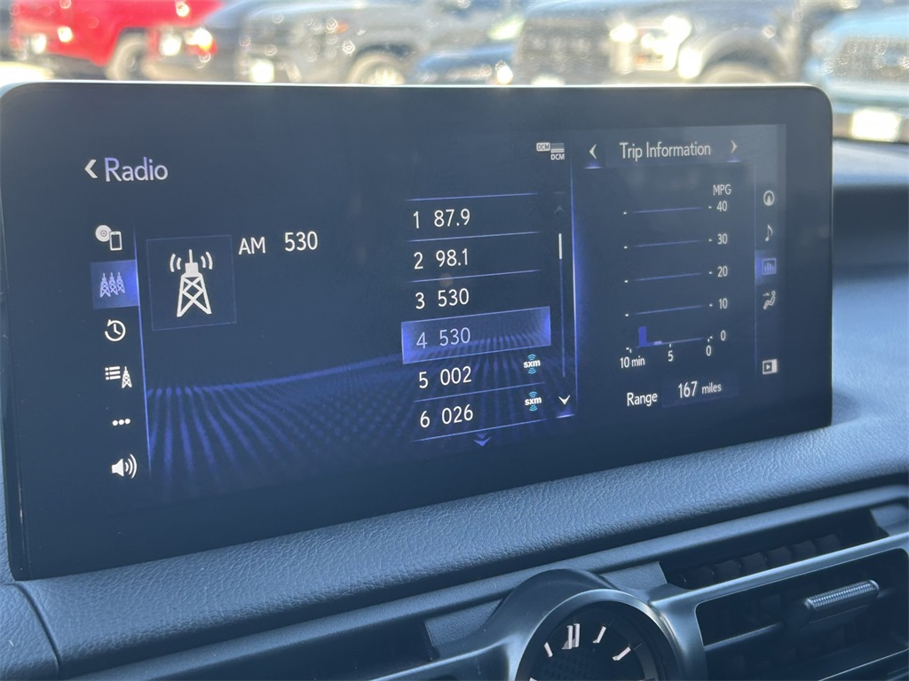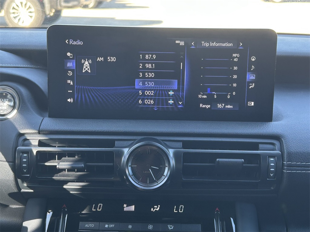 CARFAX One-Owner. Clean CARFAX. Black w/Perforated NuLuxe Seat Trim, 10 Speakers, 19" Wheels, 4-Wheel Disc Brakes, ABS brakes, Air Conditioning, Alloy wheels, AM/FM radio: SiriusXM, Apple CarPlay/Android Auto, Auto High-beam Headlights, Auto-dimming door mirrors, Automatic temperature control, Brake assist, Bumpers: body-color, Cargo Net, Carpet Trunk Mat, CD player, Compass, Delay-off headlights, Driver door bin, Driver vanity mirror, Dual front impact airbags, Dual front side impact airbags, Electronic Stability Control, Emergency communication system: Safety Connect (3-year trial), Exterior Parking Camera Rear, F SPORT Design Package, Four wheel independent suspension, Front anti-roll bar, Front Bucket Seats, Front Center Armrest, Front dual zone A/C, Front fog lights, Front reading lights, Fully automatic headlights, Heated & Ventilated F SPORT Seats, Heated door mirrors, Heated front seats, Illuminated entry, Interval Adjustment Windshield Wiper Control, Knee airbag, Leather Shift Knob, Leather Steering Wheel, Low tire pressure warning, Manual Inside Rear View Mirror, Manual Outside Mirrors, Moonroof, Navigation Package, Occupant sensing airbag, Outside temperature display, Overhead airbag, Overhead console, Panic alarm, Passenger door bin, Passenger vanity mirror, Perforated NuLuxe Seat Trim, Performance Exhaust, Power door mirrors, Power driver seat, Power passenger seat, Power steering, Power Windows, Power windows, Radio data system, Radio: Multimedia System w/8" Color Touchscreen, Rear anti-roll bar, Rear reading lights, Rear seat center armrest, Rear side impact airbag, Rear window defroster, Remote keyless entry, Remove Garage Door Opener, Seat Heater, Security system, Speed control, Speed-sensing steering, Speed-Sensitive Wipers, Split folding rear seat, Spoiler, Sport steering wheel, Steering wheel mounted audio controls, Tachometer, Telescoping steering wheel, Tilt steering wheel, Traction control, Trip computer, Turn signal indicator mirrors, Variably intermittent wipers, Ventilated front seats.
