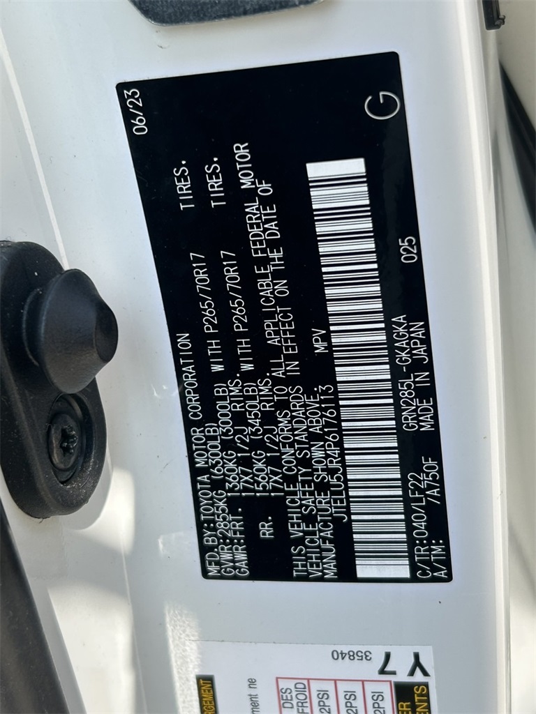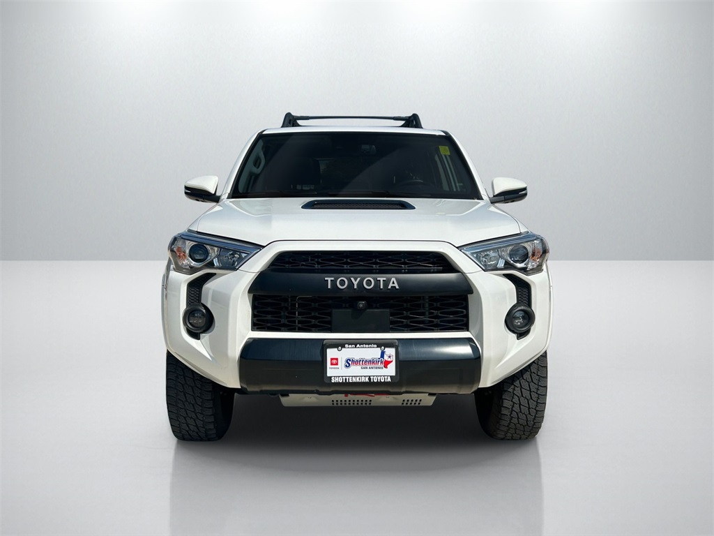 CARFAX One-Owner. Clean CARFAX. 4WD, Black/Graphite w/Leather Seat Trim, 15 Speakers, 3.727 Axle Ratio, 4-Wheel Disc Brakes, ABS brakes, Air Conditioning, Alloy wheels, AM/FM radio: SiriusXM, Anti-whiplash front head restraints, Apple CarPlay/Android Auto, Auto High-beam Headlights, Auto-dimming Rear-View mirror, Automatic temperature control, Black Lug Nuts, Blackout Emblem Overlays (PPO) (TMS), Brake assist, Bumpers: body-color, Cargo Cover (PPO) (TMS), Cargo Mat (PPO) (TMS), Compass, Dashcam (PPO) (TMS), Driver door bin, Driver vanity mirror, Dual front impact airbags, Dual front side impact airbags, Dual Power Ports/Quick Charge Cable Pkg (PPO) (TMS), Dual Zone Auto Climate Control, Electronic Stability Control, Emergency Assistance Kit (PPO) (TMS), Emergency communication system: Safety Connect (1-year trial), Fog Lights, Fox Shocks, Front anti-roll bar, Front Bucket Seats, Front Center Armrest, Front dual zone A/C, Front fog lights, Front reading lights, Front wheel independent suspension, Garage Door Opener, Garage door transmitter: HomeLink, Heated door mirrors, Heated Front Bucket Seats, Heated front seats, Heated Outside Rear-View Mirrors, Hitch Ball Mount (PPO) (TMS), Illuminated entry, Knee airbag, Leather Shift Knob, Low tire pressure warning, Moonroof w/Tilt Up & Slide, Multi-Terrain Back Monitor, Navigation System, Occupant sensing airbag, Outside temperature display, Overhead airbag, Overhead console, Paint Protection Film (PPO) (TMS), Panic alarm, Passenger door bin, Passenger vanity mirror, Power door mirrors, Power driver seat, Power moonroof, Power passenger seat, Power steering, Power windows, Radio: Premium Audio w/JBL, Rear anti-roll bar, Rear seat center armrest, Rear window defroster, Rear window wiper, Remote keyless entry, Roof rack, Roof Rack, Running Boards (PPO) (TMS), Security system, SofTex Seat Trim, Speed control, Speed-sensing steering, Split folding rear seat, Spoiler, Steering wheel mounted audio controls, Tachometer, Telescoping steering wheel, Tilt steering wheel, Traction control, TRD Pro All Weather Floor Liner, TRD Pro Badging, TRD PRO Carpet Floor Mats (PPO) (TMS), TRD Pro Exhaust, TRD Pro Package, TRD Shift Knob, Trip computer, Variably intermittent wipers, Wheel Locks, Wheels: 17" Matte Black Flow-Formed TRD Alloy.