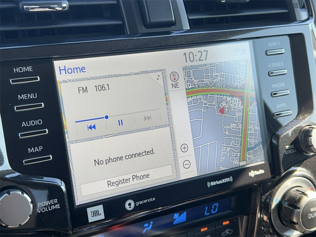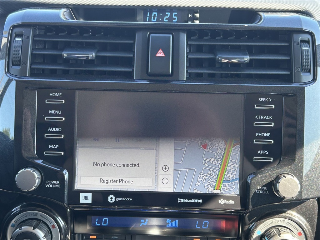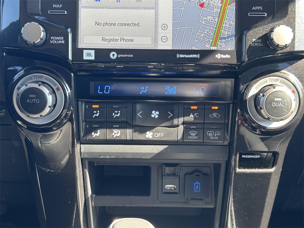 CARFAX One-Owner. Clean CARFAX. 4WD, Graphite Artificial Leather, 15 Speakers, 3.727 Axle Ratio, 4-Wheel Disc Brakes, ABS brakes, Air Conditioning, Alloy wheels, AM/FM radio: SiriusXM, Anti-whiplash front head restraints, Apple CarPlay/Android Auto, Auto High-beam Headlights, Auto-dimming Rear-View mirror, Automatic temperature control, Black Lug Nuts, Brake assist, Bumpers: body-color, Compass, Driver door bin, Driver vanity mirror, Dual front impact airbags, Dual front side impact airbags, Dual Power Ports/Quick Charge Cable Pkg (PPO) (TMS), Dual Zone Auto Climate Control, Electronic Stability Control, Emergency communication system: Safety Connect (1-year trial), Fog Lights, Fox Shocks, Front anti-roll bar, Front Bucket Seats, Front Center Armrest, Front dual zone A/C, Front fog lights, Front reading lights, Front wheel independent suspension, Garage Door Opener, Garage door transmitter: HomeLink, Heated door mirrors, Heated Front Bucket Seats, Heated front seats, Heated Outside Rear-View Mirrors, Illuminated entry, Knee airbag, Leather Shift Knob, Low tire pressure warning, Moonroof w/Tilt Up & Slide, Multi-Terrain Back Monitor, Navigation System, Occupant sensing airbag, Outside temperature display, Overhead airbag, Overhead console, Paint Protection Film (PPO) (TMS), Panic alarm, Passenger door bin, Passenger vanity mirror, Power door mirrors, Power driver seat, Power moonroof, Power passenger seat, Power steering, Power windows, Radio: Premium Audio w/JBL, Rear anti-roll bar, Rear seat center armrest, Rear window defroster, Rear window wiper, Remote keyless entry, Roof rack, Roof Rack, Security system, SofTex Seat Trim, Speed control, Speed-sensing steering, Split folding rear seat, Spoiler, Steering wheel mounted audio controls, Tachometer, Telescoping steering wheel, Tilt steering wheel, Traction control, Trail Running Boards (PPO) (TMS), TRD Pro All Weather Floor Liner, TRD Pro Badging, TRD Pro Exhaust, TRD Pro Package, TRD Shift Knob, Trip computer, Variably intermittent wipers, Wheel Locks, Wheels: 17" Matte Black Flow-Formed TRD Alloy.