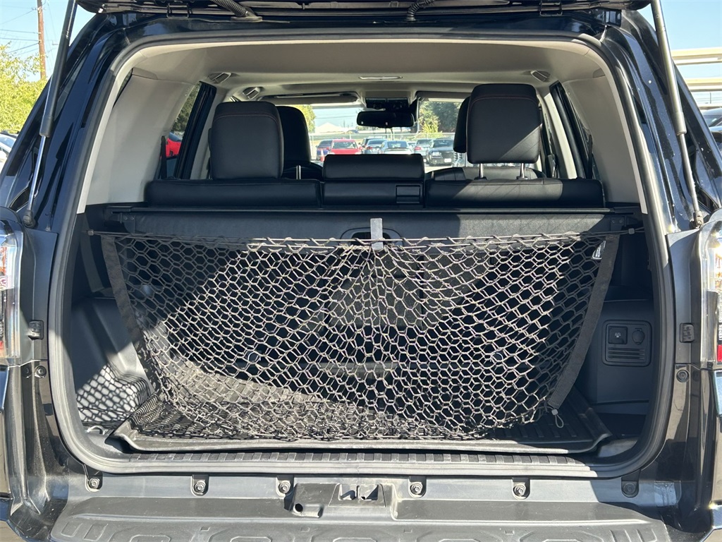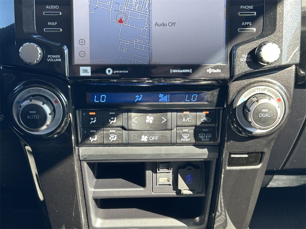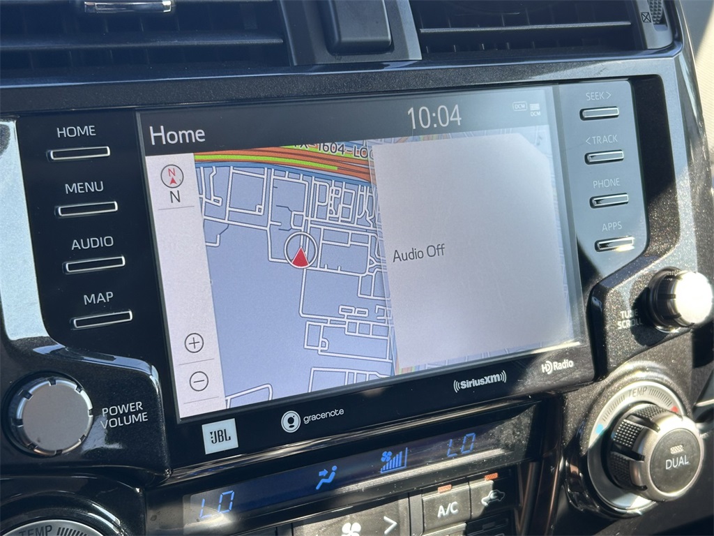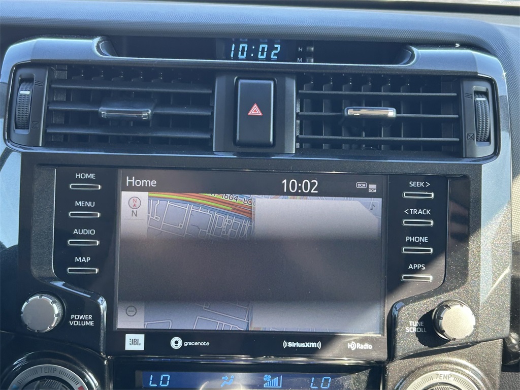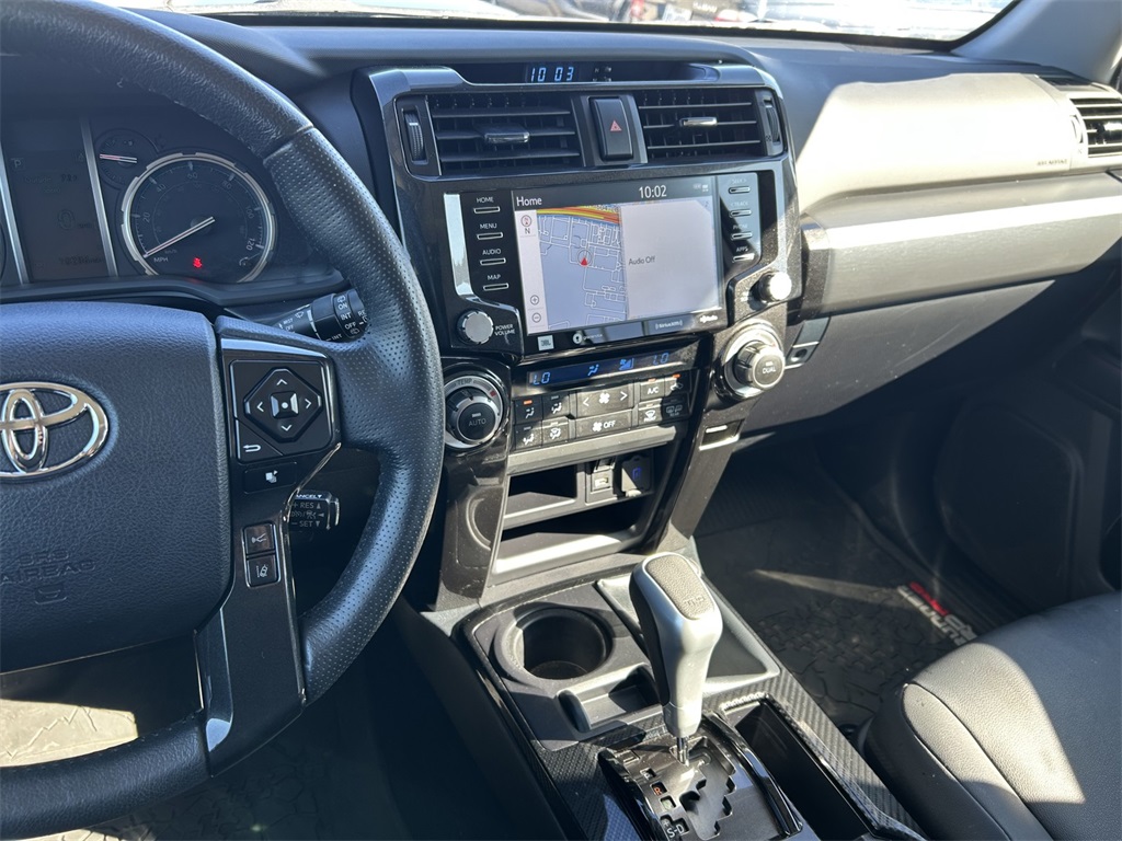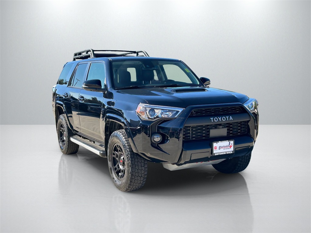 CARFAX One-Owner. Clean CARFAX. 4WD, Black/Graphite w/SofTex Seat Trim, 15 Speakers, 3.727 Axle Ratio, 4-Wheel Disc Brakes, ABS brakes, Air Conditioning, Alloy wheels, AM/FM radio: SiriusXM, Anti-whiplash front head restraints, Apple CarPlay/Android Auto, Auto High-beam Headlights, Auto-dimming Rear-View mirror, Automatic temperature control, Black Lug Nuts, Blackout Emblem Overlays (PPO) (TMS), Brake assist, Bumpers: body-color, Cargo Cover (PPO) (TMS), Cargo Mat (PPO) (TMS), Cargo Tray (PPO) (TMS), Compass, Door Edge Guards (PPO) (TMS), Driver door bin, Driver vanity mirror, Dual front impact airbags, Dual front side impact airbags, Dual Power Ports/Quick Charge Cable Pkg (PPO) (TMS), Dual Zone Auto Climate Control, Electronic Stability Control, Emergency Assistance Kit (PPO) (TMS), Emergency communication system: Safety Connect (1-year trial), Fog Lights, Fox Shocks, Front anti-roll bar, Front Bucket Seats, Front Center Armrest, Front dual zone A/C, Front fog lights, Front reading lights, Front wheel independent suspension, Garage Door Opener, Garage door transmitter: HomeLink, Heated door mirrors, Heated Front Bucket Seats, Heated front seats, Heated Outside Rear-View Mirrors, Illuminated entry, Knee airbag, Leather Shift Knob, Low tire pressure warning, Moonroof w/Tilt Up & Slide, Multi-Terrain Back Monitor, Navigation System, Occupant sensing airbag, Outside temperature display, Overhead airbag, Overhead console, Paint Protection Film (PPO) (TMS), Panic alarm, Passenger door bin, Passenger vanity mirror, Power door mirrors, Power driver seat, Power moonroof, Power passenger seat, Power steering, Power windows, Radio: Premium Audio w/JBL, Rear anti-roll bar, Rear seat center armrest, Rear window defroster, Rear window wiper, Remote keyless entry, Roof rack, Roof Rack, Running Boards (PPO) (TMS), Security system, SofTex Seat Trim, Speed control, Speed-sensing steering, Split folding rear seat, Spoiler, Steering wheel mounted audio controls, Tachometer, Telescoping steering wheel, Tilt steering wheel, Traction control, TRD Pro All Weather Floor Liner, TRD Pro Badging, TRD PRO Carpet Floor Mats (PPO) (TMS), TRD Pro Exhaust, TRD Pro Package, TRD Shift Knob, Trip computer, Variably intermittent wipers, Wheel Locks, Wheels: 17" Matte Black Flow-Formed TRD Alloy.