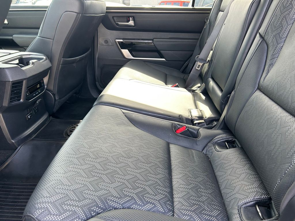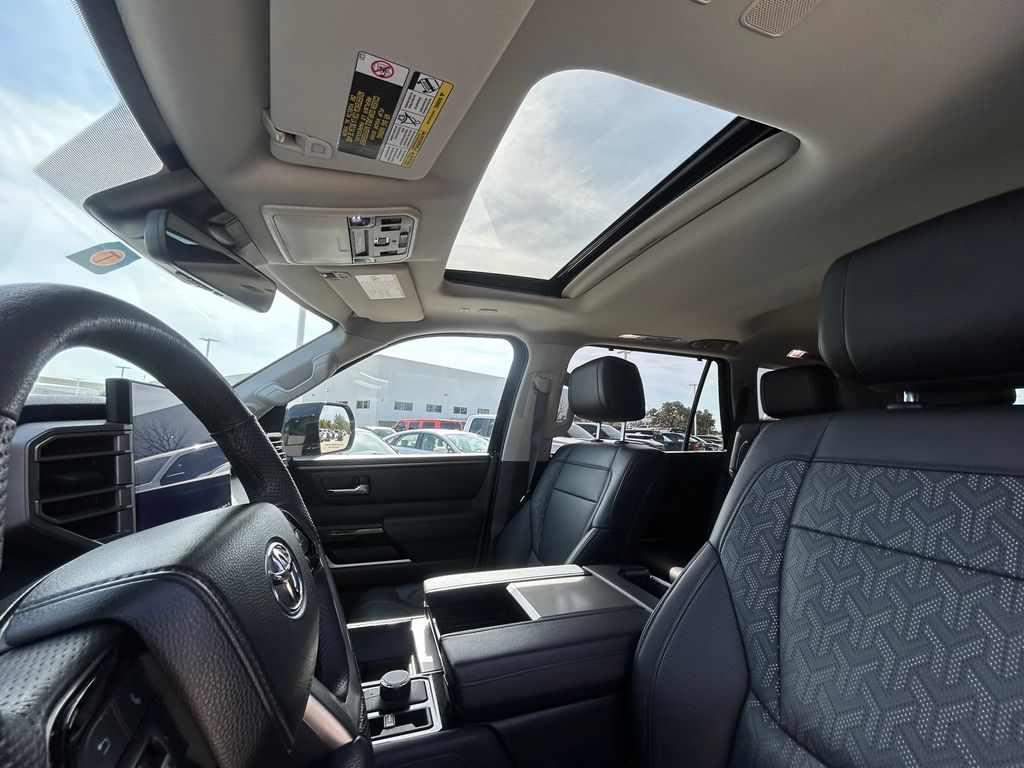 CARFAX One-Owner. Clean CARFAX. V6 Hybrid, 10-Speed Automatic, 4WD, 3rd row seats: split-bench, 4-Wheel Disc Brakes, 8 Speakers, ABS brakes, Air Conditioning, All-Weather Liners/Cargo Mat (TMS), Alloy wheels, AM/FM radio: SiriusXM, Anti-whiplash front head restraints, Apple CarPlay/Android Auto, Auto High-beam Headlights, Auto-dimming door mirrors, Auto-dimming Rear-View mirror, Automatic temperature control, Black Badge Overlays (TMS), Brake assist, Bumpers: body-color, Delay-off headlights, Driver door bin, Driver vanity mirror, Dual front impact airbags, Dual front side impact airbags, Electronic Stability Control, Emergency communication system: Safety Connect (10-year trial), Front anti-roll bar, Front Bucket Seats, Front Center Armrest w/Storage, Front dual zone A/C, Front fog lights, Front reading lights, Front wheel independent suspension, Fully automatic headlights, Garage door transmitter: HomeLink, Headlight cleaning, Heated & Ventilated Front Seats, Heated door mirrors, Heated front seats, Heated steering wheel, Illuminated entry, JBL 14 Speakers, Knee airbag, Leather Shift Knob, Leather steering wheel, Low tire pressure warning, Memory seat, Navigation system: Drive Connect (1 year trial) includes Cloud Navigation with real time traffic and Google POI, Occupant sensing airbag, Outside temperature display, Overhead airbag, Overhead console, Panic alarm, Passenger door bin, Passenger vanity mirror, Power door mirrors, Power driver seat, Power Liftgate, Power moonroof, Power passenger seat, Power steering, Power windows, Premium Auto-Leveling LED Headlights, Radio: Toyota Multimedia w/14" Display, Rear air conditioning, Rear reading lights, Rear seat center armrest, Rear window defroster, Rear window wiper, Reclining 3rd row seat, Remote keyless entry, Security system, SofTex Seat Trim, Speed control, Speed-sensing steering, Split folding rear seat, Spoiler, Steering wheel mounted audio controls, Tachometer, Telescoping steering wheel, Tilt steering wheel, Tow Technology Package, Traction control, Trip computer, Turn signal indicator mirrors, Variably intermittent wipers, Ventilated front seats, Voltmeter, Wheels: 20" Machined-Finish Alloy, Wireless Smartphone Charger.