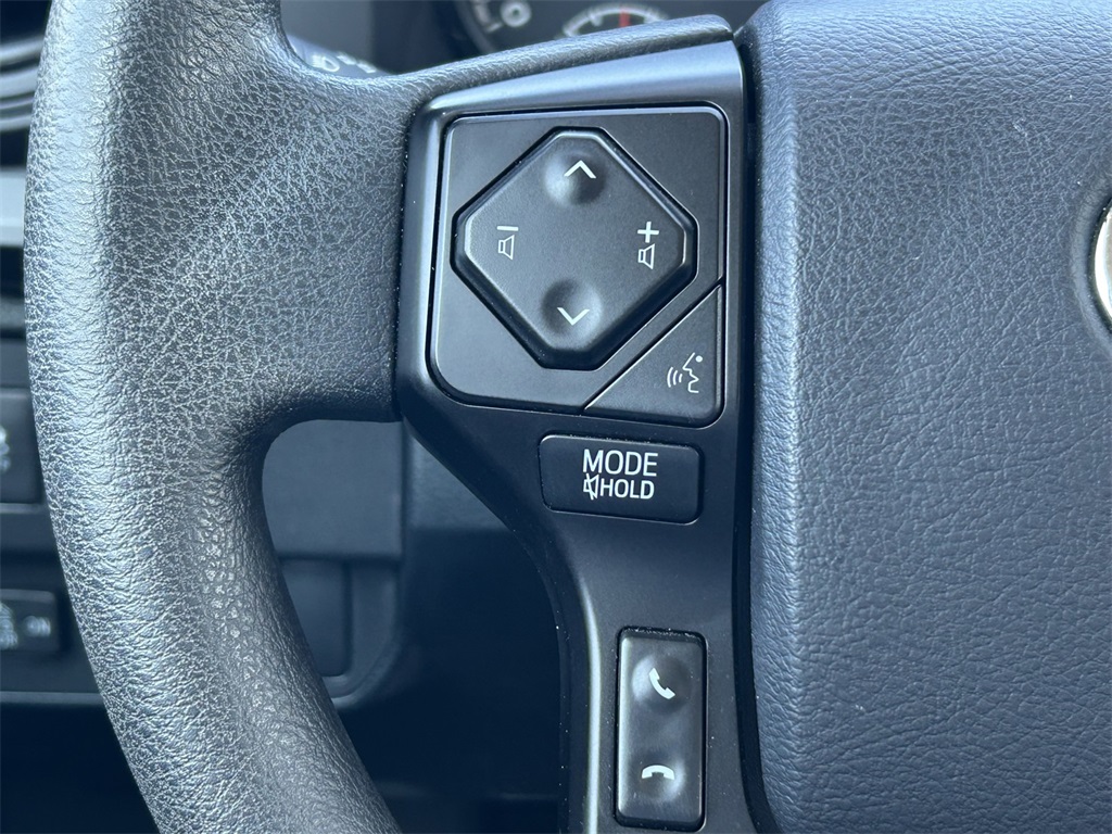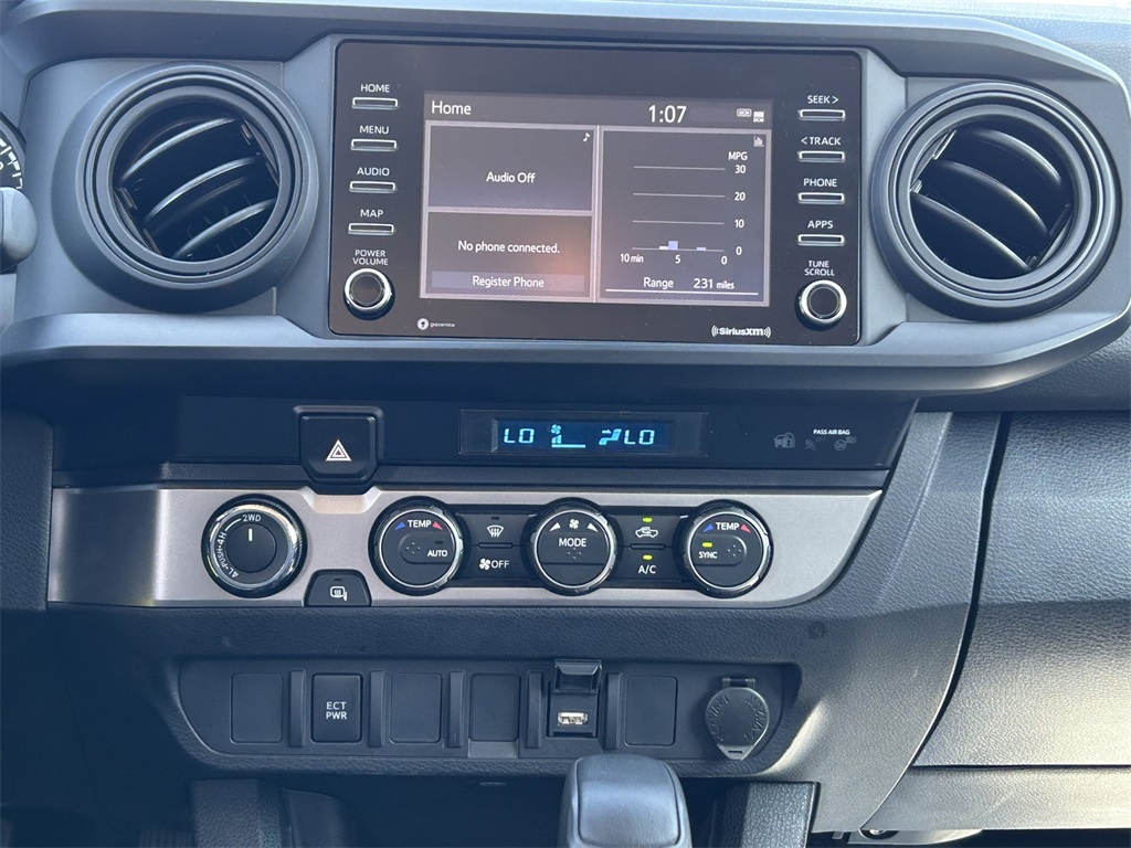 CARFAX One-Owner. Clean CARFAX. 4WD, Black, 16" Styled Steel Wheels, 5" Black Oval Tube Steps (TMS), 6 Speakers, ABS brakes, Air Conditioning, All Weather Floor Liner & Door Sill Protector (TMS), AM/FM radio: SiriusXM, Anti-whiplash front head restraints, Apple CarPlay/Android Auto, Auto High-beam Headlights, Automatic temperature control, Axle Ratio: 3.91, Bed Light (TMS), Bed Mat (TMS), Bed Step (TMS), Black Chrome Exhaust System (TMS), Brake assist, Bumpers: body-color, Cargo Net (TMS), Console Safe (TMS), D-Rings (TMS), Deck Rail Camera Mount (TMS), Door Edge Guard (TMS), Driver door bin, Dual front impact airbags, Dual front side impact airbags, Electronic Stability Control, Emergency Assistance Kit (TMS), Emergency communication system: Safety Connect (1-year trial), Exterior Parking Camera Rear, Fabric Seat Trim, Front anti-roll bar, Front Bucket Seats, Front Center Armrest, Front dual zone A/C, Front reading lights, Front Seats, Front wheel independent suspension, Heated door mirrors, Illuminated entry, Knee airbag, Low tire pressure warning, Occupant sensing airbag, Outside temperature display, Overhead airbag, Overhead console, Passenger door bin, Power door mirrors, Power steering, Power windows, Quick Charge Cable (PPO) (TMS), Radio: Audio, Rear step bumper, Speed control, Speed-sensing steering, Split folding rear seat, Steering wheel mounted audio controls, Tachometer, Telescoping steering wheel, Tilt steering wheel, Tonneau Cover, Traction control, TRD Air Filter (TMS), TRD Shift Knob (TMS), Universal Tablet Holder (TMS), Variably intermittent wipers.