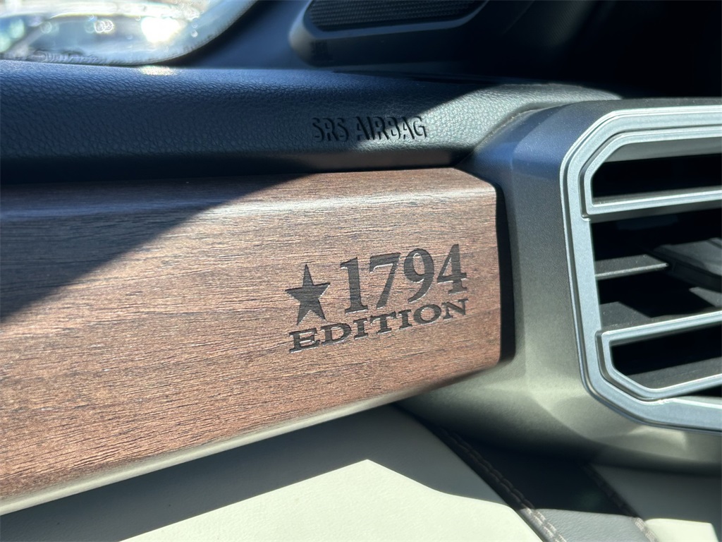 CARFAX One-Owner. Rich Cream Leather, 12 JBL Speakers, 12 Speakers, 1794 Grade Package, 3.31 Axle Ratio, 4-Wheel Disc Brakes, ABS brakes, Air Conditioning, Alloy wheels, AM/FM Radio, AM/FM radio: SiriusXM, Apple CarPlay/Android Auto, Auto High-beam Headlights, Auto-dimming door mirrors, Auto-dimming Rear-View mirror, Automatic temperature control, Blind Spot Monitor, Brake assist, Bumpers: body-color, Chrome Exhaust Tail Pipe & Diffuser, Chrome Plated Power Folding Outside Mirrors, Delay-off headlights, Driver door bin, Driver vanity mirror, Dual front impact airbags, Dual front side impact airbags, Electronic Stability Control, Emergency communication system: Safety Connect (10-year trial), Front anti-roll bar, Front Bucket Seats, Front Center Armrest, Front dual zone A/C, Front fog lights, Front reading lights, Front wheel independent suspension, Fully automatic headlights, Garage door transmitter: HomeLink, Heated & Ventilated Front Bucket Seats, Heated door mirrors, Heated front seats, Heated rear seats, Heated steering wheel, Illuminated entry, Knee airbag, Leather Seat Trim, Leather Shift Knob, Low tire pressure warning, Memory seat, Multi-Terrain Back Monitor, Navigation System, Occupant sensing airbag, Outside temperature display, Overhead airbag, Overhead console, Panic alarm, Panoramic View Back Monitor, Passenger door bin, Passenger vanity mirror, Power door mirrors, Power driver seat, Power moonroof, Power passenger seat, Power Running Boards, Power steering, Power windows, Radio data system, Rain sensing wipers, Rear reading lights, Rear seat center armrest, Rear step bumper, Rear window defroster, Remote keyless entry, Security system, Speed control, Speed-sensing steering, Split folding rear seat, Steering wheel memory, Steering wheel mounted audio controls, Tachometer, Telescoping steering wheel, Tilt steering wheel, Traction control, Trip computer, Turn signal indicator mirrors, Variably intermittent wipers, Ventilated front seats, Ventilated rear seats, Voltmeter, Wheels: 20" x 8" Machined-Finish Alloy.