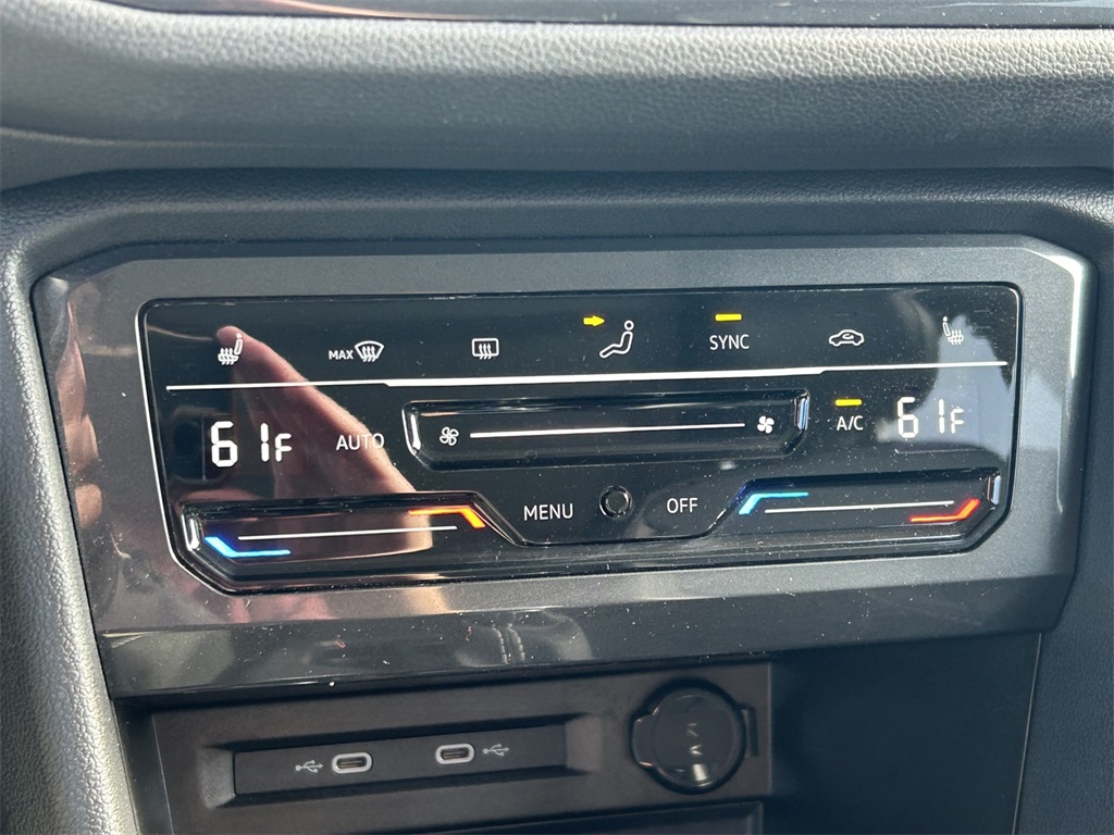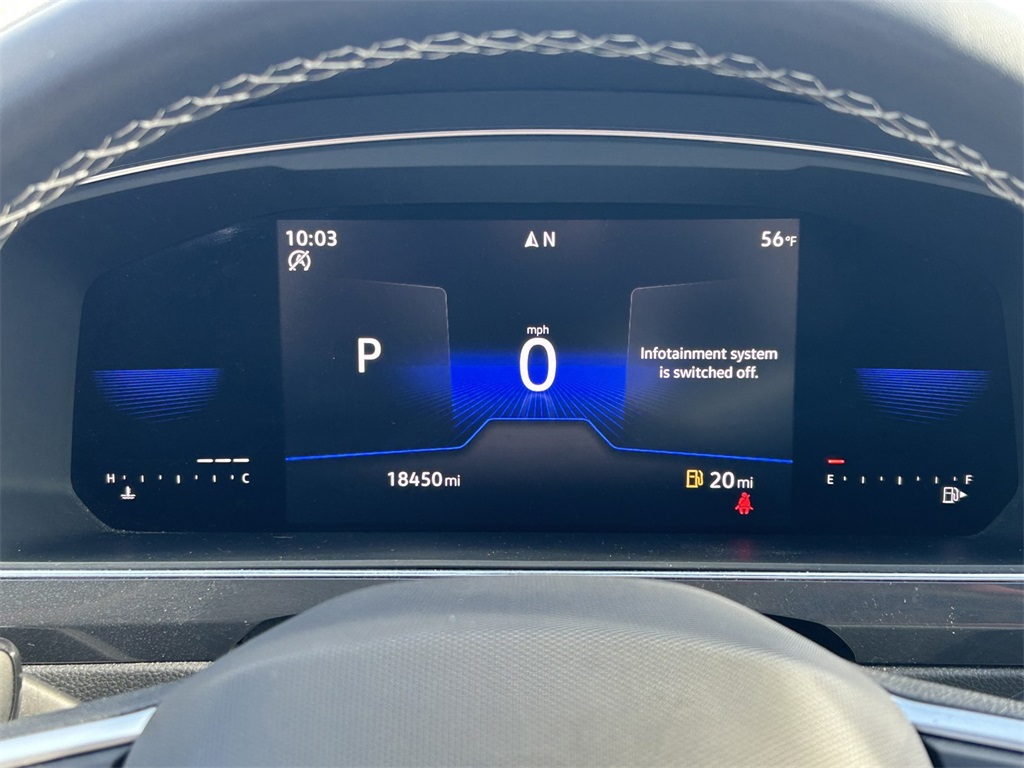 Clean CARFAX. 3.33 Axle Ratio, 3rd row seats: bench, 4-Wheel Disc Brakes, 4-Wheel Independent Suspension, 6 Speakers, ABS brakes, Air Conditioning, Alloy wheels, AM/FM radio: SiriusXM with 360L, Auto-dimming Rear-View mirror, Automatic temperature control, Brake assist, Bumpers: body-color, Compass, Delay-off headlights, Driver door bin, Driver vanity mirror, Dual front impact airbags, Dual front side impact airbags, Electronic Stability Control, Emergency communication system: VW Car-Net Safe & Secure 5-year, Exterior Parking Camera Rear, Four wheel independent suspension, Front anti-roll bar, Front Bucket Seats, Front Center Armrest, Front dual zone A/C, Front reading lights, Fully automatic headlights, Heated door mirrors, Heated Front Comfort Seats, Heated front seats, Illuminated entry, Leather Shift Knob, Low tire pressure warning, Occupant sensing airbag, Outside temperature display, Overhead airbag, Overhead console, Panic alarm, Passenger door bin, Passenger vanity mirror, Perforated V-Tex Leatherette Seating Surfaces, Power door mirrors, Power driver seat, Power Liftgate, Power steering, Power windows, Radio data system, Radio: MIB3 Composition Media AM/FM/HD, Rain sensing wipers, Rear anti-roll bar, Rear reading lights, Rear seat center armrest, Rear window defroster, Rear window wiper, Remote keyless entry, Security system, Speed control, Speed-sensing steering, Split folding rear seat, Spoiler, Steering wheel mounted audio controls, Tachometer, Telescoping steering wheel, Tilt steering wheel, Traction control, Trip computer, Turn signal indicator mirrors, Variably intermittent wipers, Wheels: 18" Dark Graphite Painted 10-Spoke Alloy.