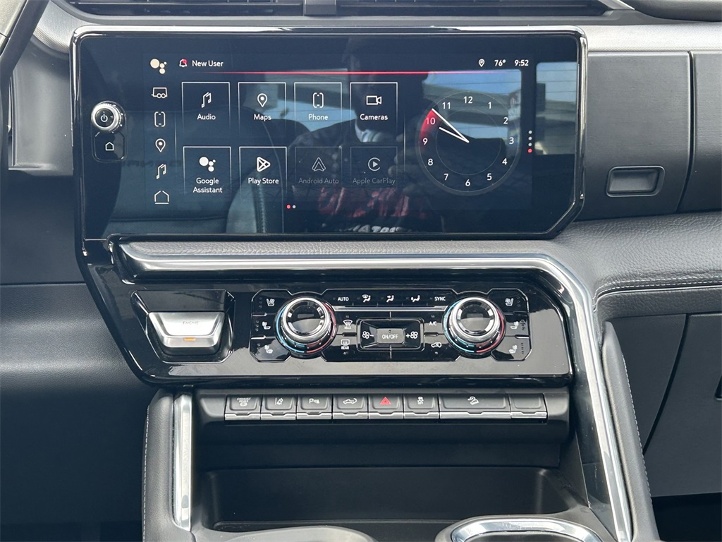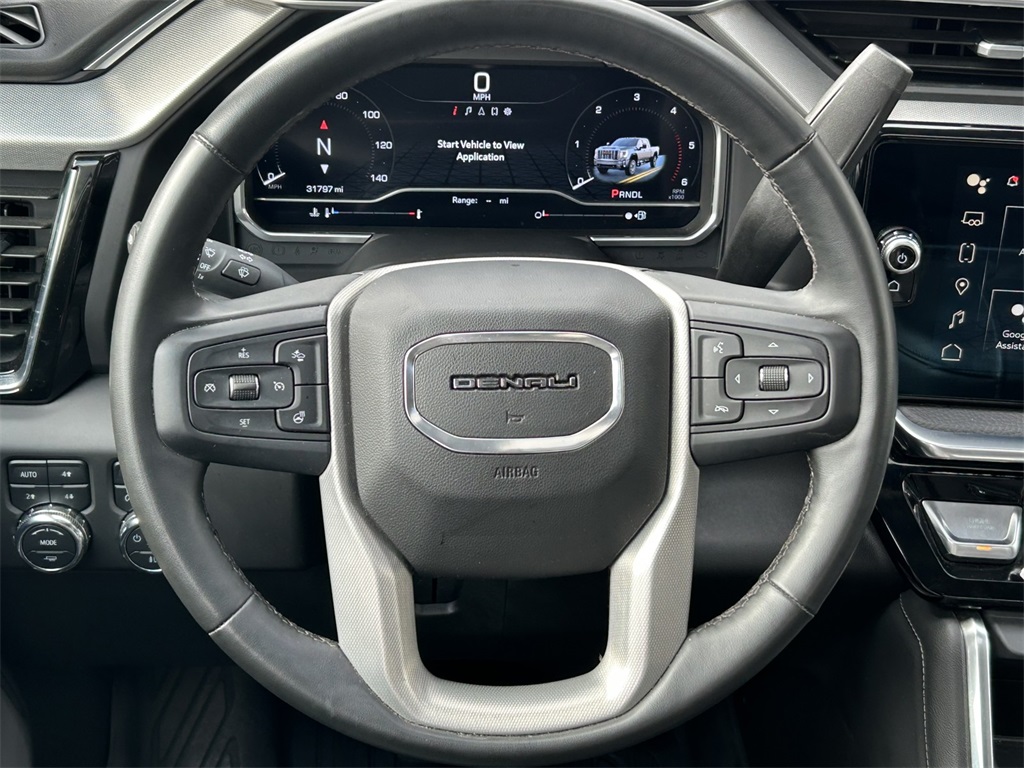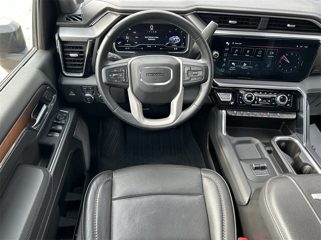 Clean CARFAX. 10-Speed Automatic, 4WD, Jet Black w/Cloth Seat Trim, 12-Way Power Driver Seat Adjuster w/Lumbar, 12-Way Power Passenger Seat Adjuster w/Lumbar, 120-Volt Bed Mounted Power Outlet, 120-Volt Instrument Panel Power Outlet, 2 Charge-Only Rear USB Ports, 2 Charge/Data USB Ports Inside Center Console, 2 USB Ports, 2-Speed Active Transfer Case, 3.73 Rear Axle Ratio, 4-Wheel Disc Brakes, 7 Speakers, ABS brakes, Air Conditioning, Alloy wheels, AM/FM radio: SiriusXM with 360L, Apple CarPlay/Android Auto, Auto High-beam Headlights, Auto-dimming door mirrors, Auto-dimming Rear-View mirror, Automatic Emergency Braking, Automatic temperature control, Bed View Camera w/2 Trailer Camera Provisions, Bose Premium 7-Speaker Sound System, Brake assist, Buckle to Drive, Bumpers: body-color, Compass, Deep-Tinted Glass, Delay-off headlights, Driver door bin, Driver Memory, Driver vanity mirror, Dual front impact airbags, Dual front side impact airbags, Electric Rear-Window Defogger, Electronic Stability Control, Emergency communication system: OnStar and GMC connected services capable, Floor-Mounted Center Console, Following Distance Indicator, Forge Perforated Leather-Appointed Seat Trim, Forward Collision Alert, Front anti-roll bar, Front Bucket Seats, Front Center Armrest, Front dual zone A/C, Front fog lights, Front Pedestrian Braking, Front Rain-Sensing Wipers, Front reading lights, Front wheel independent suspension, Fully automatic headlights, Garage door transmitter, Genuine wood dashboard insert, Genuine wood door panel insert, GMC Premium 13.4" Diagonal Information Display, HD Surround Vision, Heated 2nd Row Outboard Seats, Heated door mirrors, Heated Driver & Front Outboard Passenger Seats, Heated front seats, Heated rear seats, Heated steering wheel, Heavy-Duty 80 Amp-Hr Battery, Hitch Guidance w/Hitch View, Illuminated entry, Integrated Trailer Brake Controller, IntelliBeam Automatic High Beam On/Off, Keyless Open & Start, Lane Departure Warning System, LED Cargo Area Lighting, LED Smoked Amber Roof Marker Lamps, Low tire pressure warning, Manual Tilt-Wheel/Telescoping Steering Column, Memory seat, Occupant sensing airbag, Outside temperature display, Overhead airbag, Overhead console, Panic alarm, Passenger door bin, Passenger vanity mirror, Pickup Bed, Polished Exhaust Tip, Power door mirrors, Power driver seat, Power Front Windows w/Passenger Express Up/Down, Power passenger seat, Power Sliding Rear Window w/Defogger, Power steering, Power windows, Premium audio system: Premium GMC Infotainment System, Push Button Start, Radio: AM/FM w/Premium GMC Infotainment System, Rain sensing wipers, Rear Cross Traffic Alert, Rear reading lights, Rear seat center armrest, Rear step bumper, Rear window defroster, Remote keyless entry, Remote Vehicle Starter System, Safety Alert Seat, Security system, Signature Chrome Denali Grille, SiriusXM w/360L, Speed control, Speed-sensing steering, Split folding rear seat, Spray-On Pickup Bedliner w/Denali Logo, Steering Wheel Audio Controls, Steering wheel mounted audio controls, Tachometer, Telescoping steering wheel, Tilt steering wheel, Traction control, Trailer Camera Provisions, Trailer Side Blind Zone Alert, Trip computer, Turn signal indicator mirrors, Ultrasonic Front & Rear Park Assist, Unauthorized Entry Theft-Deterrent System, Universal Home Remote, Variably intermittent wipers, Ventilated Driver & Front Passenger Seats, Ventilated front seats, Voltmeter, Wireless Charging, Wireless Phone Projection.