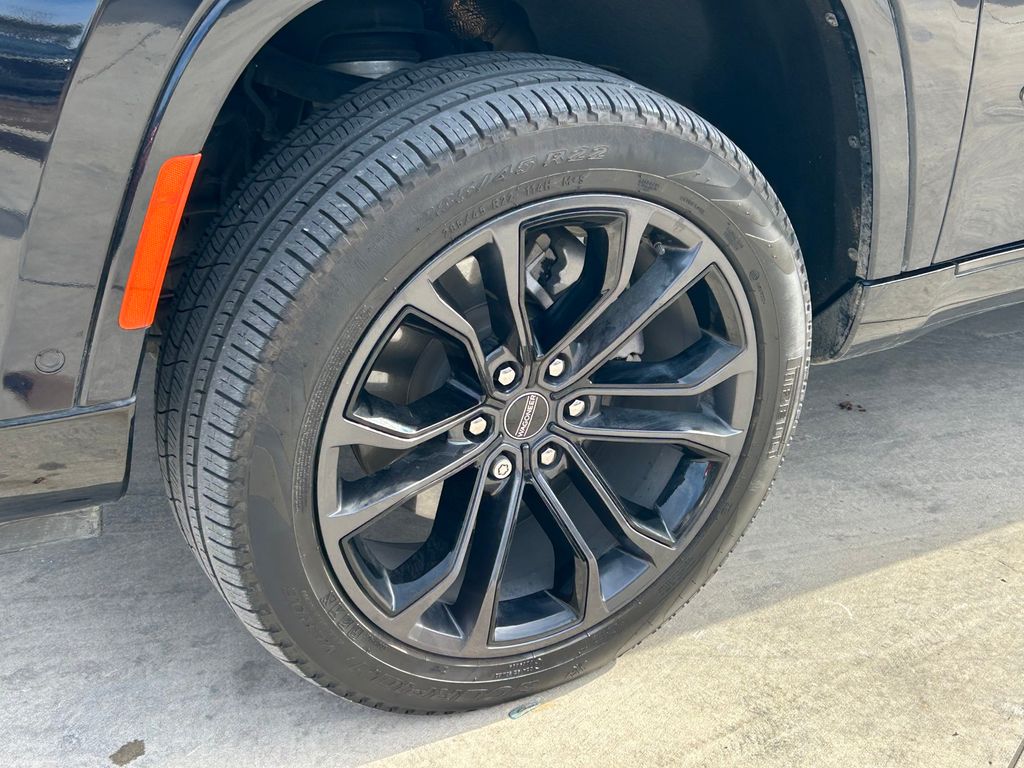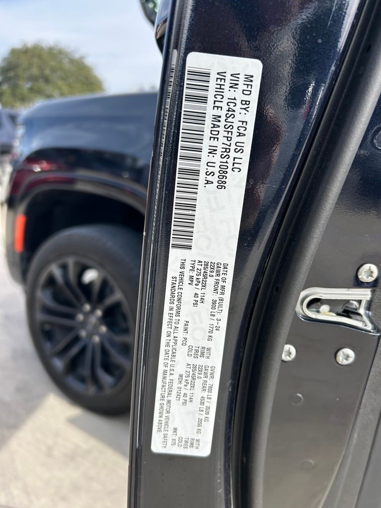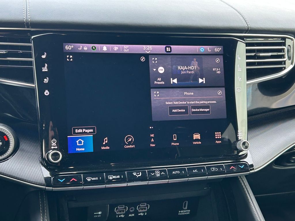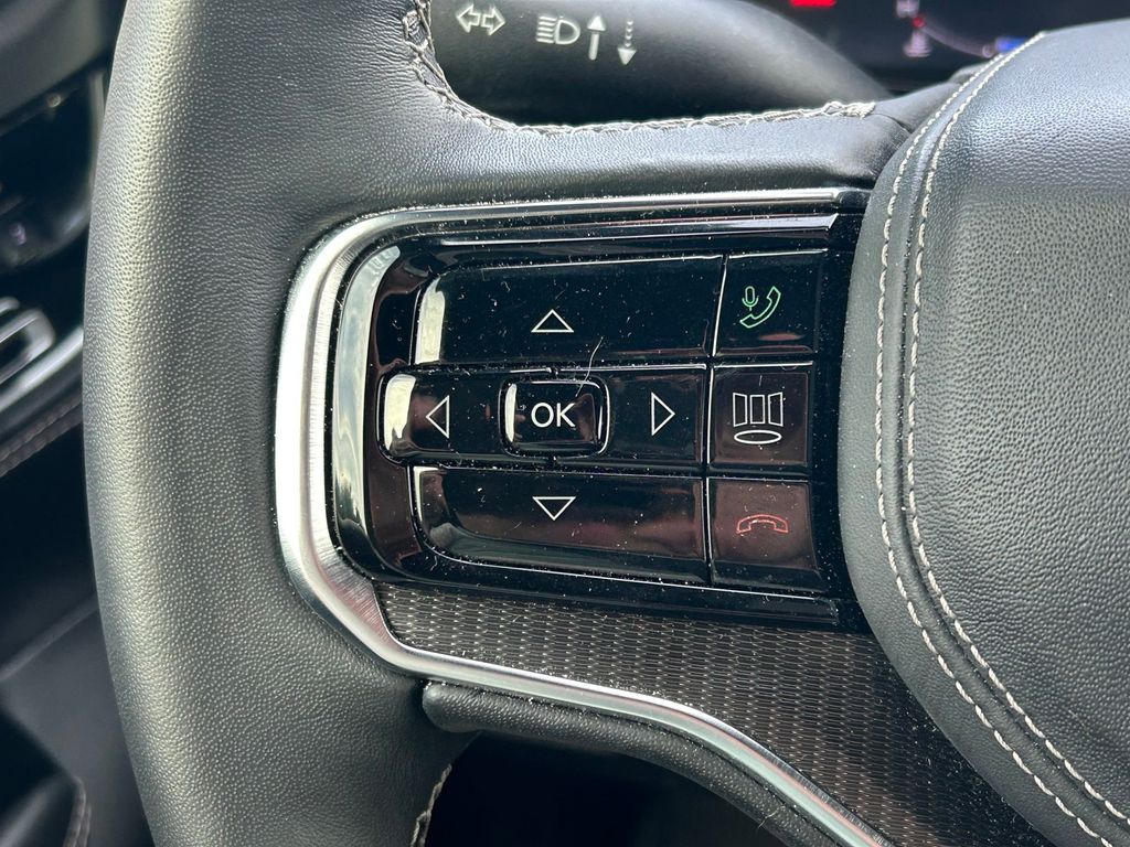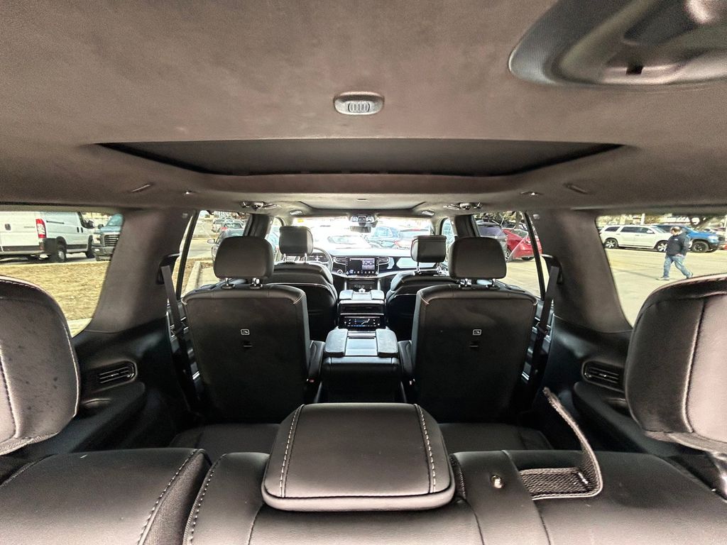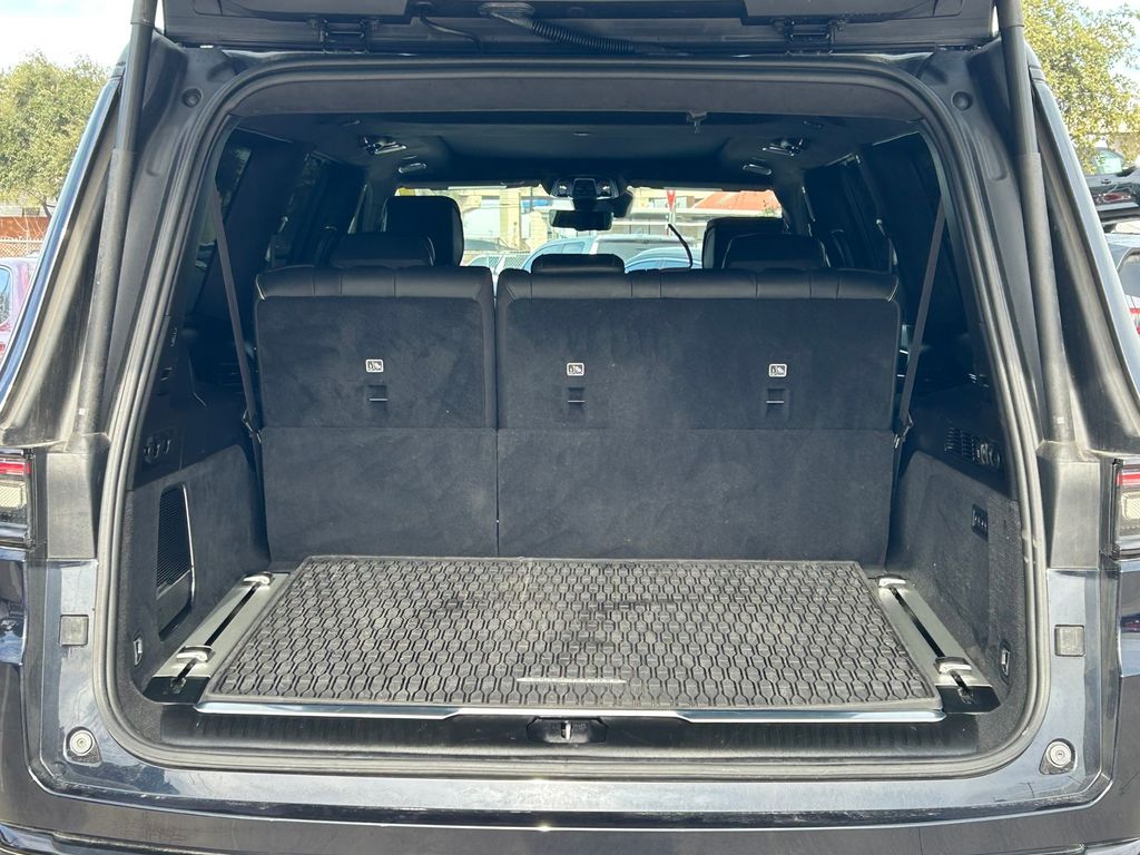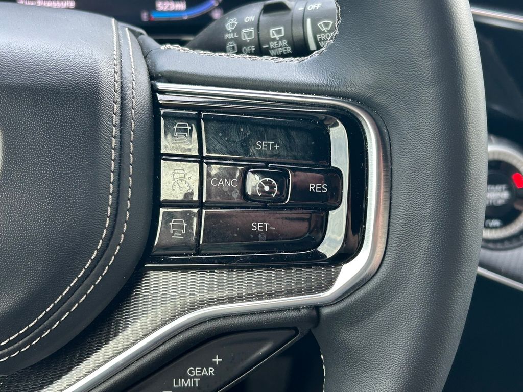 CARFAX One-Owner. 19 Speakers, 23 Speaker McIntosh Reference Audio System, 3.92 Rear Axle Ratio, 3rd row seats: bench, 4-Wheel Disc Brakes, ABS brakes, Adjustable pedals, Adjustable Roof Rail Crossbars, Air Conditioning, Alloy wheels, AM/FM radio: SiriusXM with 360L, Anti-whiplash front head restraints, Apple CarPlay/Android Auto, Audio memory, Auto High-beam Headlights, Auto-dimming door mirrors, Auto-dimming Rear-View mirror, Auto-leveling suspension, Automatic temperature control, Black Interior Accents, Black Roof, Black Tow Hooks, Brake assist, Bumpers: body-color, Compass, Delay-off headlights, Driver door bin, Driver vanity mirror, Driver's Seat Mounted Armrest, Dual front impact airbags, Dual front side impact airbags, Electronic Stability Control, Emergency communication system, Four wheel independent suspension, Front anti-roll bar, Front Bucket Seats, Front Center Armrest w/Storage, Front Console Cooler, Front dual zone A/C, Front fog lights, Front Passenger Interactive Display, Front reading lights, Fully automatic headlights, Garage door transmitter, Genuine wood console insert, Genuine wood dashboard insert, Genuine wood door panel insert, Gloss Black Upper & Lower DLO Molding, HD Trailer Tow Package, Heads-Up Display, Heated door mirrors, Heated front seats, Heated rear seats, Heated steering wheel, Heavy-Duty Engine Cooling, Illuminated entry, Knee airbag, Leather steering wheel, Leather Trimmed Bucket Seats, Low tire pressure warning, Memory seat, Navigation System, Normal Duty Suspension, Obsidian Appearance Package, Occupant sensing airbag, Outside temperature display, Overhead airbag, Overhead console, Panic alarm, Passenger door bin, Passenger seat mounted armrest, Passenger vanity mirror, Pedal memory, Piano Black Exterior Accents, Power adjustable front head restraints, Power door mirrors, Power driver seat, Power Liftgate, Power moonroof, Power passenger seat, Power steering, Power windows, Quick Order Package 28T Obsidian, Radio data system, Radio: Uconnect 5 Nav w/12.0" Display, Rain sensing wipers, Rear air conditioning, Rear anti-roll bar, Rear dual zone A/C, Rear reading lights, Rear seat center armrest, Rear window defroster, Rear window wiper, Rearview Autodim Digital Display Mirror, Reclining 3rd row seat, Remote keyless entry, Removable Rear Tow Hook, Security system, Speed control, Speed-sensing steering, Speed-Sensitive Wipers, Split folding rear seat, Steering wheel memory, Steering wheel mounted audio controls, Tachometer, Telescoping steering wheel, Tilt steering wheel, Traction control, Trailer Brake Control, Trailer Hitch Zoom, Trip computer, Turn signal indicator mirrors, Two Tone Paint Group, Variably intermittent wipers, Ventilated front seats, Ventilated Rear Seats, Voltmeter, Wheels: 22" x 9.0" Tinted Polished w/Black Insert.