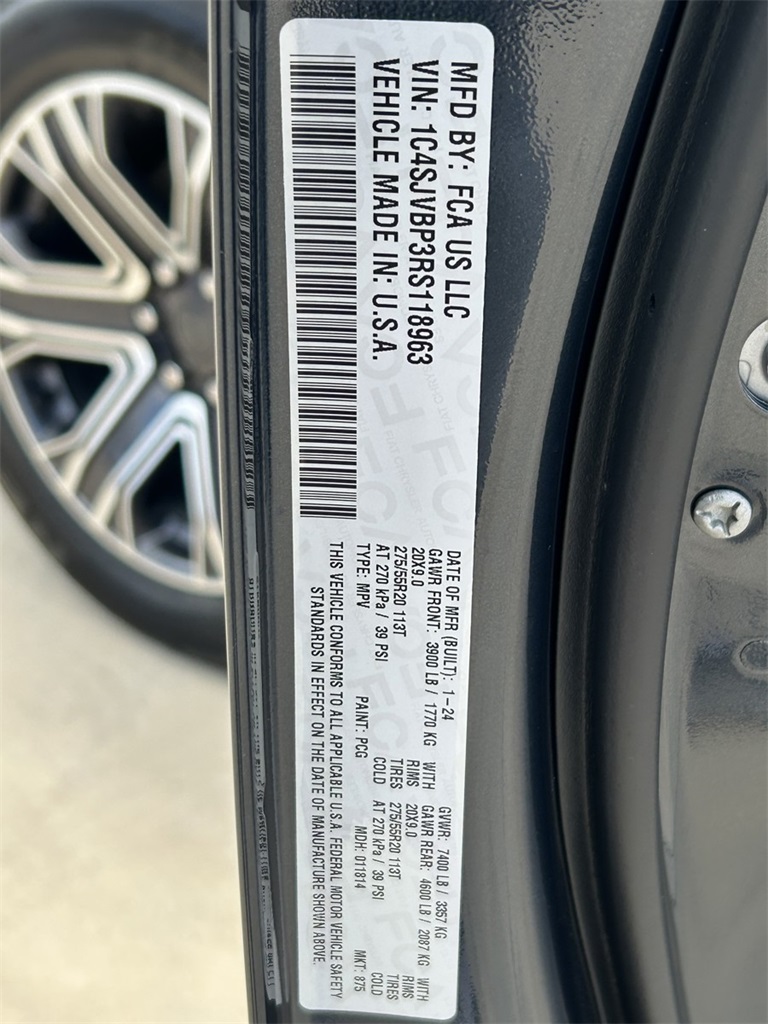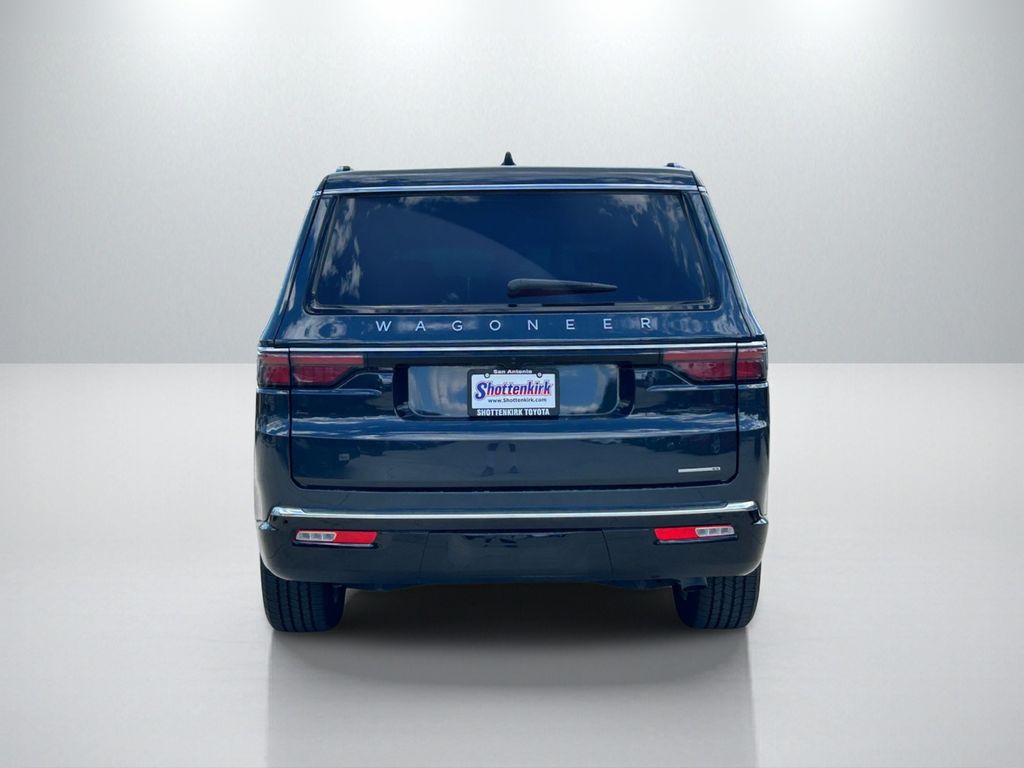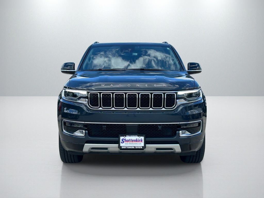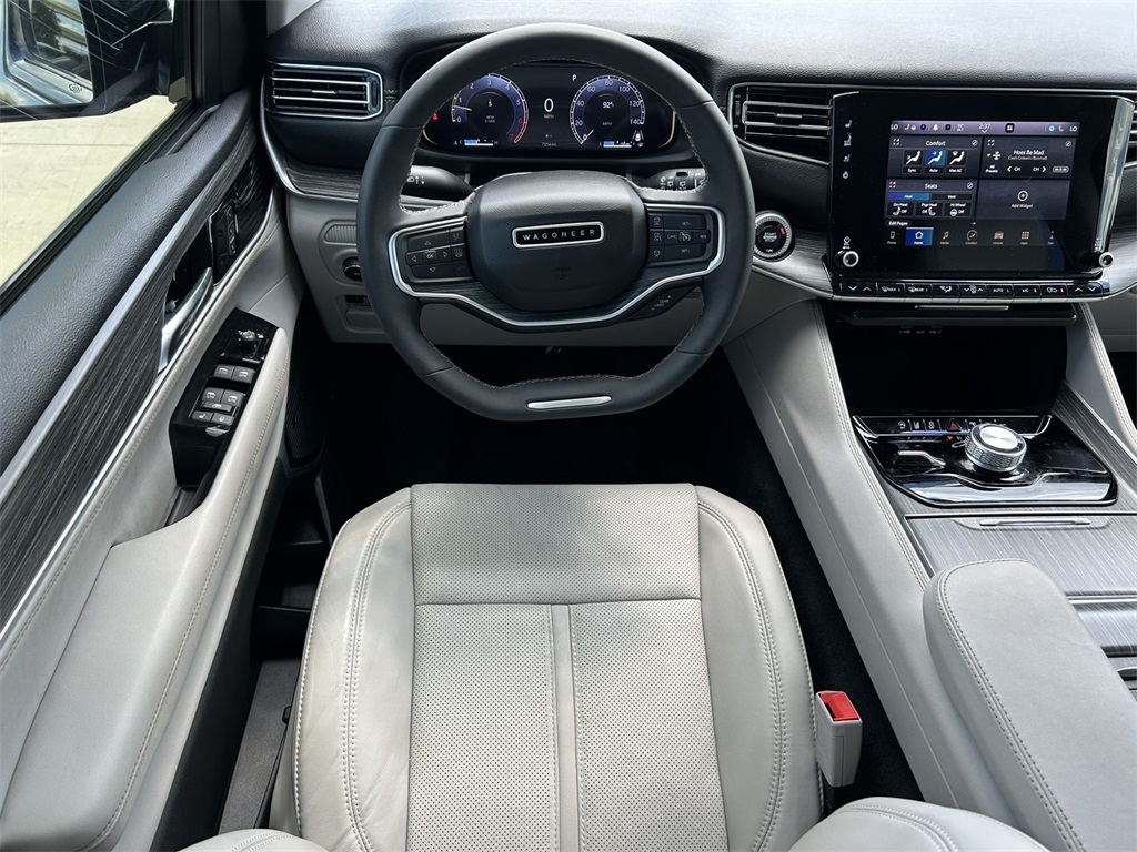 10 Speakers, 118 MPH Maximum Speed Calibration, 3rd row seats: bench, 4-Wheel Disc Brakes, 40/20/40 2nd Row Bench Power Tip/Slide, 60/40 Power Recline 3rd Row Seat, 8-Passenger Seating, ABS brakes, Adjustable pedals, Air Conditioning, Alloy wheels, AM/FM radio: SiriusXM with 360L, Anti-whiplash front head restraints, Apple CarPlay/Android Auto, Audio memory, Auto-dimming door mirrors, Auto-dimming Rear-View mirror, Auto-leveling suspension, Automatic temperature control, Brake assist, Bumpers: body-color, Compass, Delay-off headlights, Driver door bin, Driver vanity mirror, Driver's Seat Mounted Armrest, Dual front impact airbags, Dual front side impact airbags, Electronic Stability Control, Emergency communication system: Wagoneer Connect, Exterior Parking Camera Rear, Flexible Seating Group, Four wheel independent suspension, Front anti-roll bar, Front Bucket Seats, Front Center Armrest w/Storage, Front dual zone A/C, Front fog lights, Front reading lights, Full Length Floor Console, Fully automatic headlights, Garage door transmitter, Genuine wood console insert, Genuine wood dashboard insert, Genuine wood door panel insert, Heated door mirrors, Heated front seats, Heated rear seats, Heated steering wheel, Illuminated entry, Knee airbag, Leather Trimmed Bucket Seats, Low tire pressure warning, Memory seat, Navigation System, Normal Duty Suspension, Occupant sensing airbag, Outside temperature display, Overhead airbag, Overhead console, Panic alarm, Passenger door bin, Passenger seat mounted armrest, Passenger vanity mirror, Pedal memory, Power adjustable front head restraints, Power door mirrors, Power driver seat, Power Liftgate, Power passenger seat, Power steering, Power windows, Quick Order Package 25J, Radio data system, Radio: Uconnect 5 Nav w/10.1" Display, Rain sensing wipers, Rear air conditioning, Rear anti-roll bar, Rear dual zone A/C, Rear reading lights, Rear seat center armrest, Rear window defroster, Rear window wiper, Reclining 3rd row seat, Remote keyless entry, Security system, Speed control, Speed-sensing steering, Speed-Sensitive Wipers, Split folding rear seat, Steering wheel memory, Steering wheel mounted audio controls, Tachometer, Telescoping steering wheel, Tilt steering wheel, Traction control, Trip computer, Turn signal indicator mirrors, Variably intermittent wipers, Ventilated front seats, Voltmeter, Wheels: 20" x 9.0" Premium 2 Aluminum.