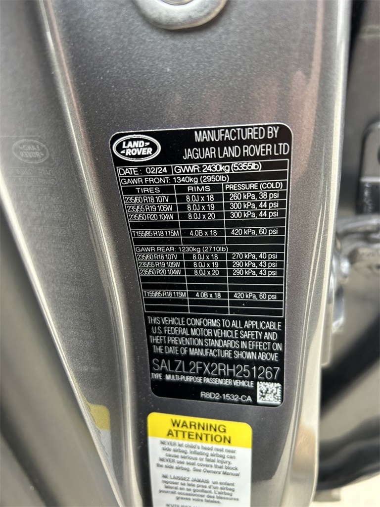 2024 Santorini Black Metallic Land Rover Range Rover Evoque 2.0L Turbocharged AWD Dynamic