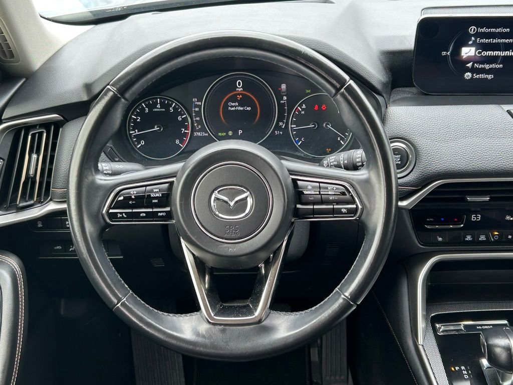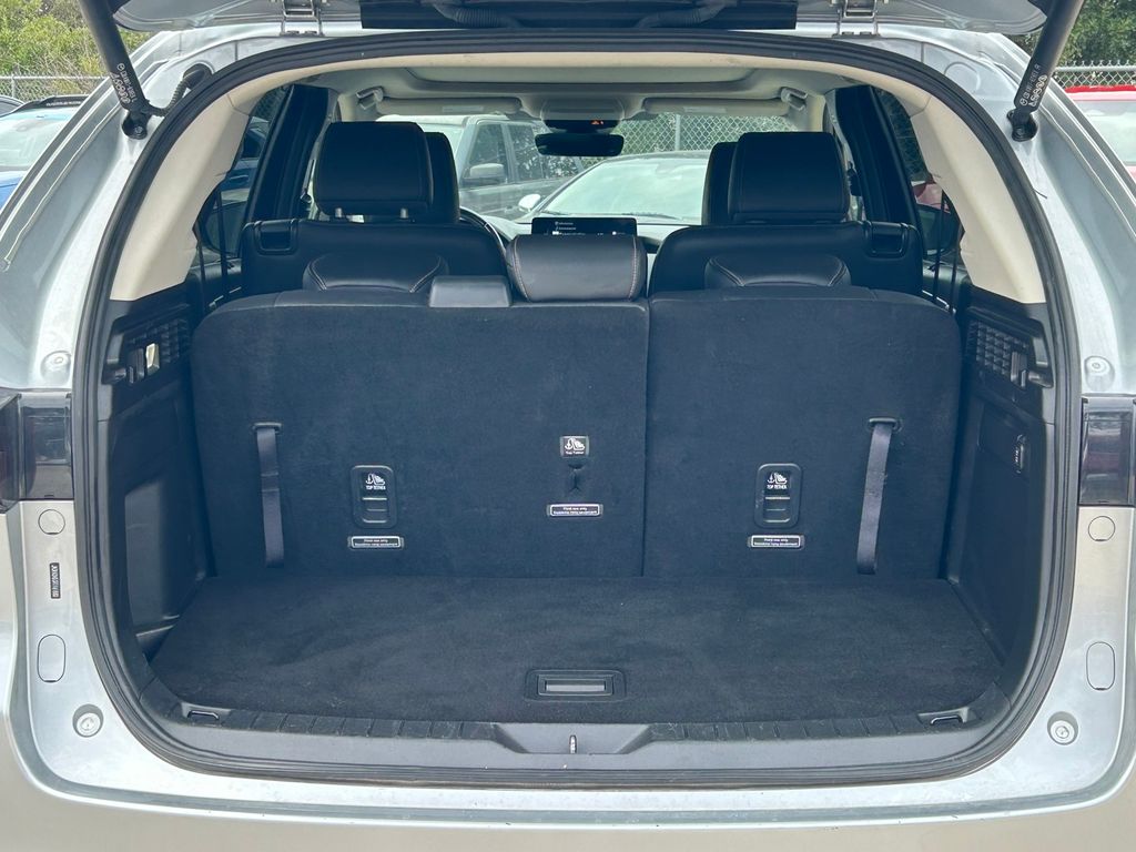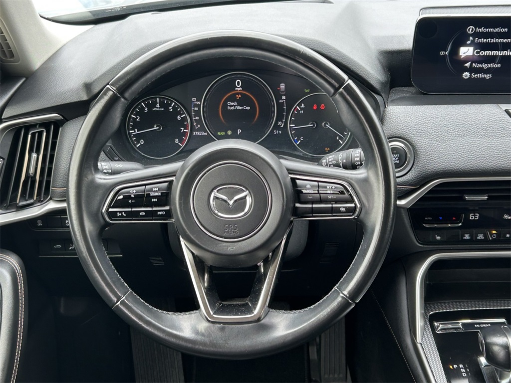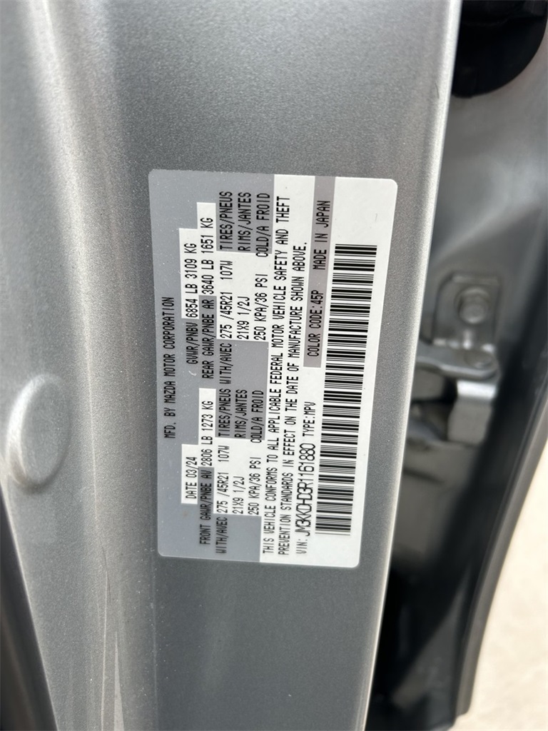 CARFAX One-Owner. Clean CARFAX. 12 Speakers, 3.692 Axle Ratio, 3rd row seats: bench, 4-Wheel Disc Brakes, ABS brakes, Air Conditioning, Alloy wheels, AM/FM radio: SiriusXM, Auto High-beam Headlights, Auto-dimming Rear-View mirror, Automatic temperature control, Brake assist, Bumpers: body-color, Compass, Delay-off headlights, Driver door bin, Driver vanity mirror, Dual front impact airbags, Dual front side impact airbags, E911 Automatic Emergency Notification, Electronic Stability Control, Emergency communication system: MAZDA CONNECT, Exterior Parking Camera Rear, Four wheel independent suspension, Front anti-roll bar, Front Bucket Seats, Front Center Armrest w/Storage, Front dual zone A/C, Front reading lights, Fully automatic headlights, Garage door transmitter: HomeLink, Heads-Up Display, Heated door mirrors, Heated Front Bucket Seats, Heated front seats, Illuminated entry, Infotainment System Voice Command, Knee airbag, Leather Seat Trim, Leather Shift Knob, Leather steering wheel, Low tire pressure warning, Mazda Connected Services, Mazda Navigation System, Memory seat, Navigation system: MAZDA CONNECT, Occupant sensing airbag, Outside temperature display, Overhead airbag, Overhead console, Pandora Internet Radio Integration, Panic alarm, Passenger door bin, Passenger vanity mirror, Power door mirrors, Power driver seat, Power Liftgate, Power moonroof, Power passenger seat, Power steering, Power windows, Radio Broadcast Data System Program Information, Radio data system, Radio: AM/FM w/Bose Audio Sound System, Rain sensing wipers, Rear air conditioning, Rear anti-roll bar, Rear reading lights, Rear window defroster, Rear window wiper, Remote keyless entry, SMS Text Msg Audio Delivery & Reply, Speed control, Speed-sensing steering, Split folding rear seat, Spoiler, Steering wheel mounted audio controls, Tachometer, Telescoping steering wheel, Tilt steering wheel, Traction control, Trip computer, Turn signal indicator mirrors, Variably intermittent wipers, Wheels: 21" x 9.5J Aluminum Alloy.