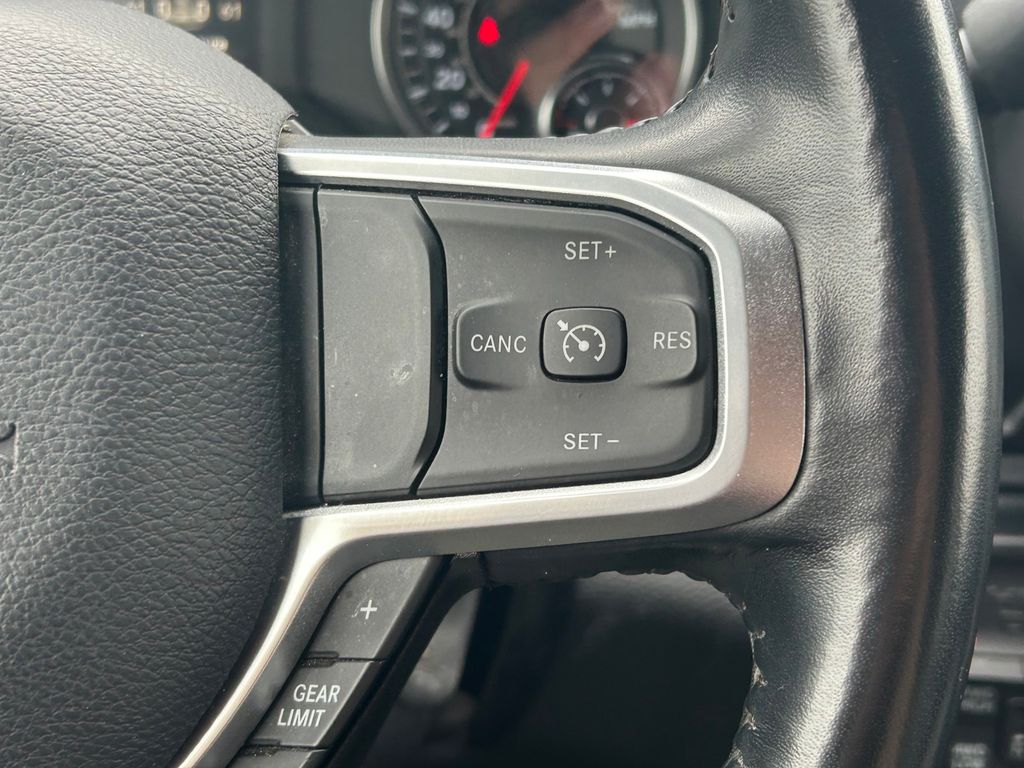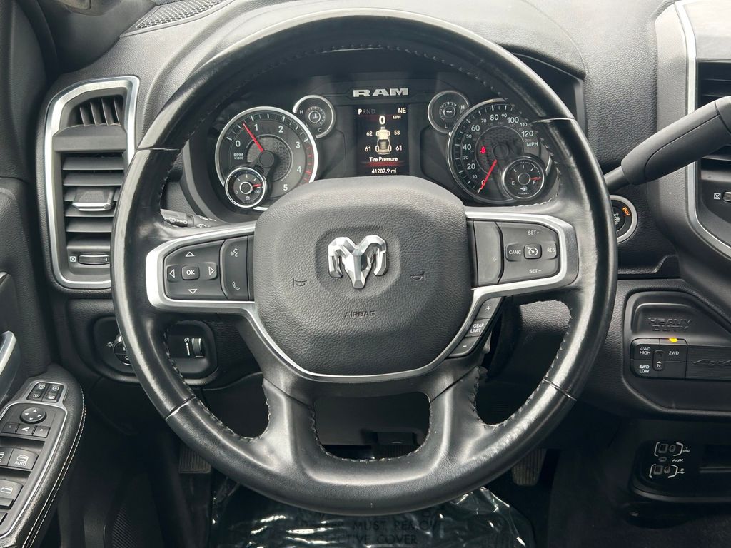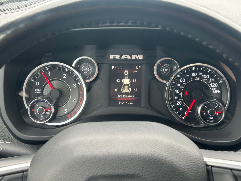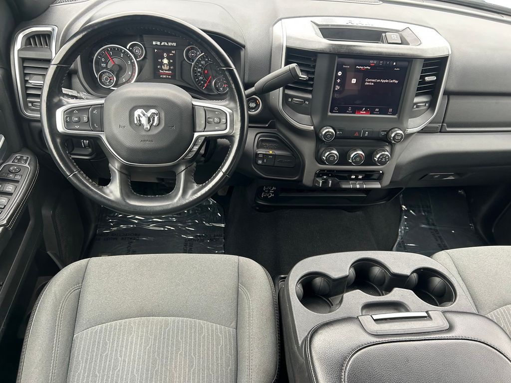 CARFAX One-Owner. 2 Way Rear Headrest Seat, 2nd Row In Floor Storage Bins, 3.73 Axle Ratio, 4 Way Front Headrests, 4-Wheel Disc Brakes, 40/20/40 Split Bench Seat, 4G LTE Wi-Fi Hot Spot, 6 Speakers, 8.4" Touchscreen Display, ABS brakes, Active Noise Control System, Air Conditioning, Apple CarPlay, Auto Power-Folding Mirrors, Big Horn IP Badge, Black Exterior Mirrors, Bluetooth Handsfree Phone & Audio, Brake assist, Bumpers: chrome, Center Hub, Center Stack Storage Drawer, Chrome Flat Cab-Length Side Steps, Cloth 40/20/40 Bench Seat, Compass, Connectivity - US/Canada, Delay-off headlights, Driver door bin, Dual front impact airbags, Dual front side impact airbags, Dual Glove Boxes, Electronic Stability Control, Electronically Controlled Throttle, Emergency communication system: SiriusXM Guardian, Exterior Mirrors Courtesy Lamps, Exterior Mirrors w/Heating Element, Exterior Mirrors w/Supplemental Signals, Foam Bottle Insert (Door Trim Panel), Footwell Courtesy Lamp, For Details, Visit DriveUconnect.com, For More Info, Call 800-643-2112, Forward & Reverse Utility Lights, Front anti-roll bar, Front Armrest w/Cupholders, Front Center Armrest w/Storage, Front Center Seat Cushion Storage, Front Fog Lamps, Front License Plate Bracket, Front reading lights, Front Seat Back Map Pockets, Fully automatic headlights, Global Telematics Box Module (TBM), Glove Box Lamp, Google Android Auto, GPS Antenna Input, Heated door mirrors, Illuminated entry, Integrated Center Stack Radio, Integrated Voice Command w/Bluetooth, Leather Wrapped Steering Wheel, Level 1 Equipment Group, Locking Lower Glove Box, Low tire pressure warning, Manual Adjust 4-Way Driver Seat, Manual Adjust 4-Way Front Passenger Seat, Manufacturer's Statement of Origin, Mirror Running Lights, Occupant sensing airbag, Outside temperature display, Overhead airbag, Overhead console, Panic alarm, ParkView Rear Back-Up Camera, Passenger door bin, Passenger vanity mirror, Power 2-Way Driver Lumbar Adjust, Power Adjust 8-Way Driver Seat, Power Adjust Mirrors, Power Adjustable Convex Aux Mirrors, Power door mirrors, Power Heated Fold Telescope Mirrors, Power steering, Power Telescoping Mirrors, Power windows, Premium Cloth 40/20/40 Bench Seat, Premium Cloth 40/20/40 Bench Seat (DISC), Quick Order Package 2HZ Big Horn, Radio data system, Radio: Uconnect 3 w/5" Display, Radio: Uconnect 5 W w/8.4" Display, Radio: Uconnect 5 W w/8.4" Display (A62), Rear 60/40 Folding Seat, Rear anti-roll bar, Rear Dome w/On/Off Switch Lamp, Rear Folding Seat, Rear seat center armrest, Rear step bumper, Remote keyless entry, Remote USB Port - Charge Only, Selectable Tire Fill Alert, SiriusXM Radio Service, SiriusXM Satellite Radio, Speed control, Steering Wheel Mounted Audio Controls, Storage Tray, Tachometer, Tilt steering wheel, Tip Start, Tow Hooks, Traction control, Trip computer, Turn signal indicator mirrors, Variably intermittent wipers, Voltmeter, Wheels: 18" x 8.0" Polished Aluminum, Wheels: 18" x 8.0" Steel Chrome Clad.