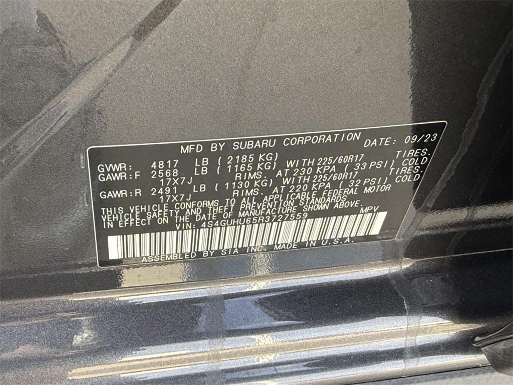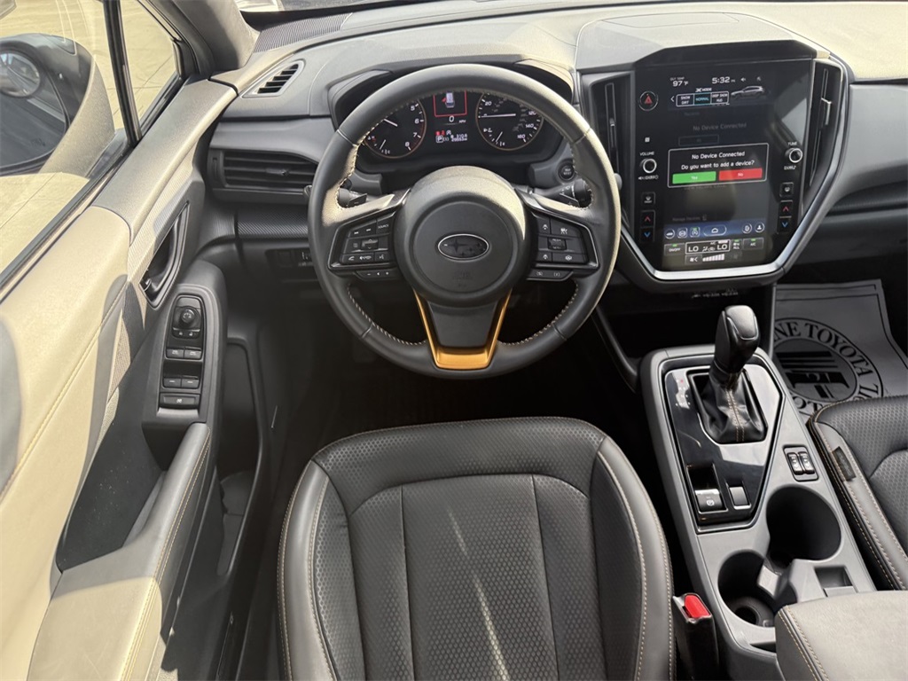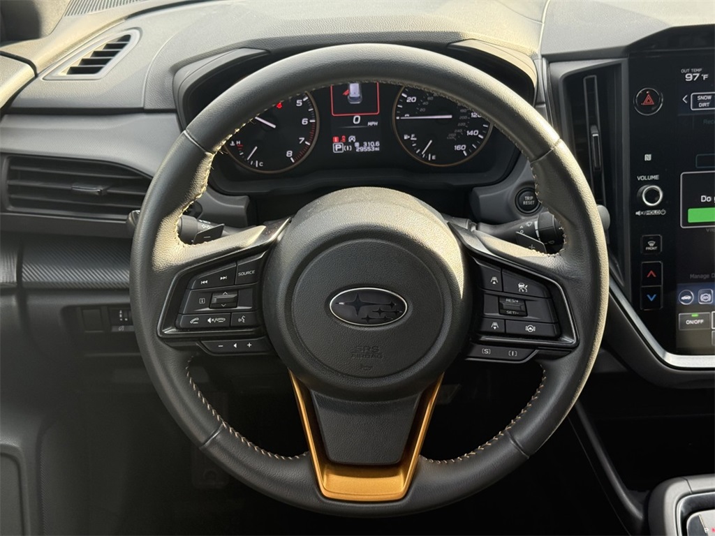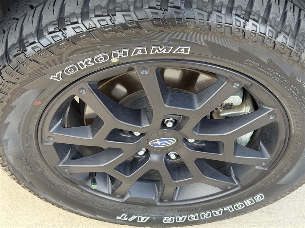 10-Way Power Driver's Seat, 4-Wheel Disc Brakes, 4.11 Axle Ratio, 6 Speakers, ABS brakes, Air Conditioning, Alloy wheels, AM/FM radio: SiriusXM, Anti-whiplash front head restraints, Auto High-beam Headlights, Automatic temperature control, Brake assist, Bumpers: body-color, Driver door bin, Driver vanity mirror, Dual front impact airbags, Dual front side impact airbags, Electronic Stability Control, Emergency communication system: STARLINK Safety and Security (Subscription Required), Exterior Parking Camera Rear, Four wheel independent suspension, Front anti-roll bar, Front Bucket Seats, Front Center Armrest, Front dual zone A/C, Front fog lights, Front reading lights, Fully automatic headlights, harman/kardon Aud & Pwr Moonroof & Pwr Driver Seat, harman/kardon Surround Sound Speaker System, Heated door mirrors, Heated Front Bucket Seats, Heated front seats, Illuminated entry, Knee airbag, Leather Shift Knob, Low tire pressure warning, Occupant sensing airbag, Outside temperature display, Overhead airbag, Overhead console, Panic alarm, Passenger door bin, Passenger vanity mirror, Power door mirrors, Power Moonroof, Power steering, Power windows, Radio data system, Radio: Subaru STARLINK 11.6" Multimedia Plus Sys, Rear anti-roll bar, Rear seat center armrest, Rear window defroster, Rear window wiper, Remote keyless entry, Security system, Speed control, Speed-sensing steering, Split folding rear seat, Spoiler, STARLINK/Apple CarPlay/Android Auto, Steering wheel mounted audio controls, Tachometer, Telescoping steering wheel, Tilt steering wheel, Traction control, Trip computer, Turn signal indicator mirrors, Variably intermittent wipers, Wheels: 17" x 7.0J Matte Black Aluminum Alloy, Wilderness StarTex Upholstery.